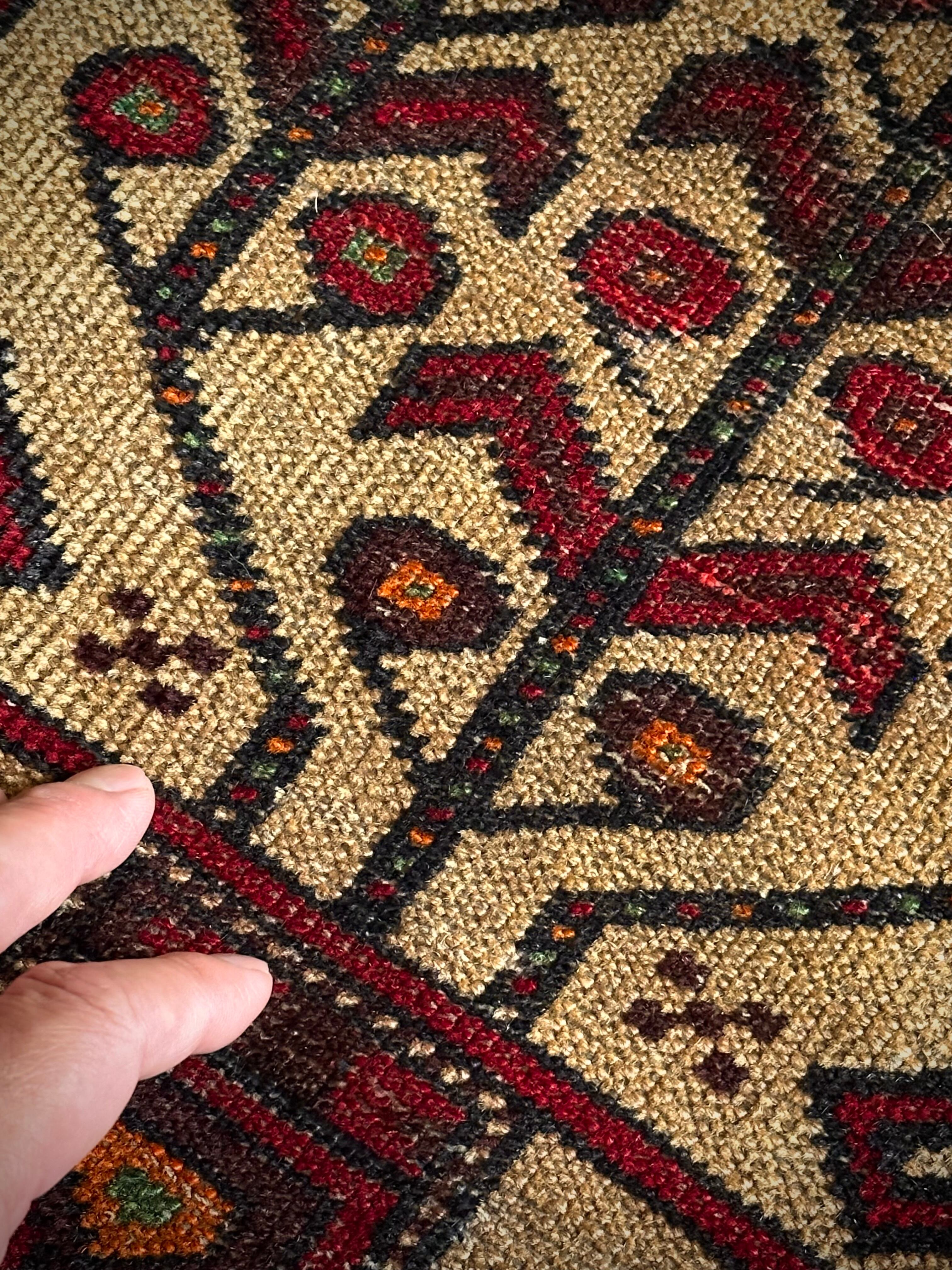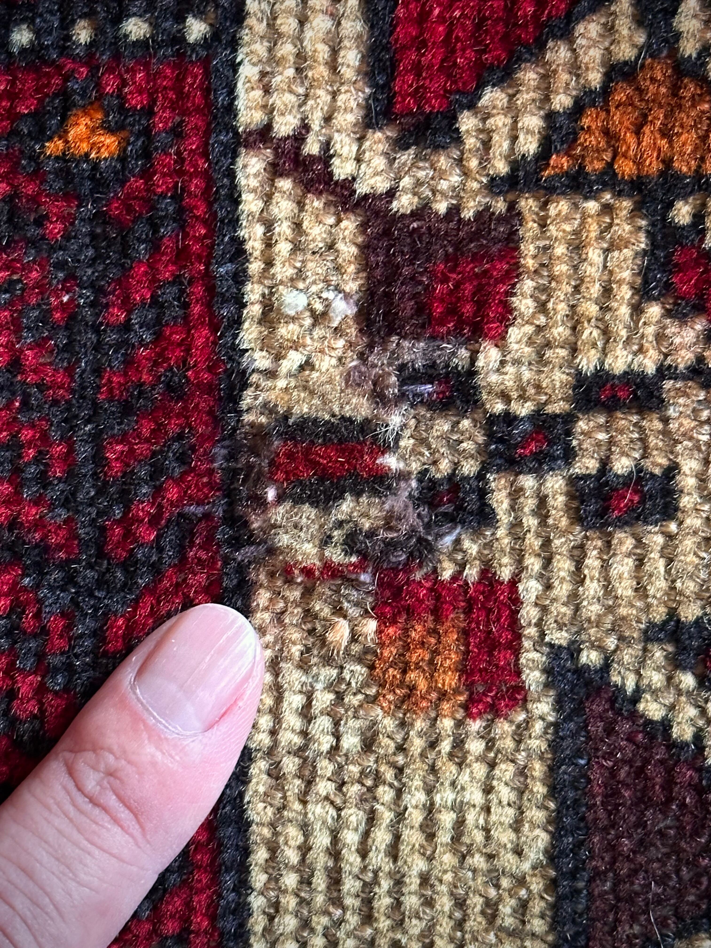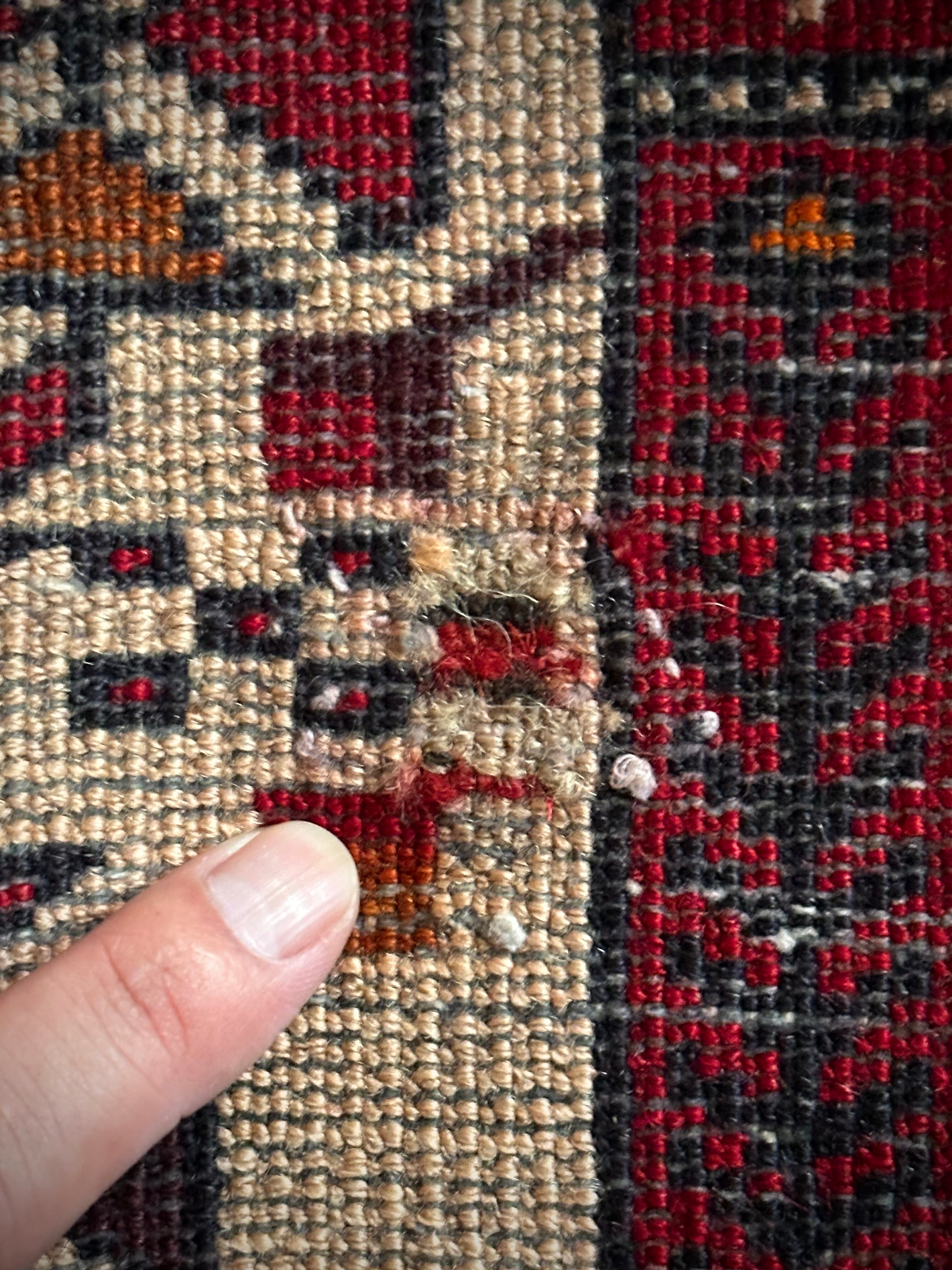 経年としてはそれなりに古い50年物となりますので、ベージュのフィールド部分のみパイルが薄くなっていて、リペア箇所も見受けられますので写真にてご確認ください。その他には目立つ汚れや破損はありませんのでご安心ください。