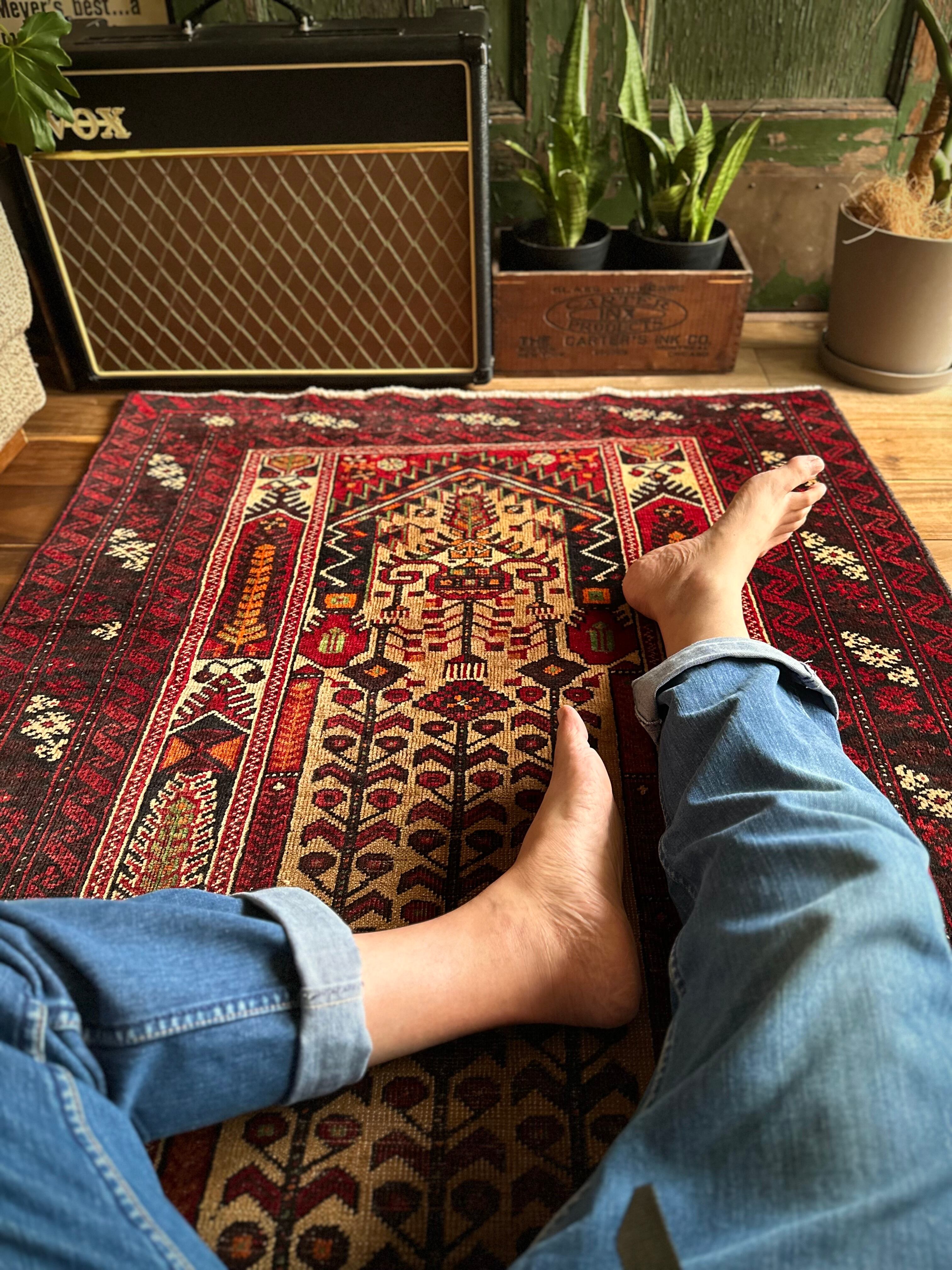 最後にラグそのものに関しては羊毛特有の匂いがあり、採寸は中央付近で計測していますが、手織りならではの歪みによる誤差や水洗いクリーニングによる縮み、また草木染めによる経年劣化の色ムラなどがありますが、それもまたヴィンテージラグの魅力かとご理解ください。