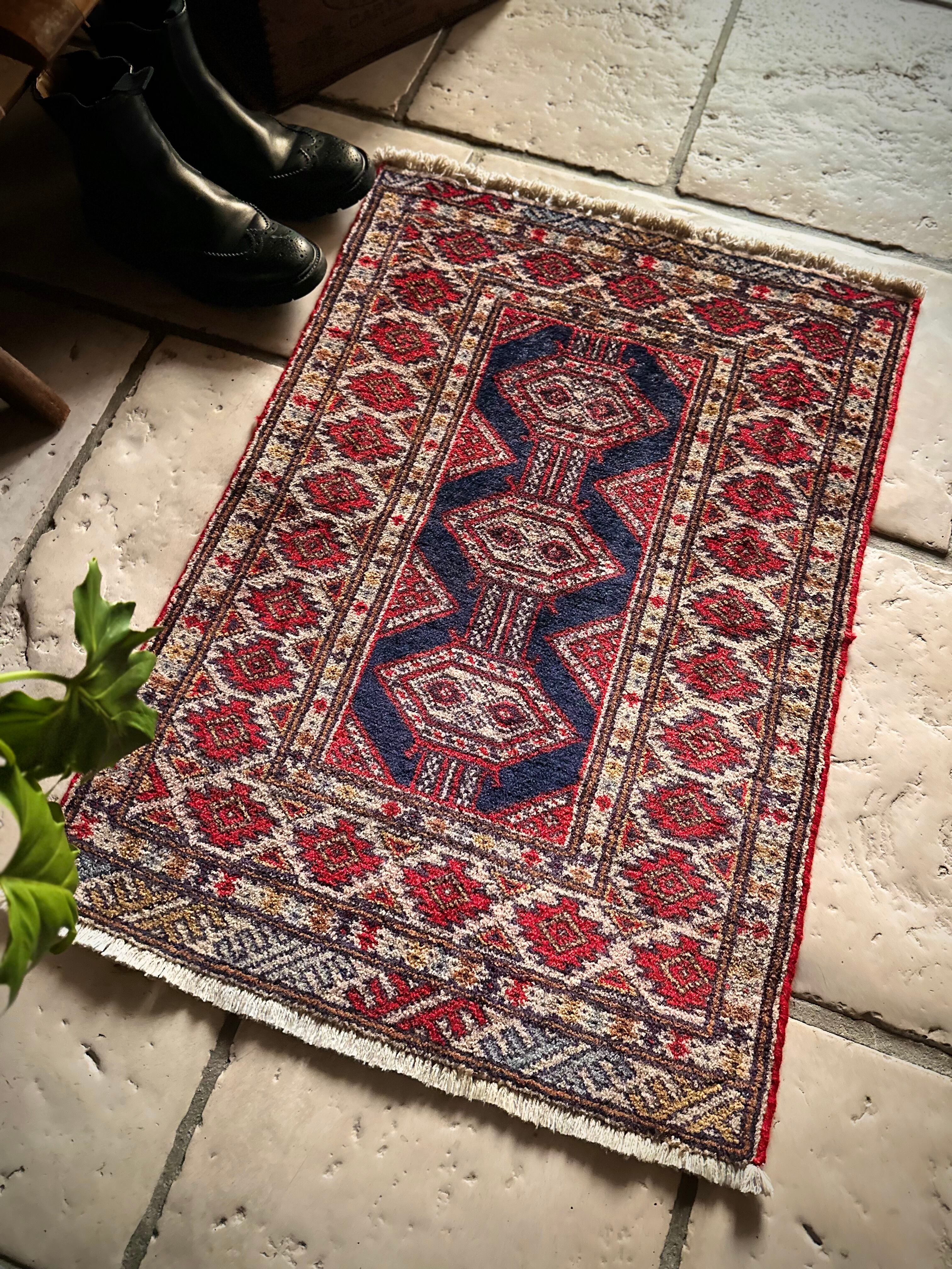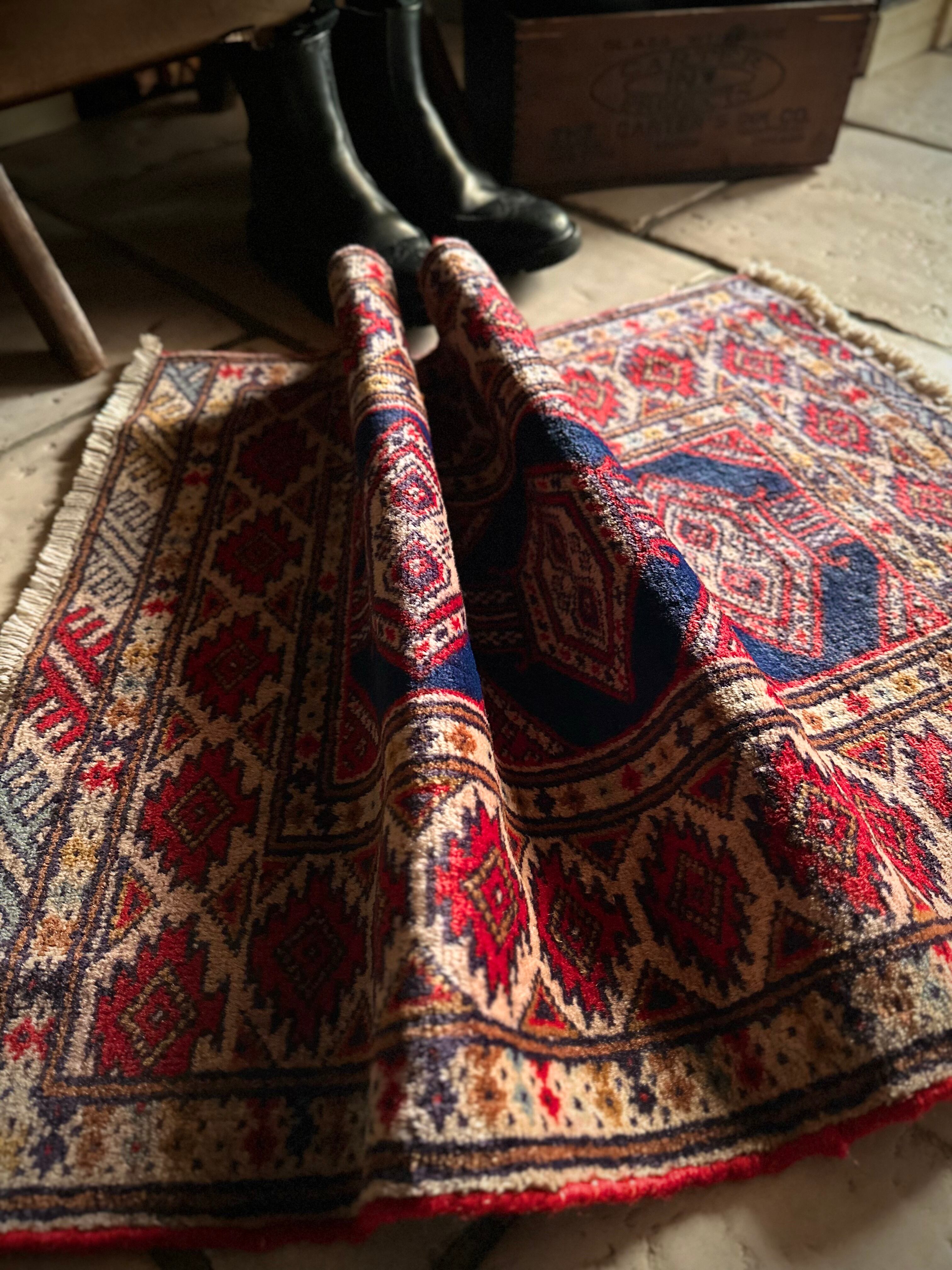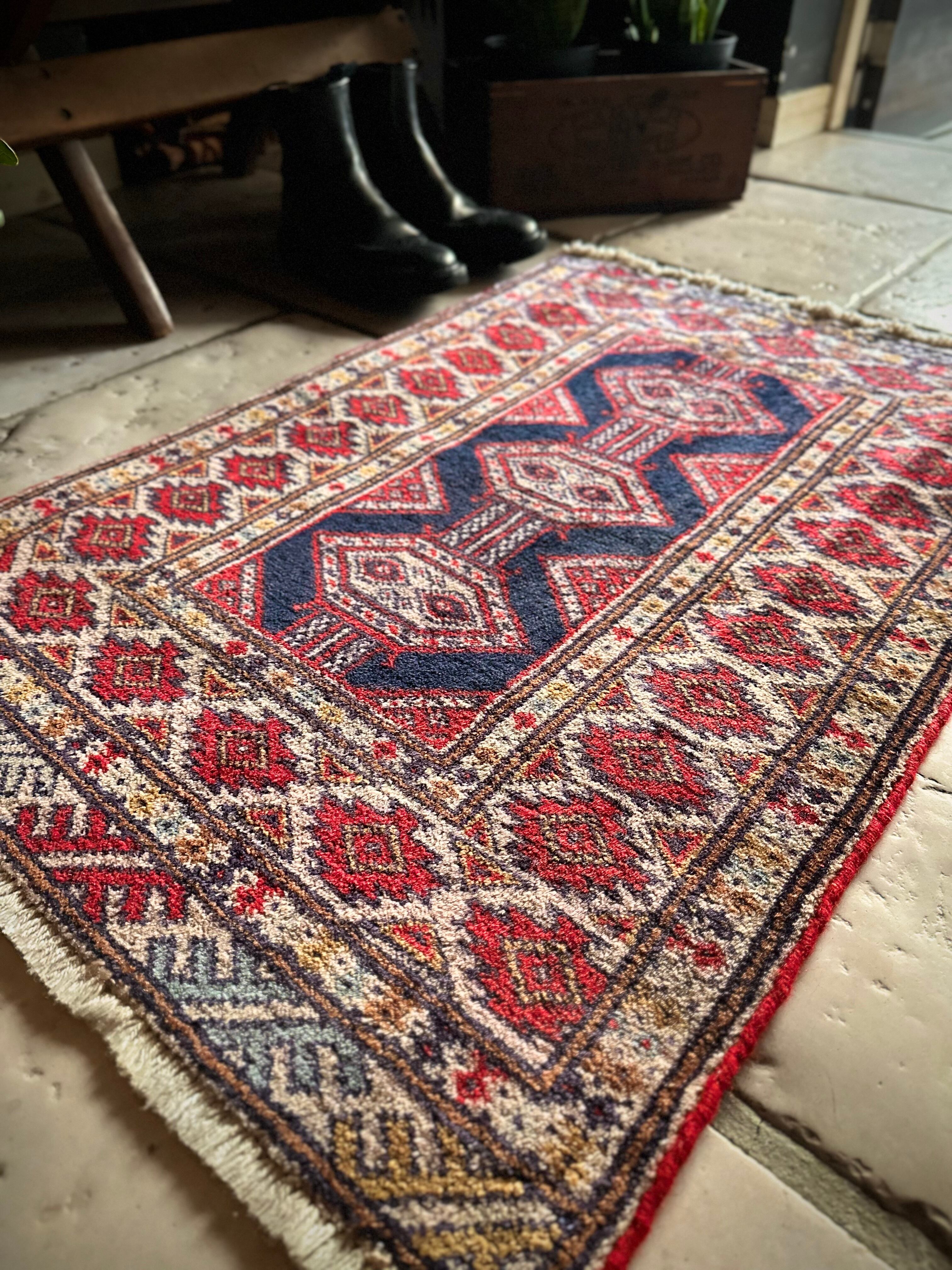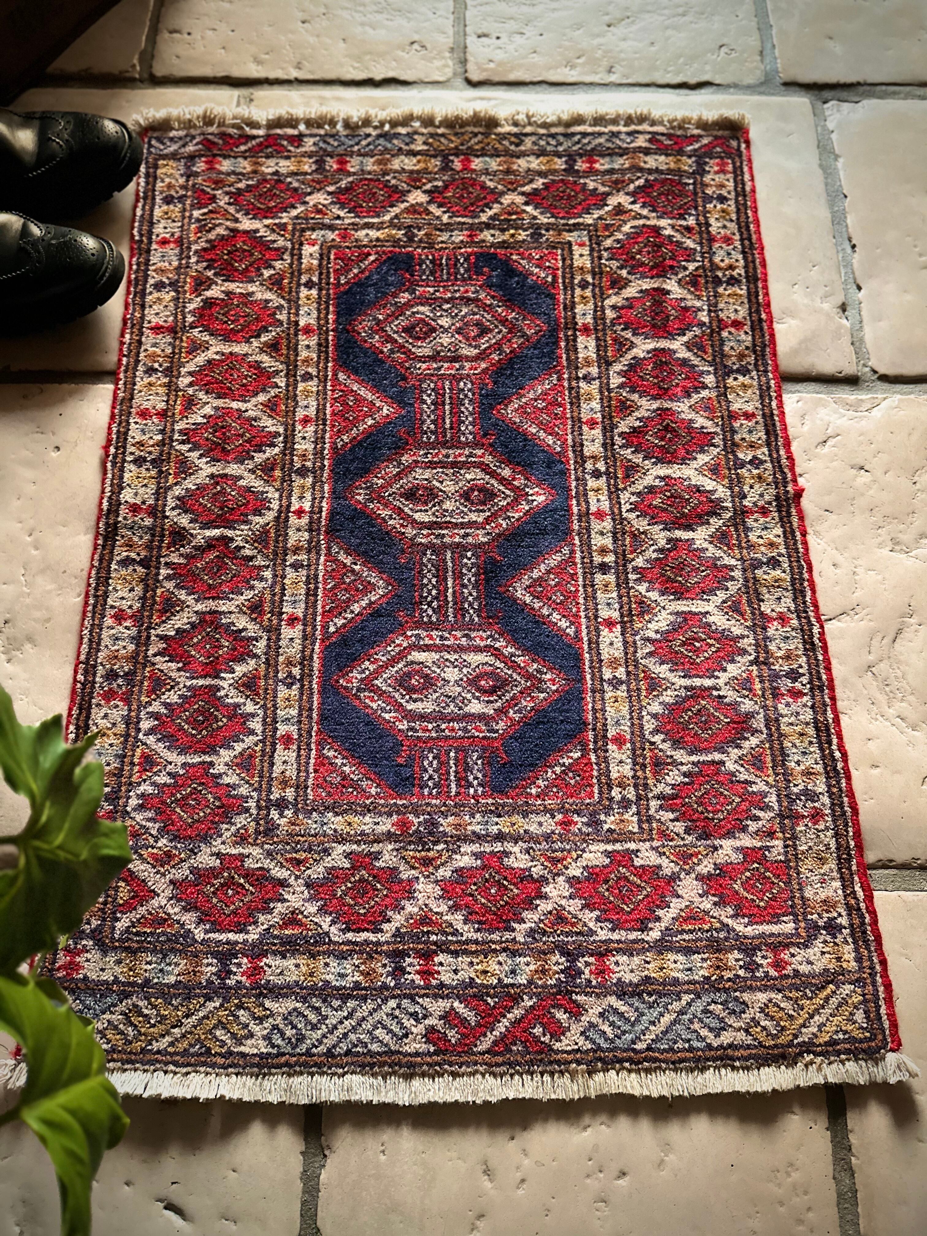 経年としてはあまり古くはない20年前となりますが、それほどの使用感はなく特に目立つ汚れやリペア箇所のないグッドなコンディションで、初めてのトライバルラグとして触れてみては如何でしょうか。