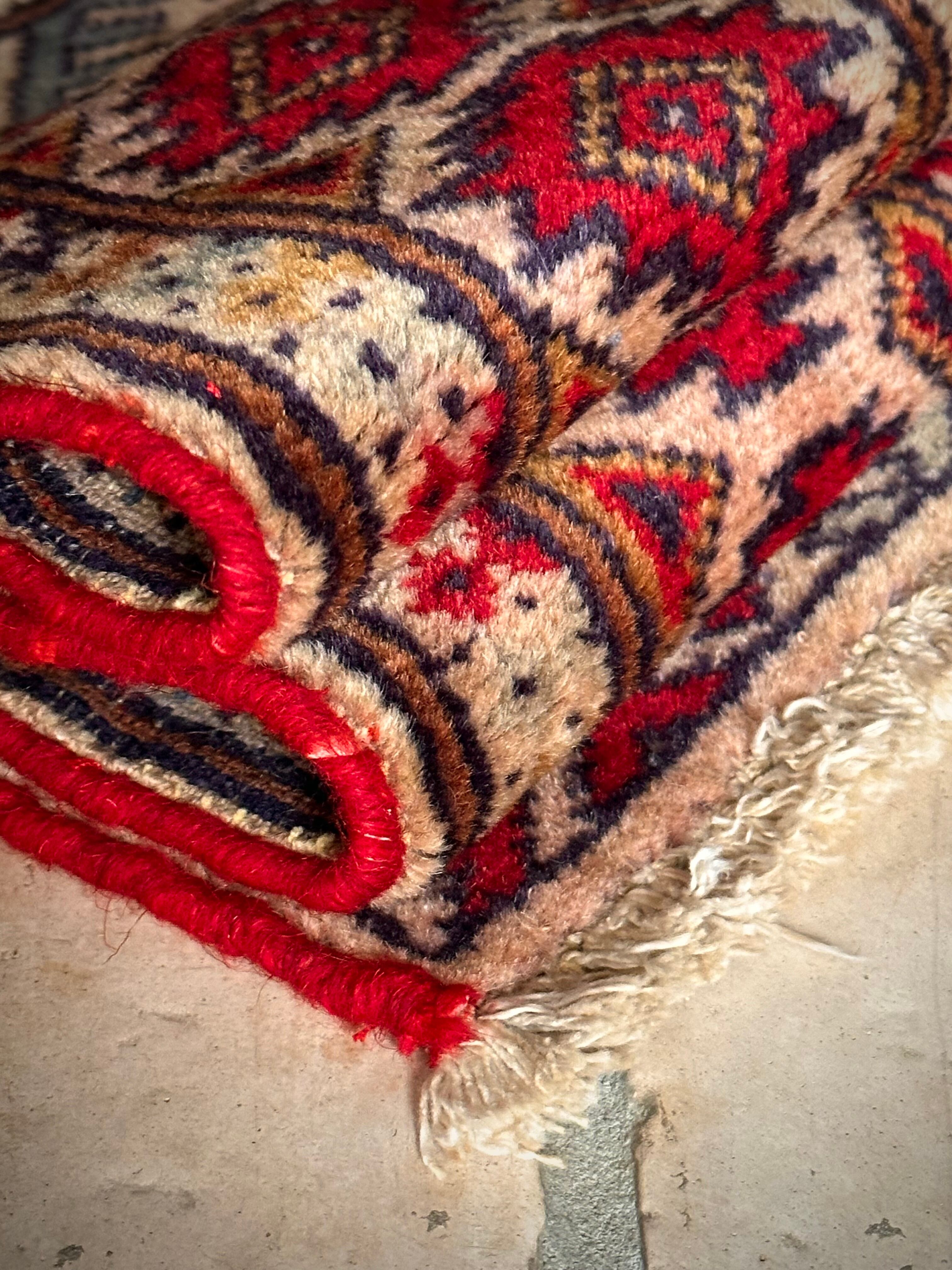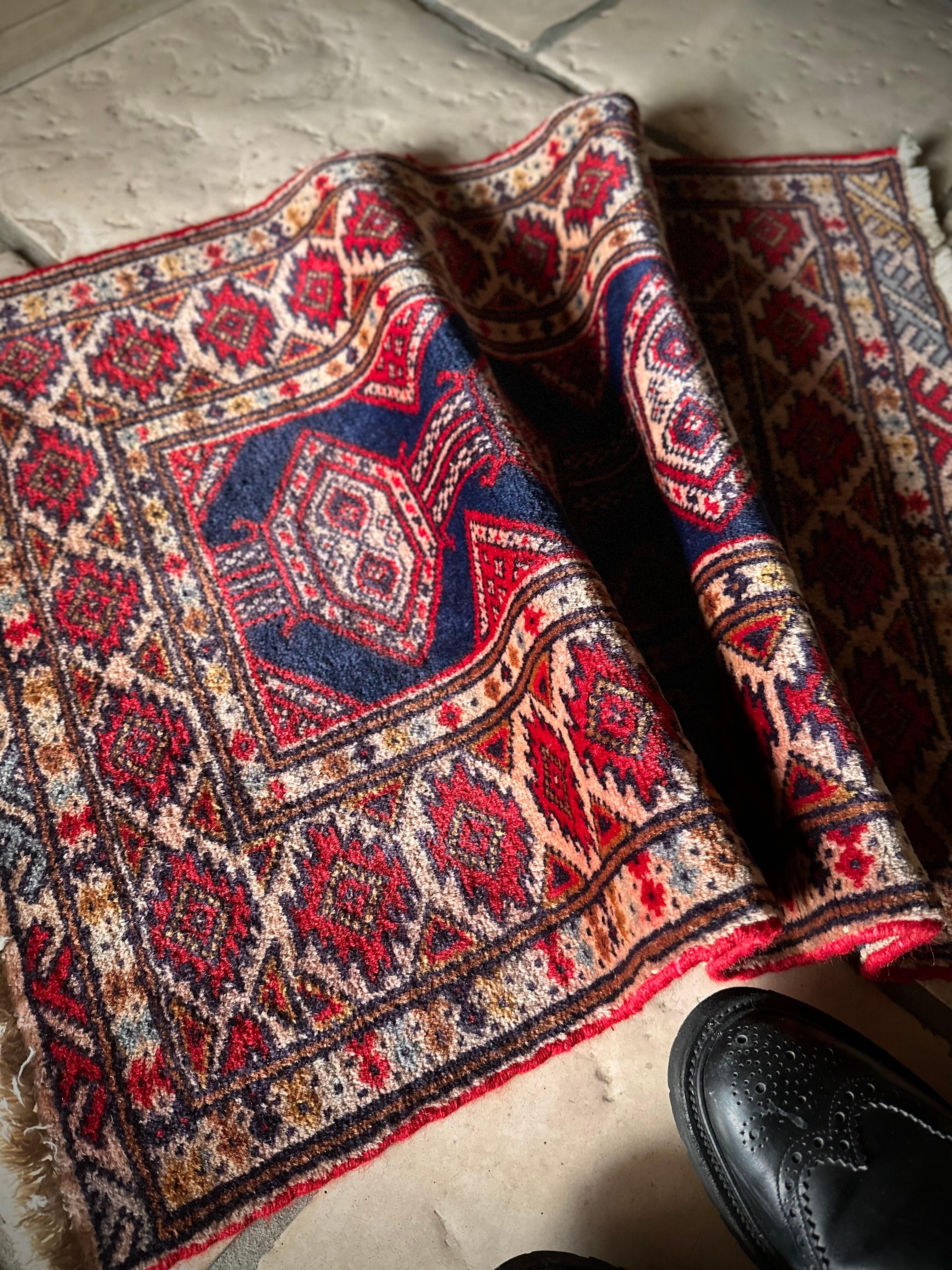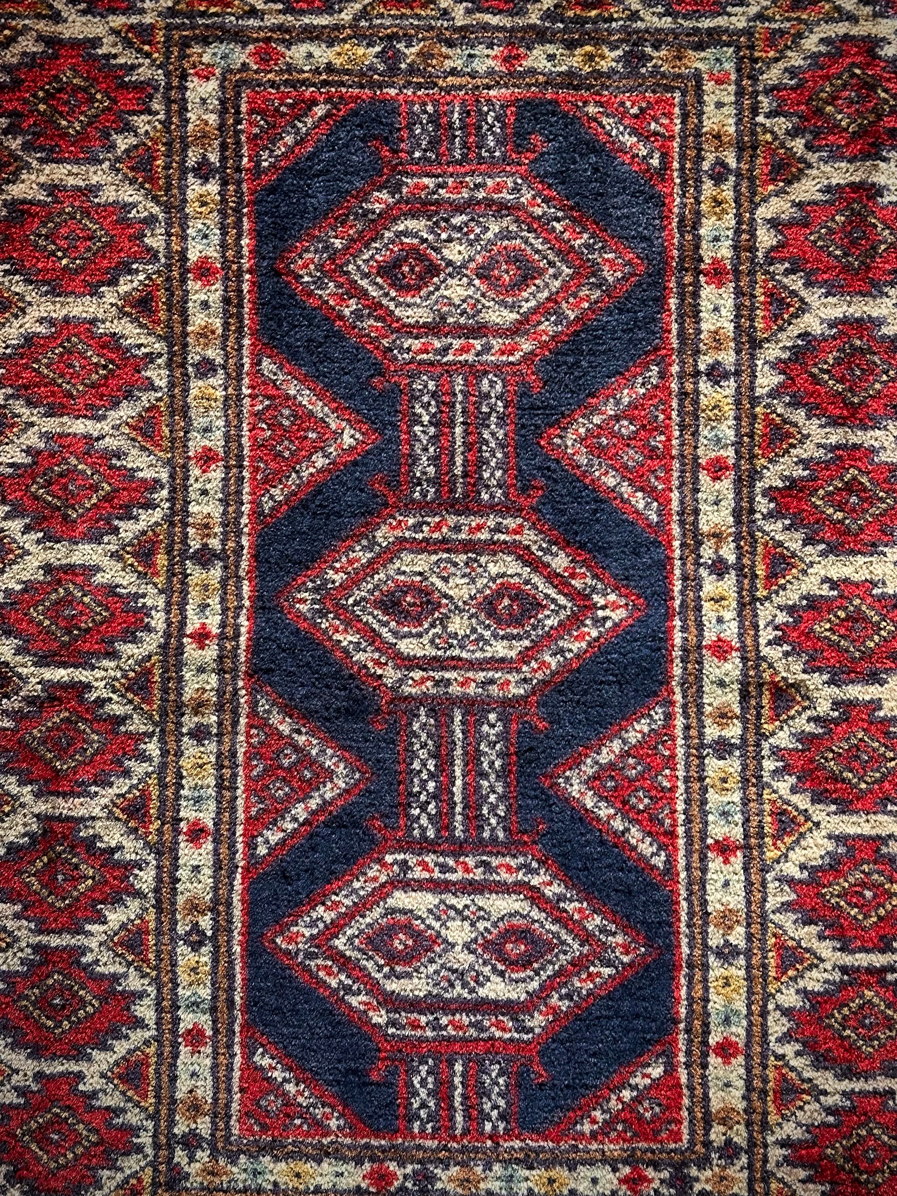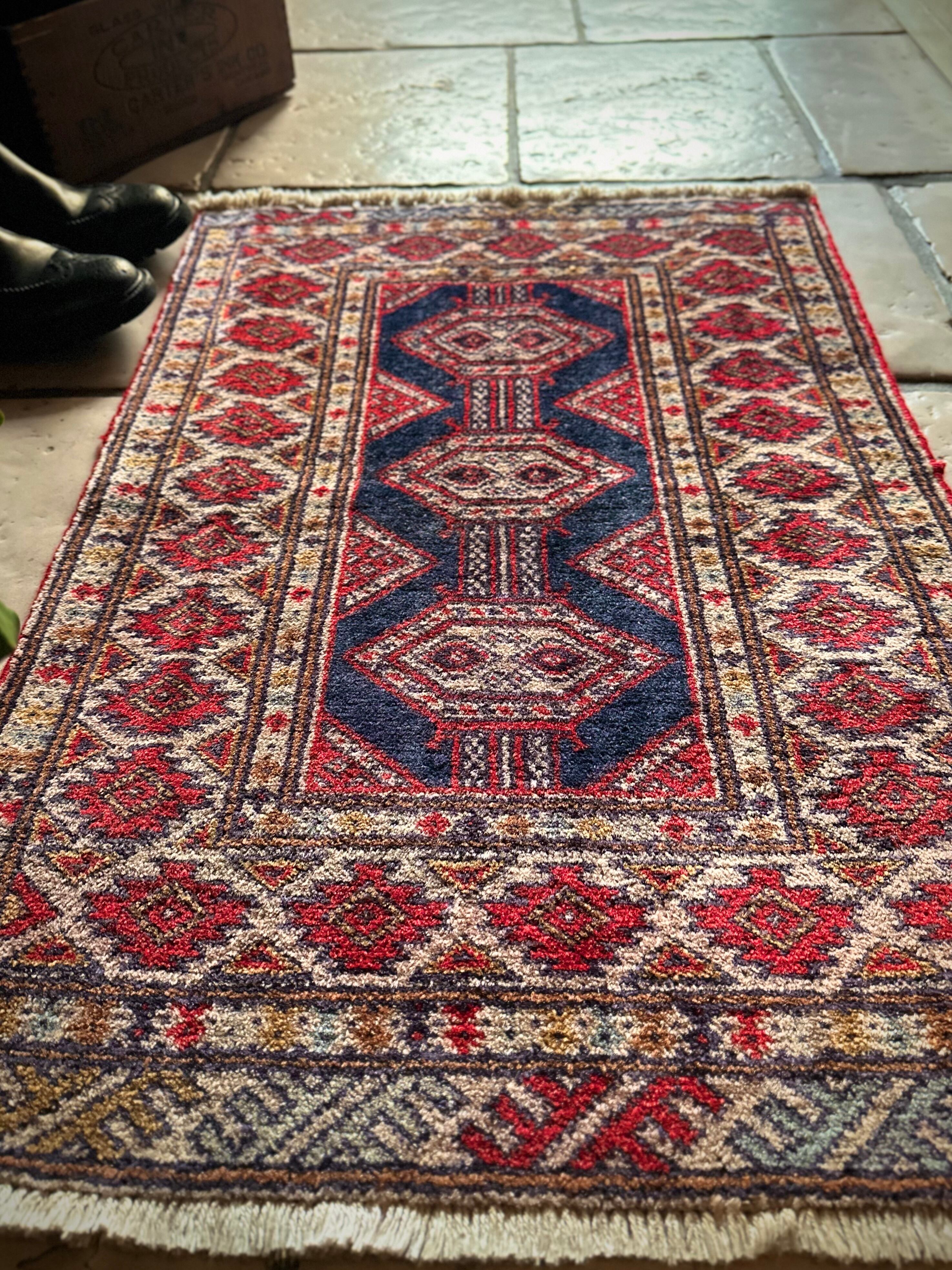 経年としてはあまり古くはない20年前となりますが、それほどの使用感はなく特に目立つ汚れやリペア箇所のないグッドなコンディションで、初めてのトライバルラグとして触れてみては如何でしょうか。