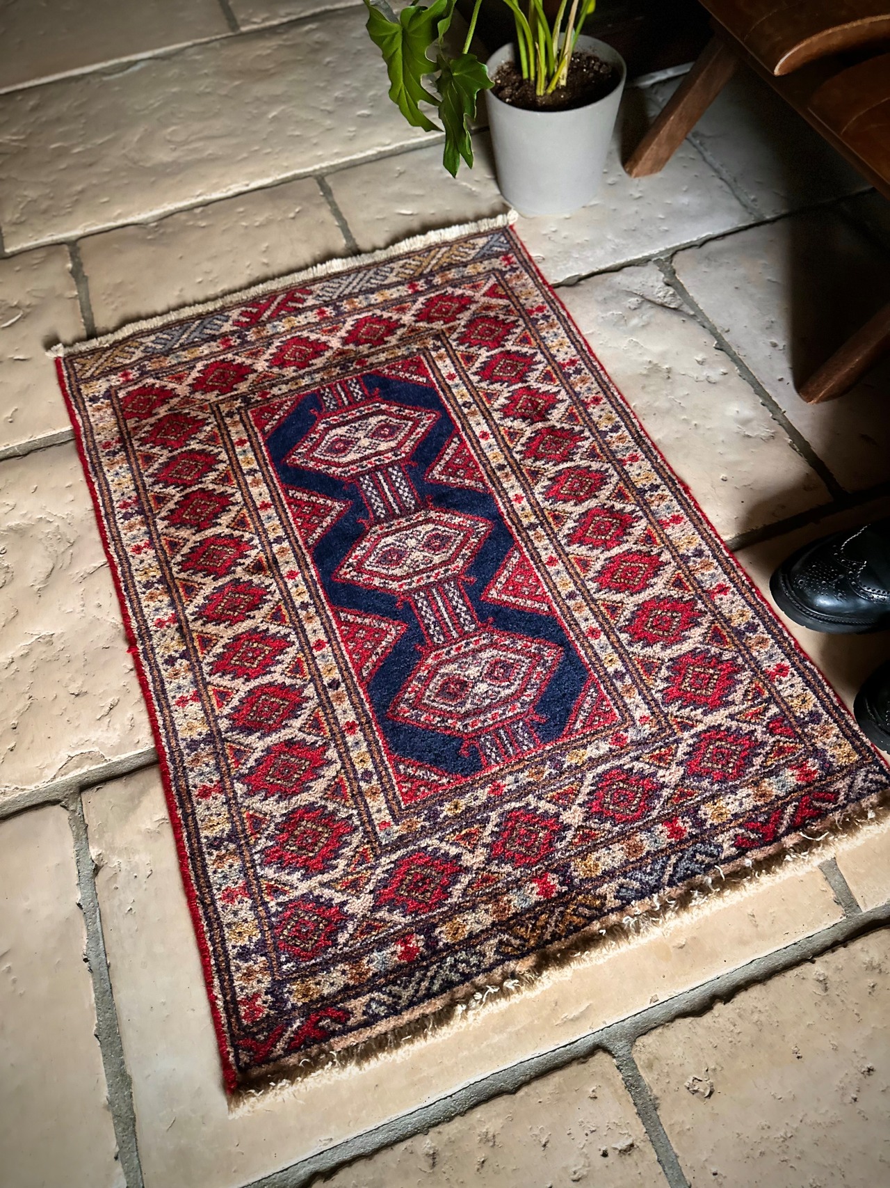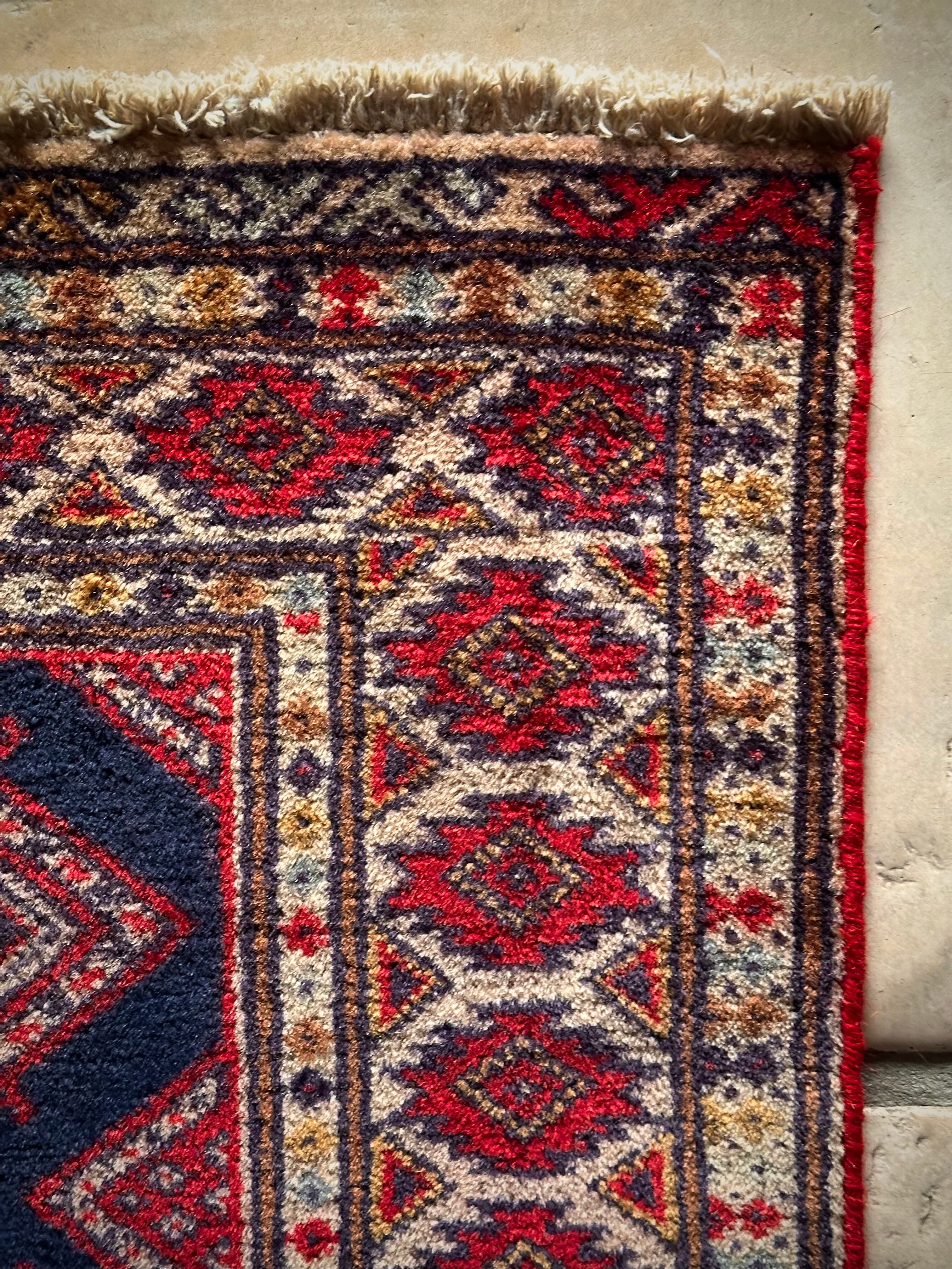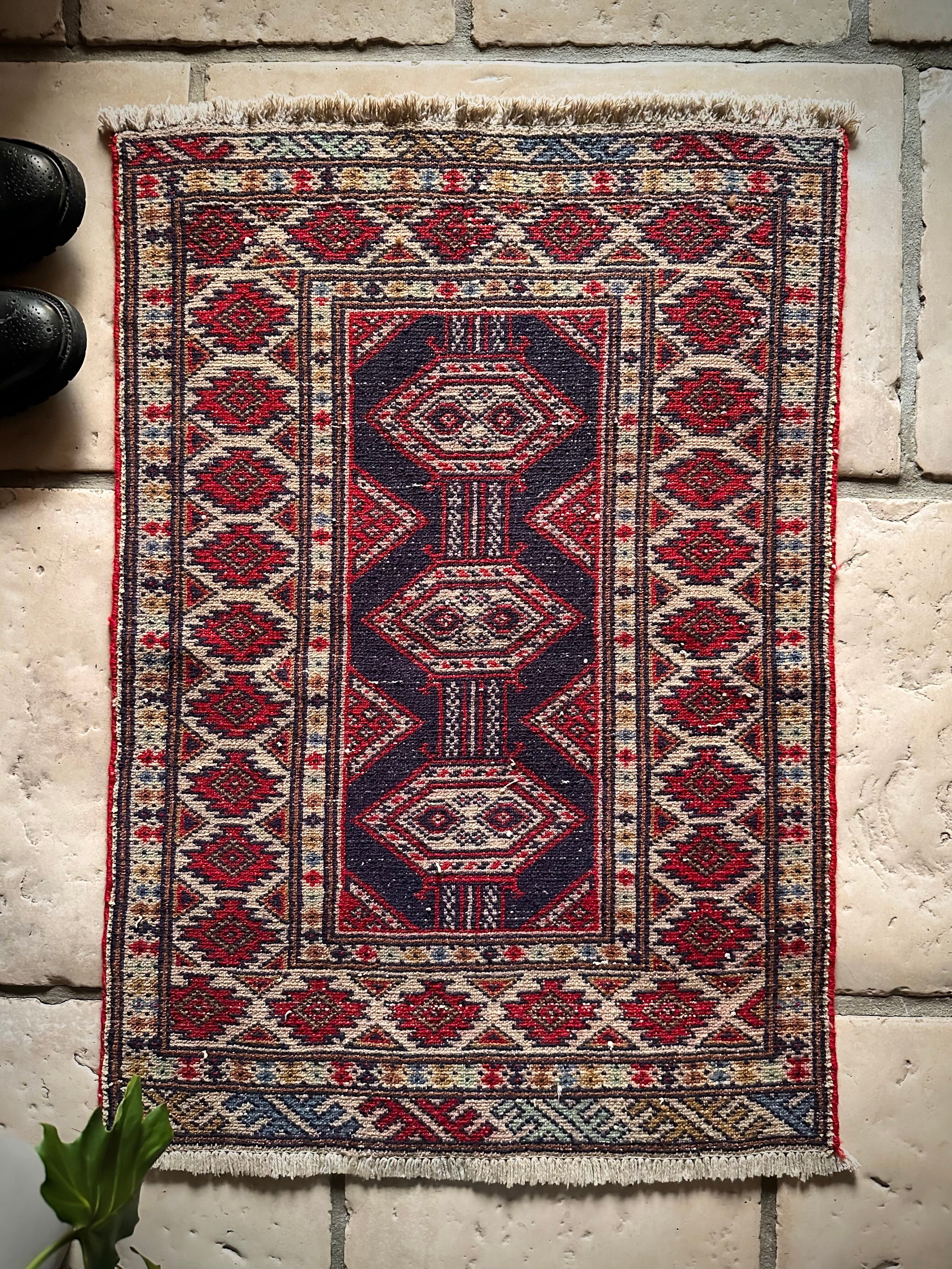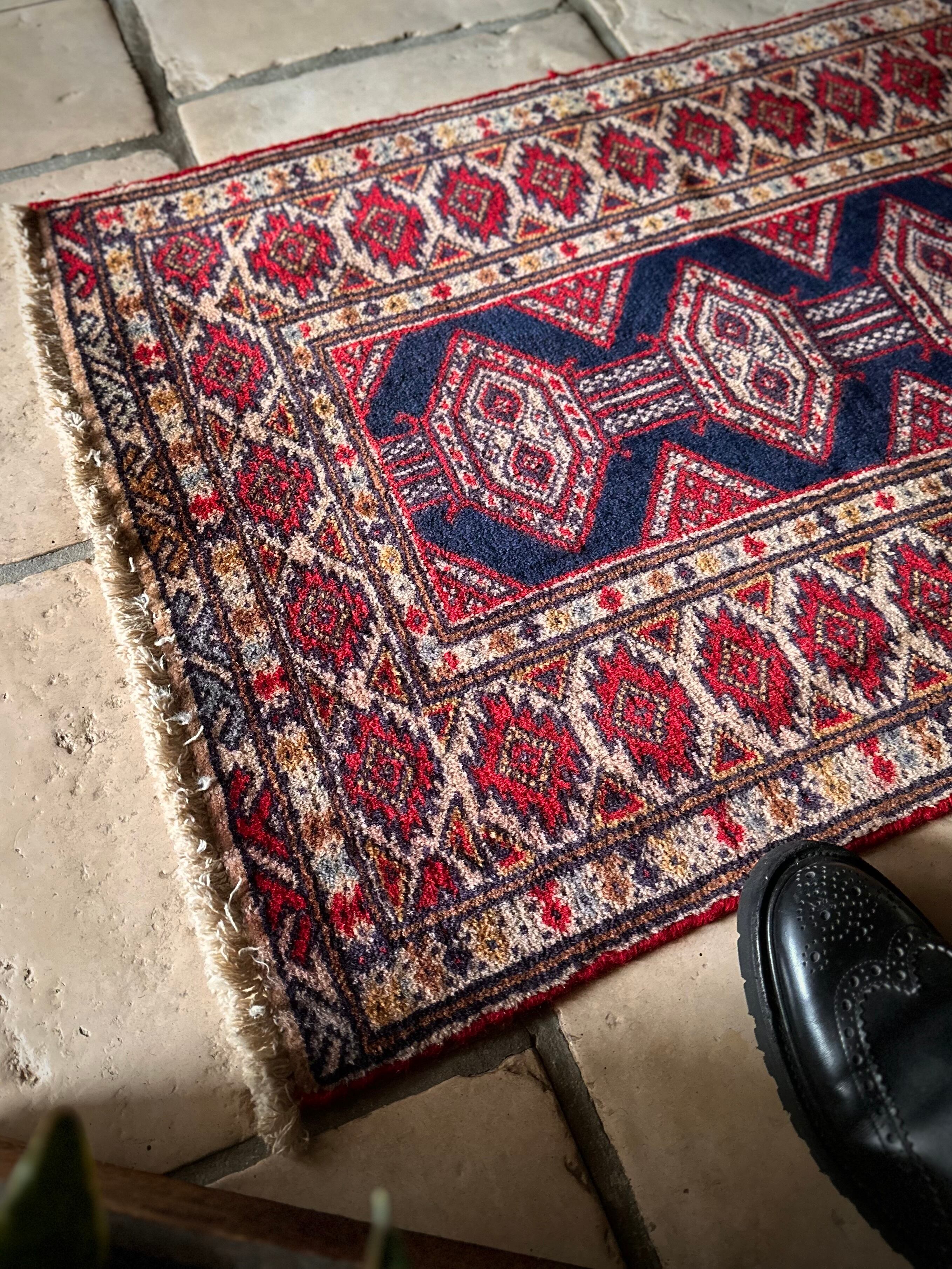 経年としてはあまり古くはない20年前となりますが、それほどの使用感はなく特に目立つ汚れやリペア箇所のないグッドなコンディションで、初めてのトライバルラグとして触れてみては如何でしょうか。