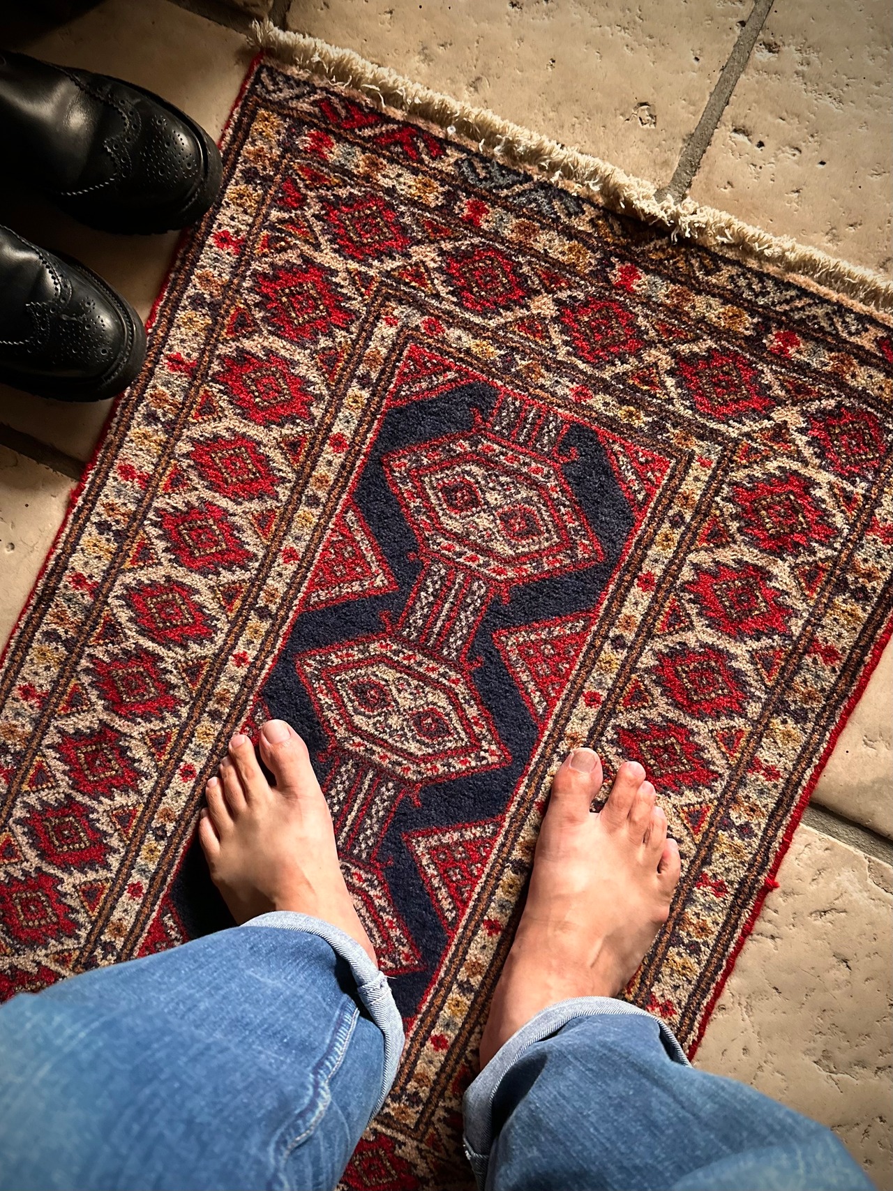 最後にラグそのものに関しては羊毛特有の匂いがあり、採寸は中央付近で計測していますが、手織りならではの歪みによる誤差や水洗いクリーニングによる縮み、また草木染めによる経年劣化の色ムラなどがありますが、それもまたヴィンテージラグの魅力かとご理解ください。