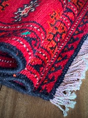 最後にラグそのものに関しては羊毛特有の匂いがあり、採寸は中央付近で計測していますが、手織りならではの歪みによる誤差や水洗いクリーニングによる縮み、また草木染めによる経年劣化の色ムラなどがありますが、それもまたヴィンテージラグの魅力かとご理解ください。