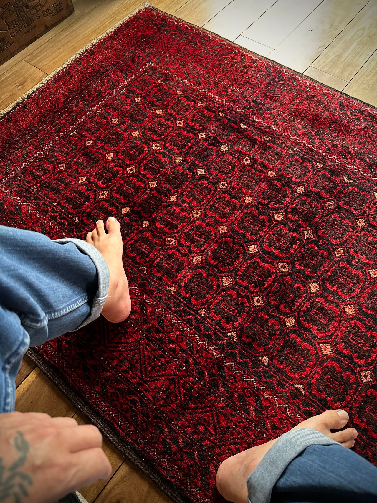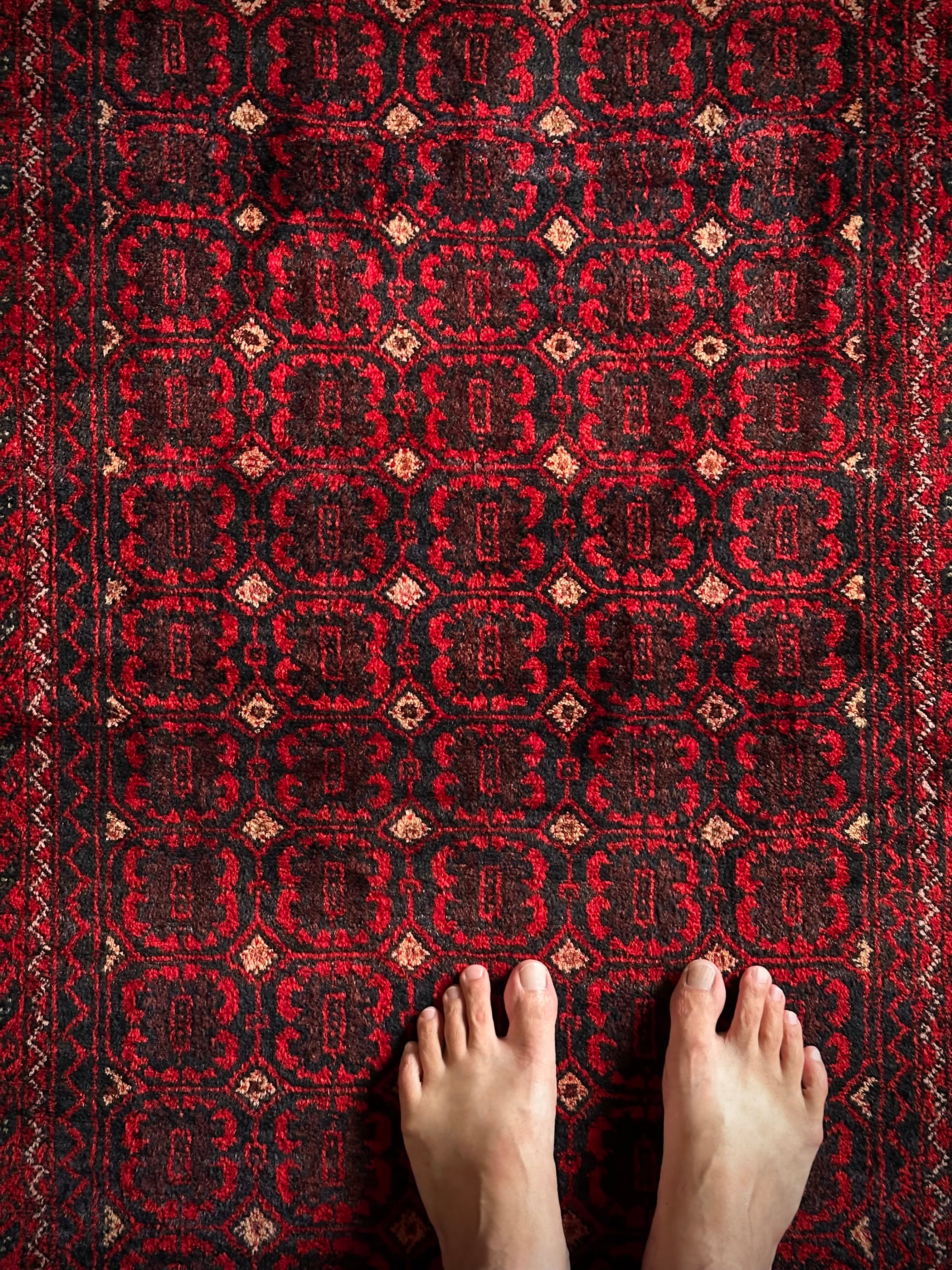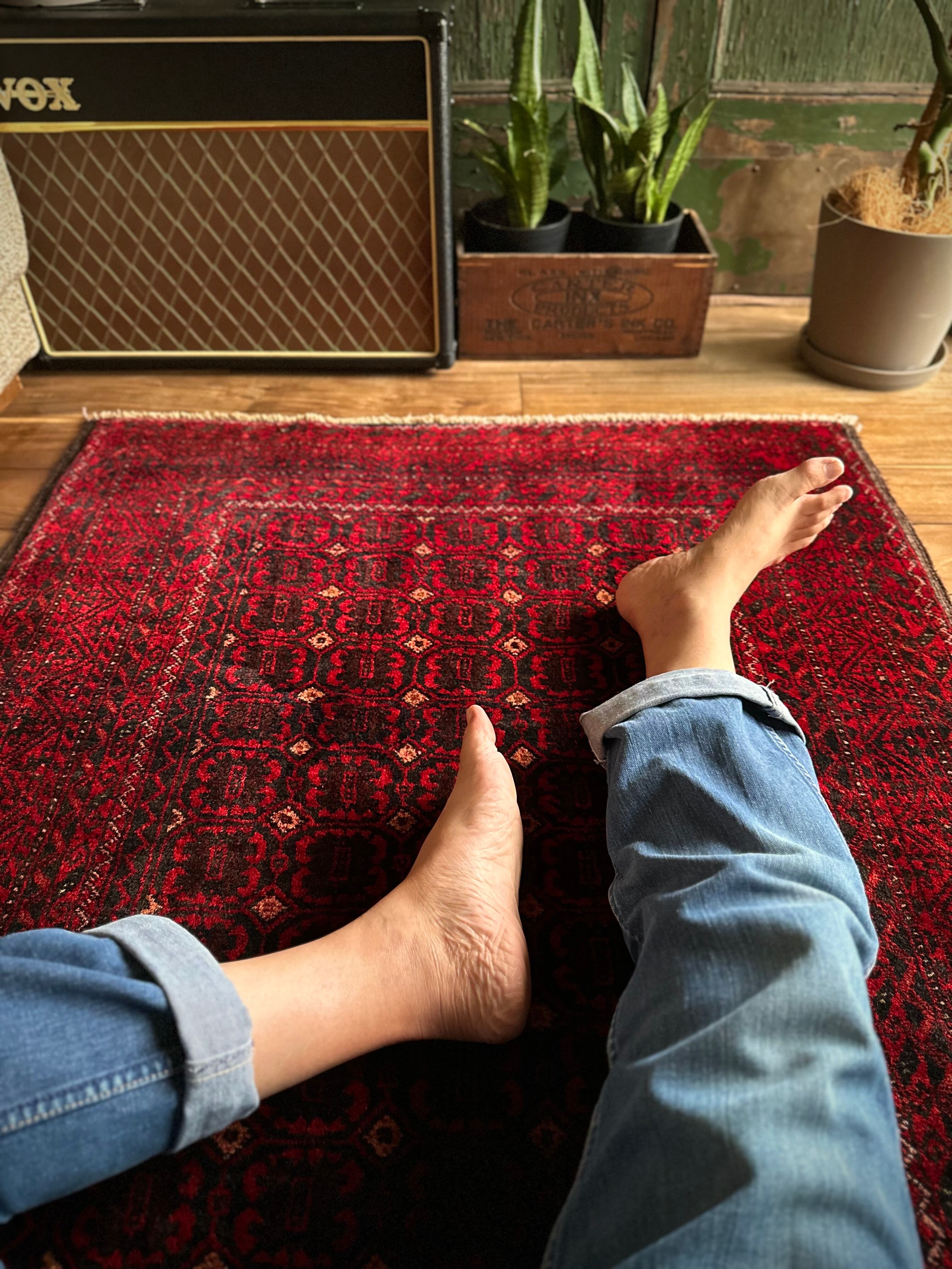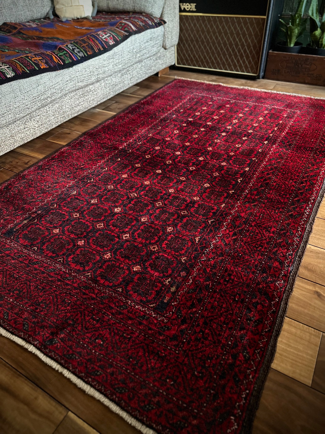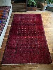 最後にラグそのものに関しては羊毛特有の匂いがあり、採寸は中央付近で計測していますが、手織りならではの歪みによる誤差や水洗いクリーニングによる縮み、また草木染めによる経年劣化の色ムラなどがありますが、それもまたヴィンテージラグの魅力かとご理解ください。