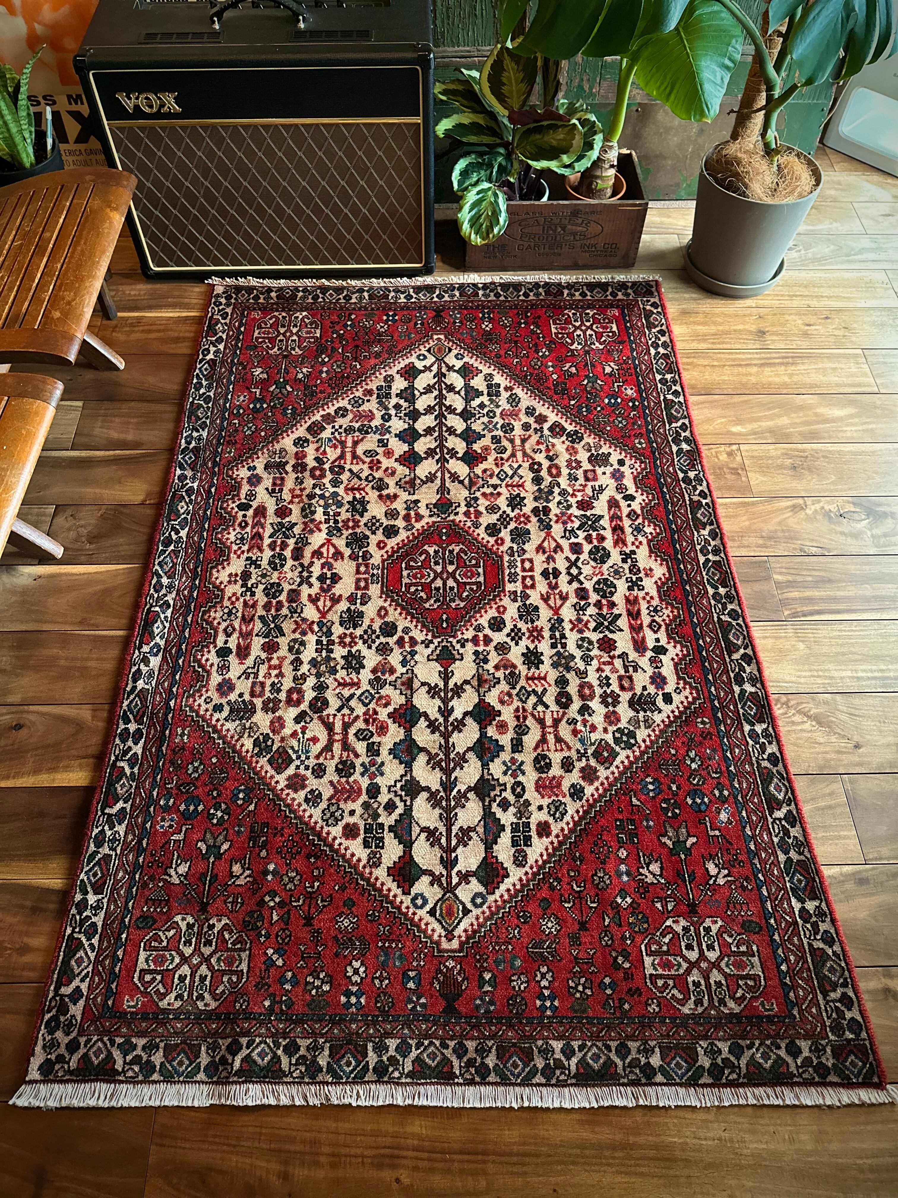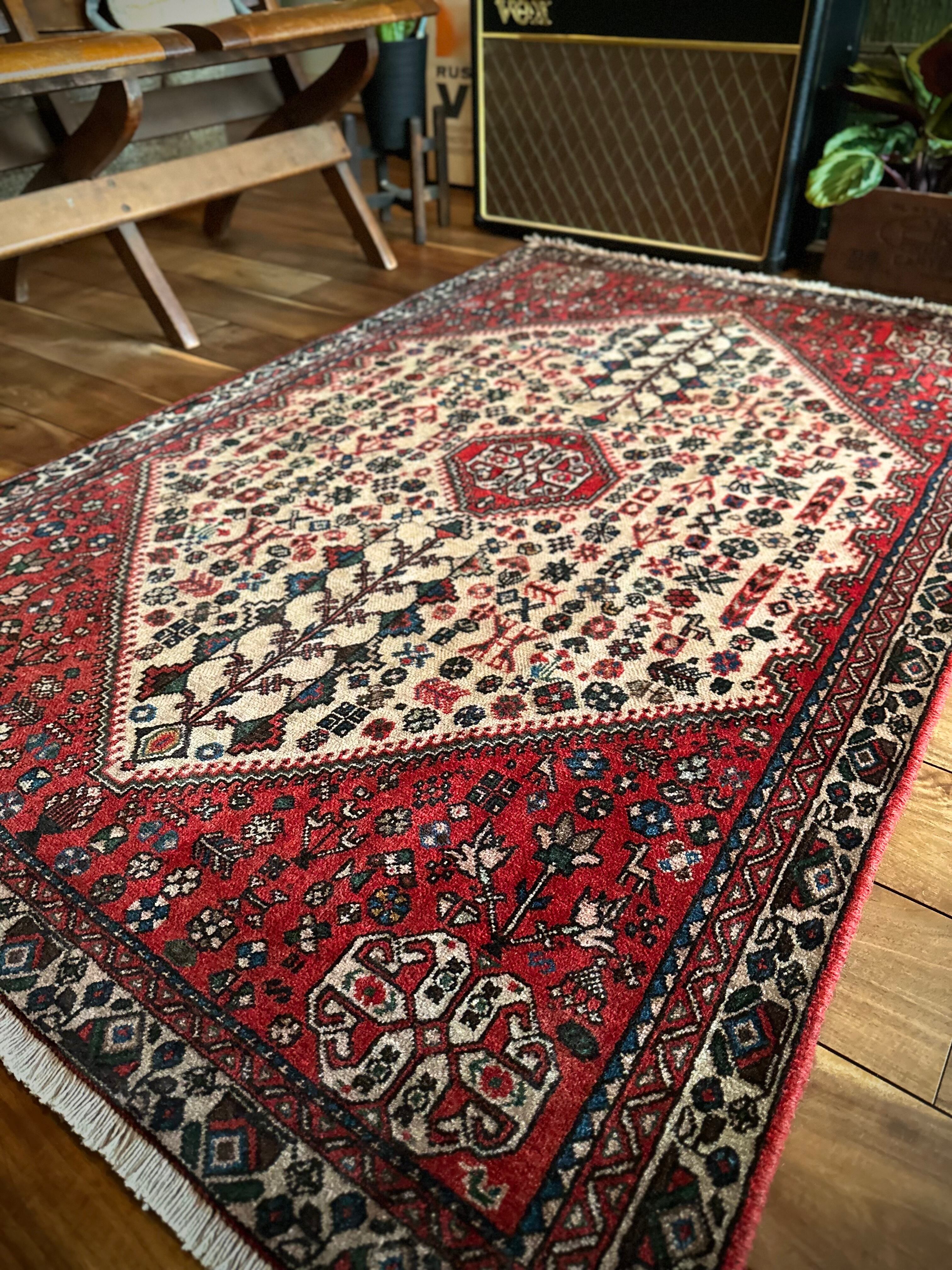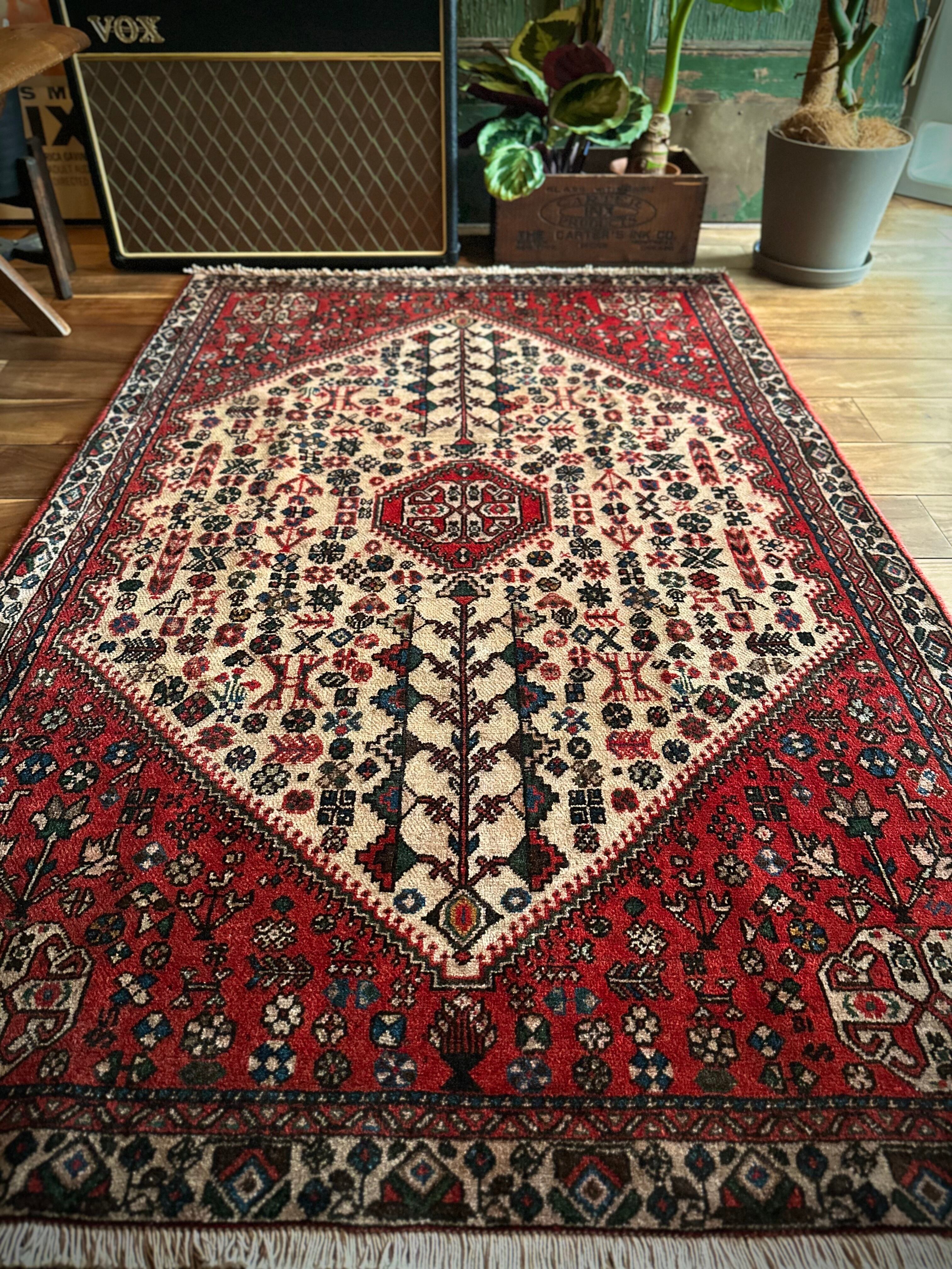 イラン南部のシラーズからペルシャ絨毯の名産地であるイスファハンの間に位置するアバデ市には、丈夫で良質な絨毯を製造する工房が多く、いつしかカシュガイ族のモチーフにインスピレーションを受けて似たようなデザインが多く存在します。