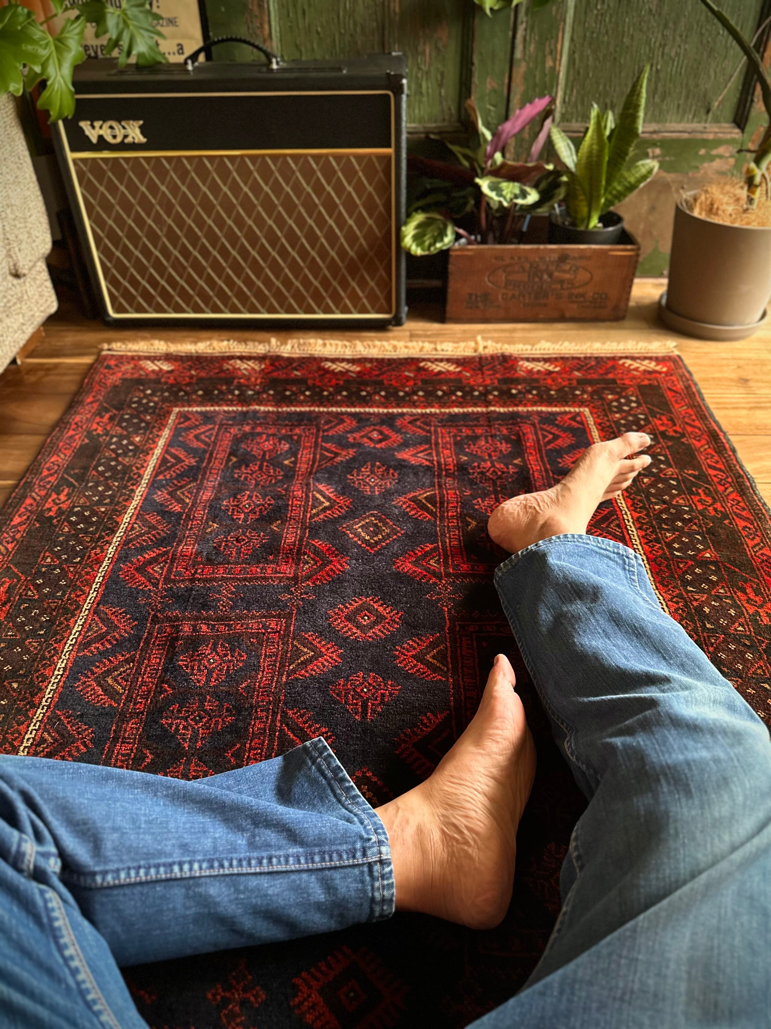フリンジ上下にあしらわれたトルクメン特有の紋様からして異部族交流による社会が形成されているのが伺われますが、バルーチっぽい男らしい配色が個人的に堪らなく、アフガンラグならではのソフトで柔らかな1枚になります。