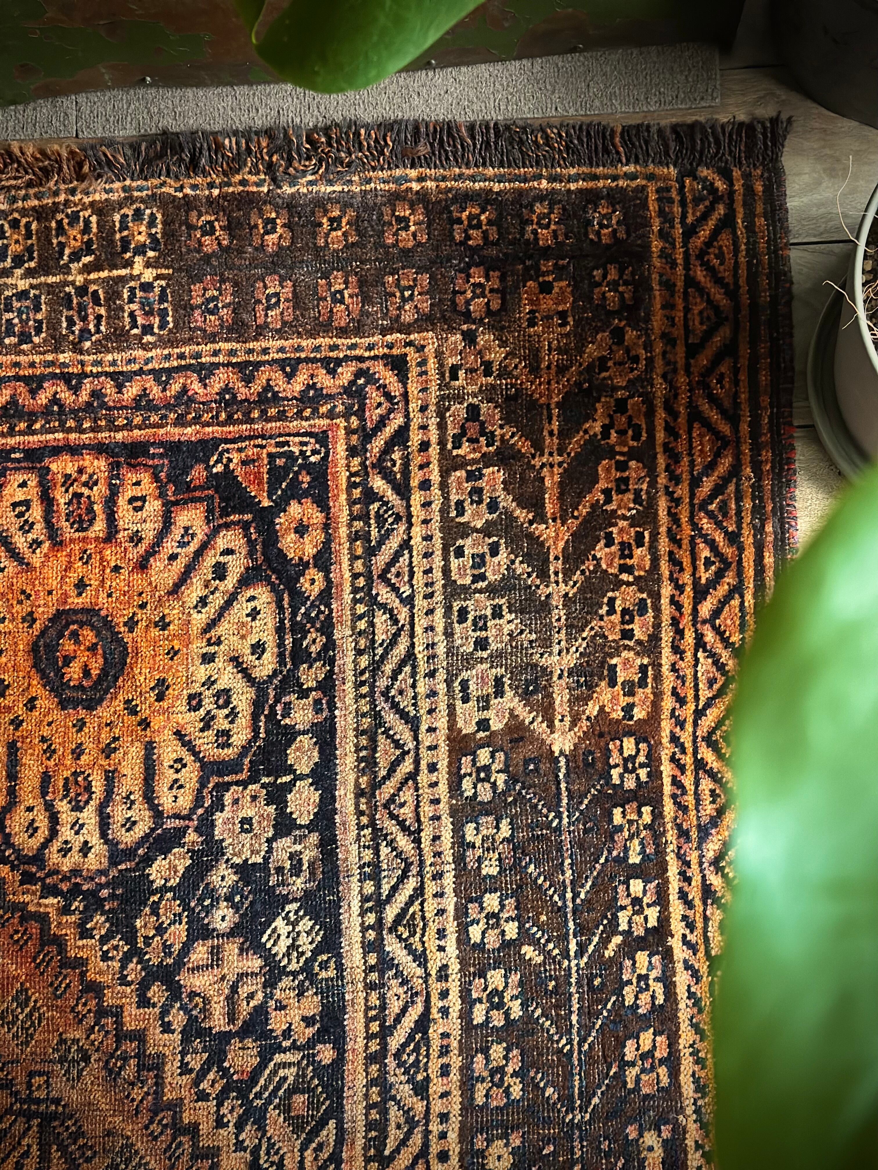 最後にラグそのものに関しては羊毛特有の匂いがあり、採寸は中央付近で計測していますが、手織りならではの歪みによる誤差や水洗いクリーニングによる縮み、また草木染めによる経年劣化の色ムラなどがありますが、それもまたヴィンテージラグの魅力かとご理解ください。