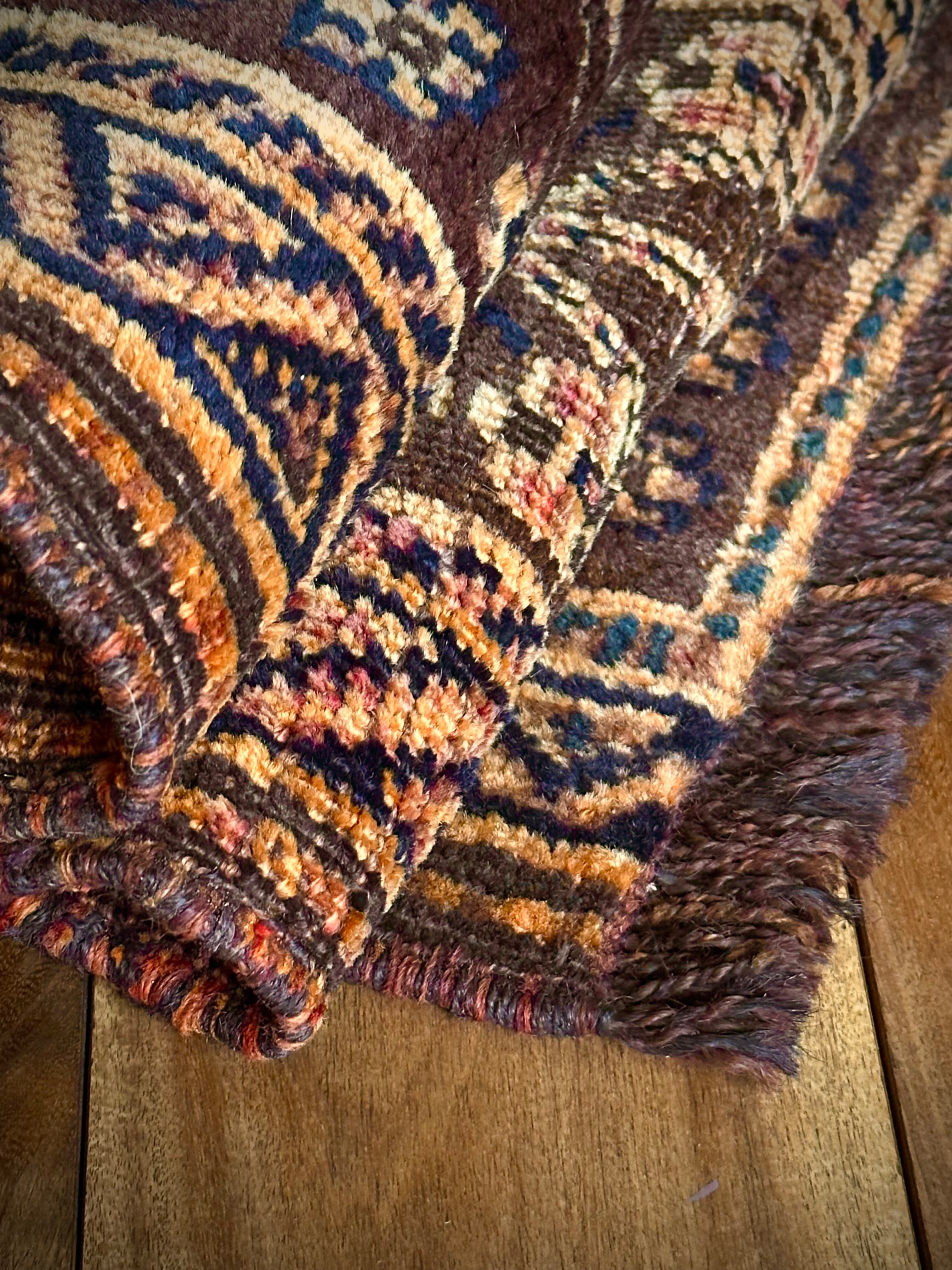 経年としてはかなり古い60年のオールド物で、経年劣化による色褪せに所々パイルの剥げた部分、また細かなリペア跡が数カ所ありますが上手く修復されていて、特に目立つ汚れやダメージは見受けられませんので写真をズームにしてご確認ください。