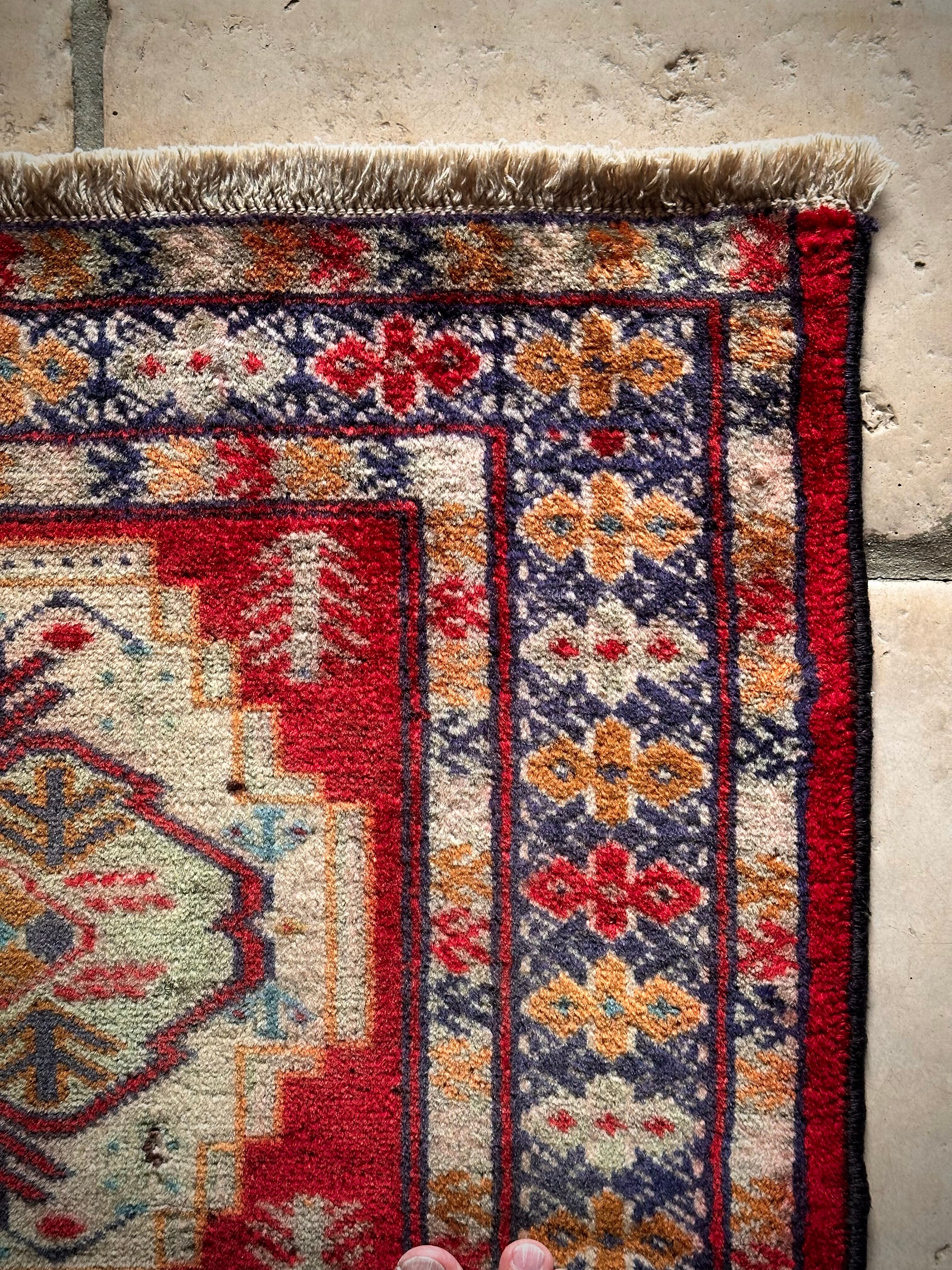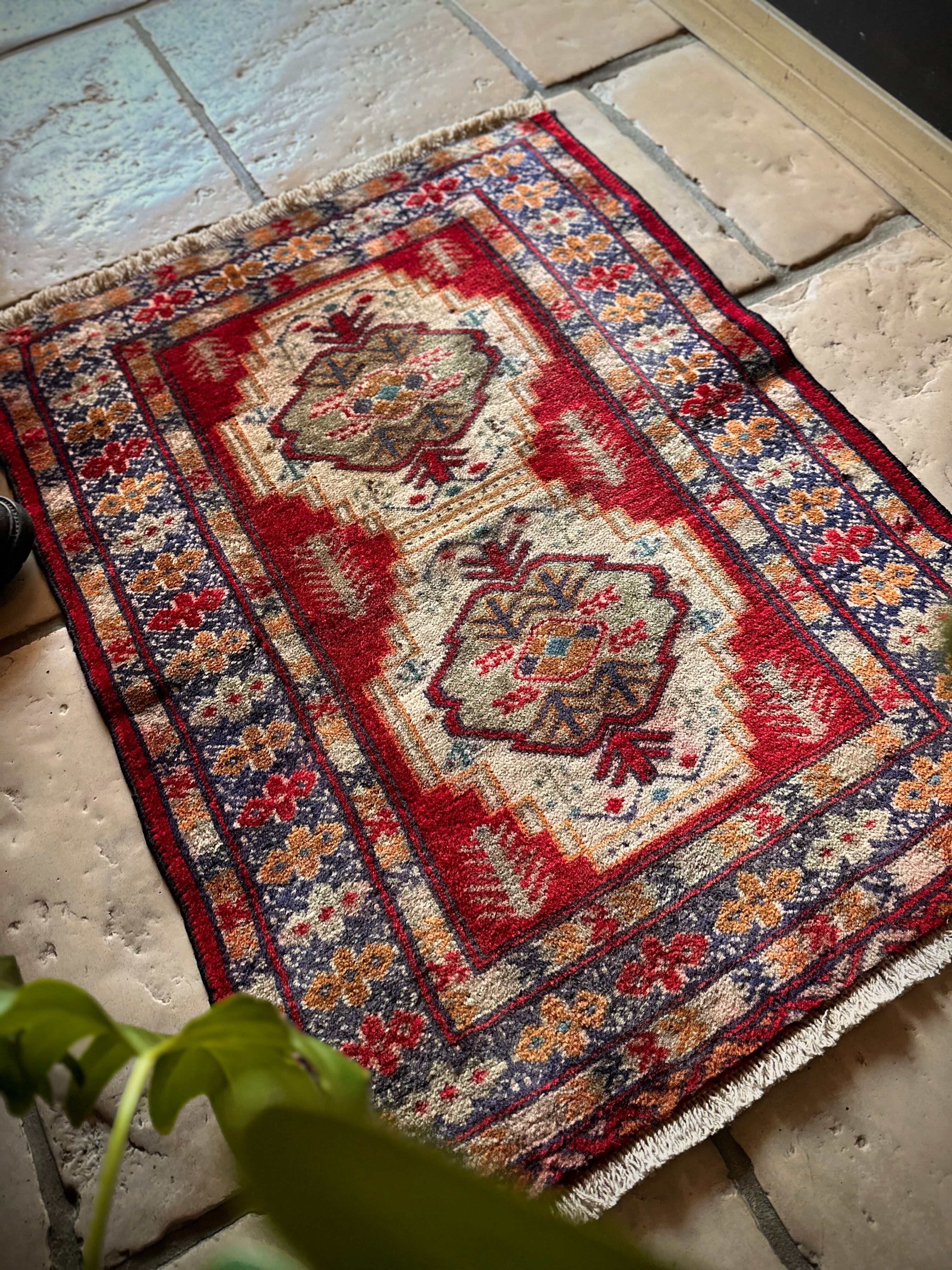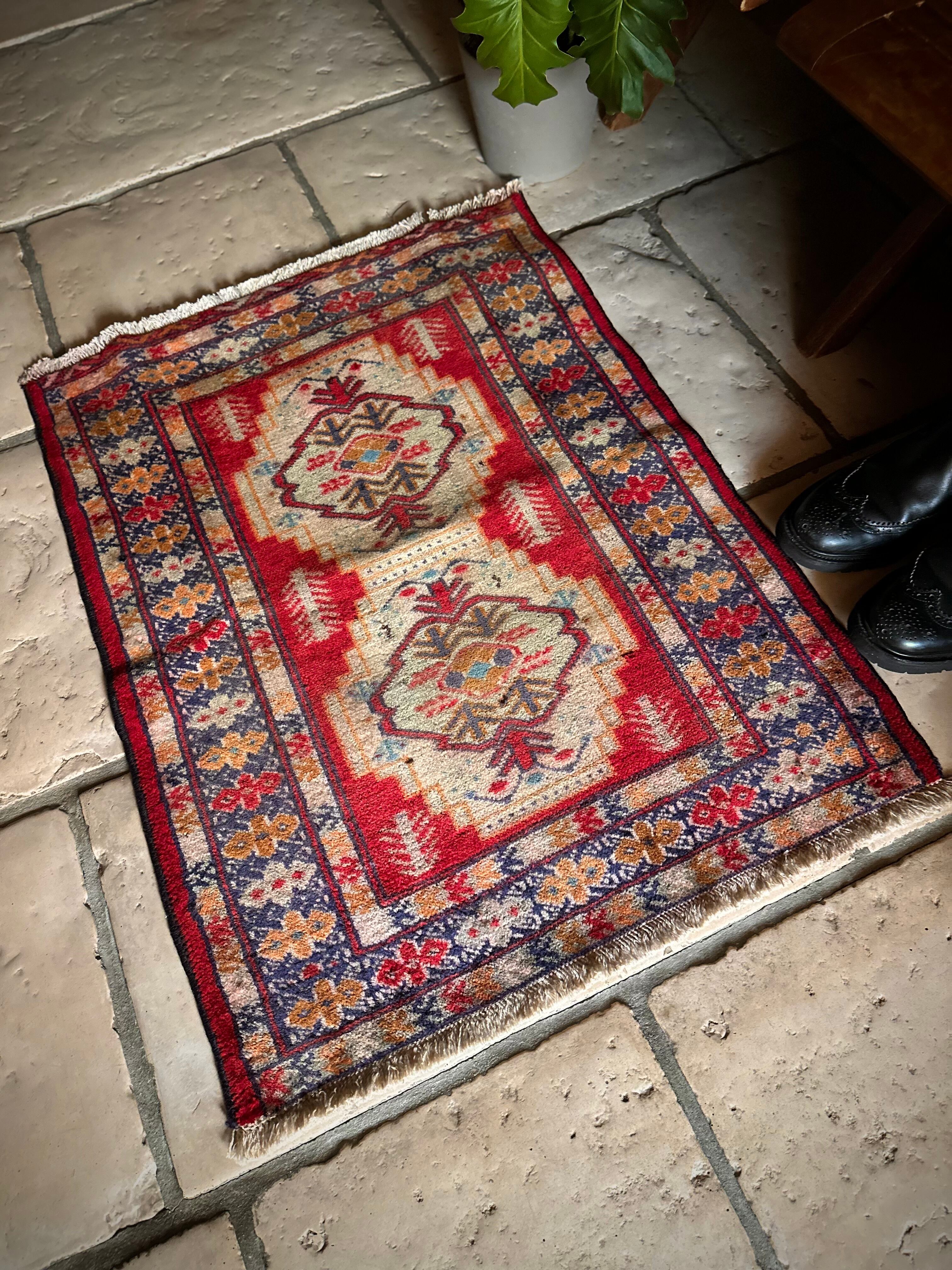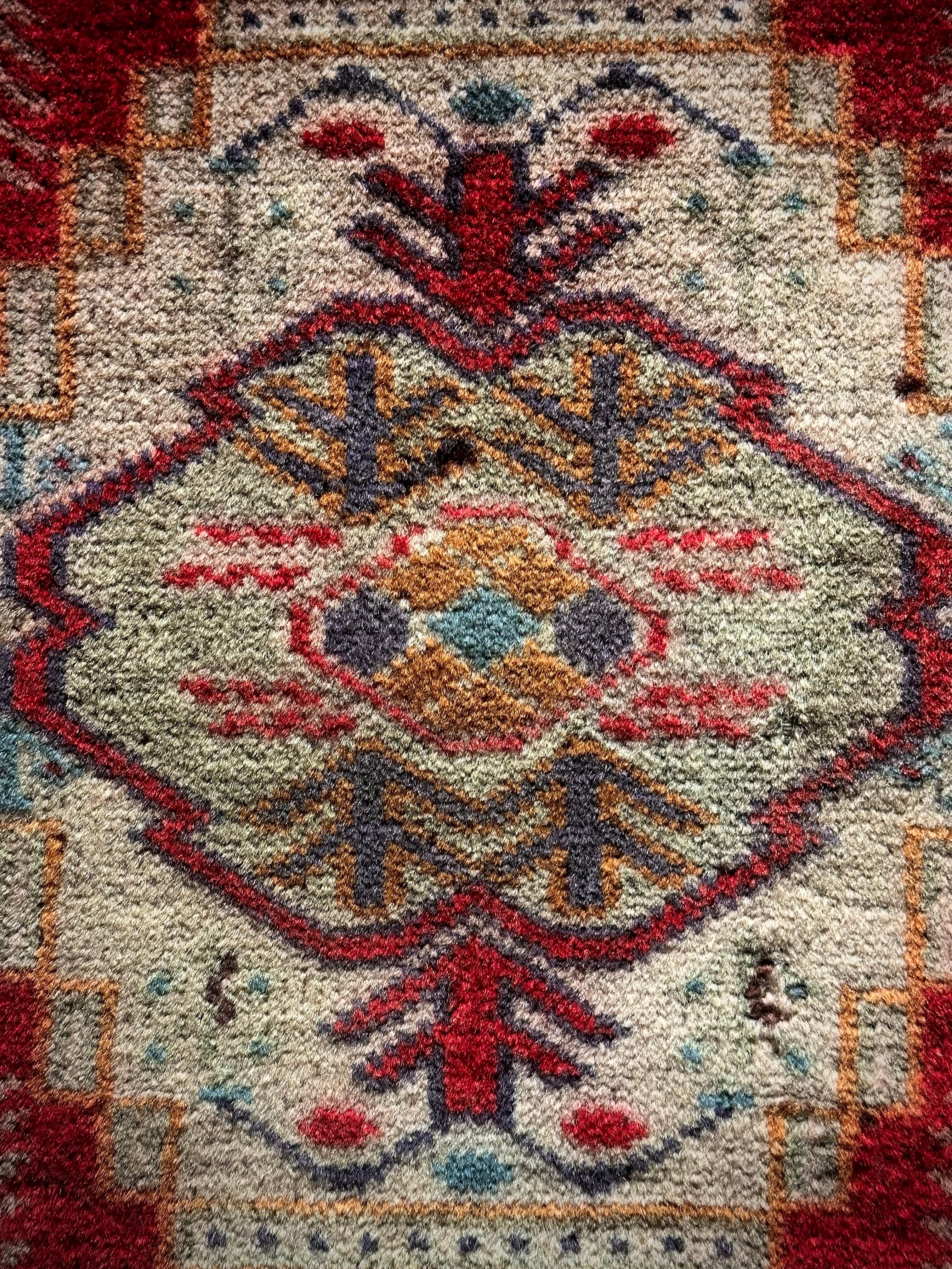 最後にラグそのものに関しては羊毛特有の匂いがあり、採寸は中央付近で計測していますが、手織りならではの歪みによる誤差や水洗いクリーニングによる縮み、また草木染めによる経年劣化の色ムラなどがありますが、それもまたヴィンテージラグの魅力かとご理解ください。