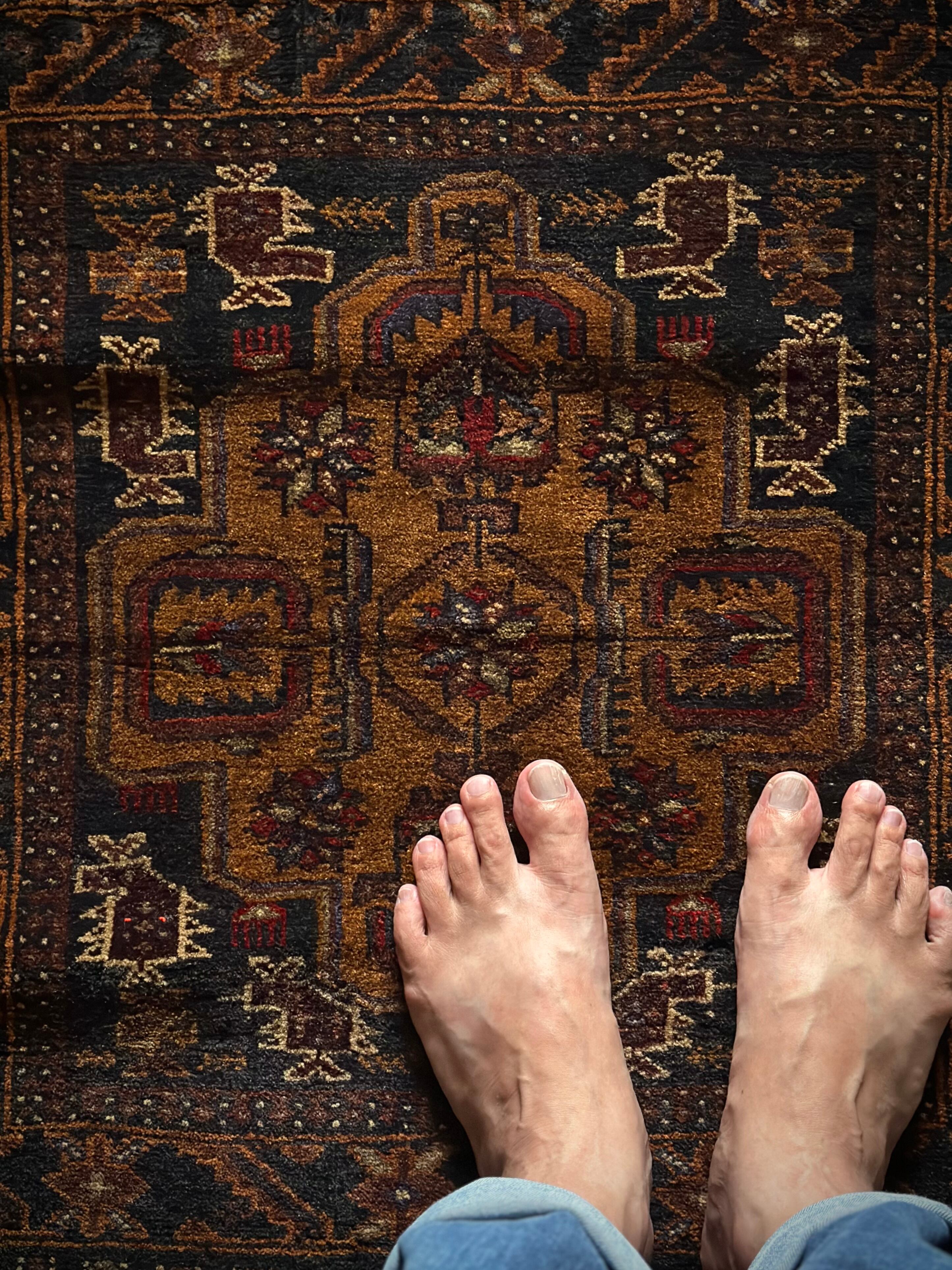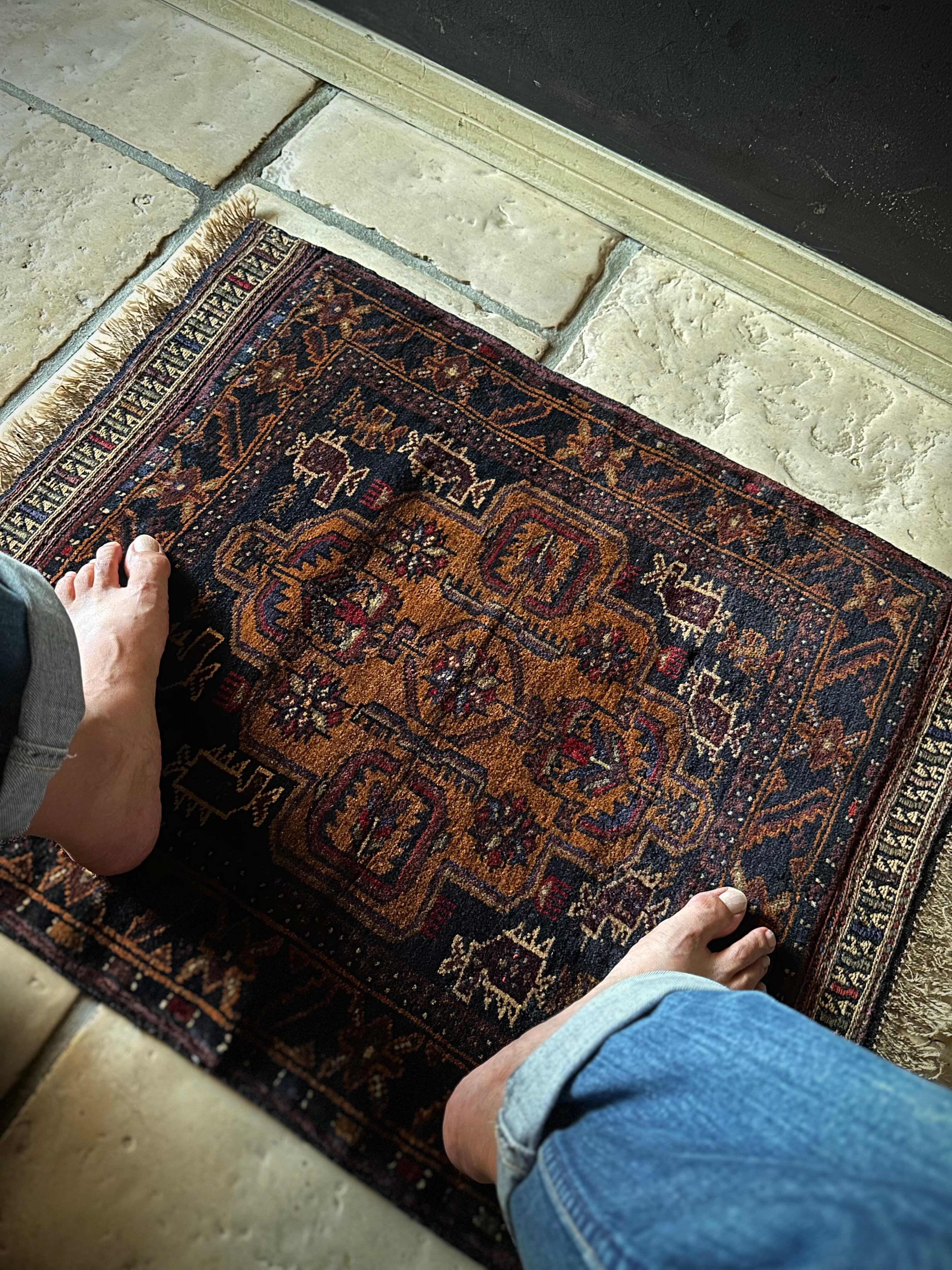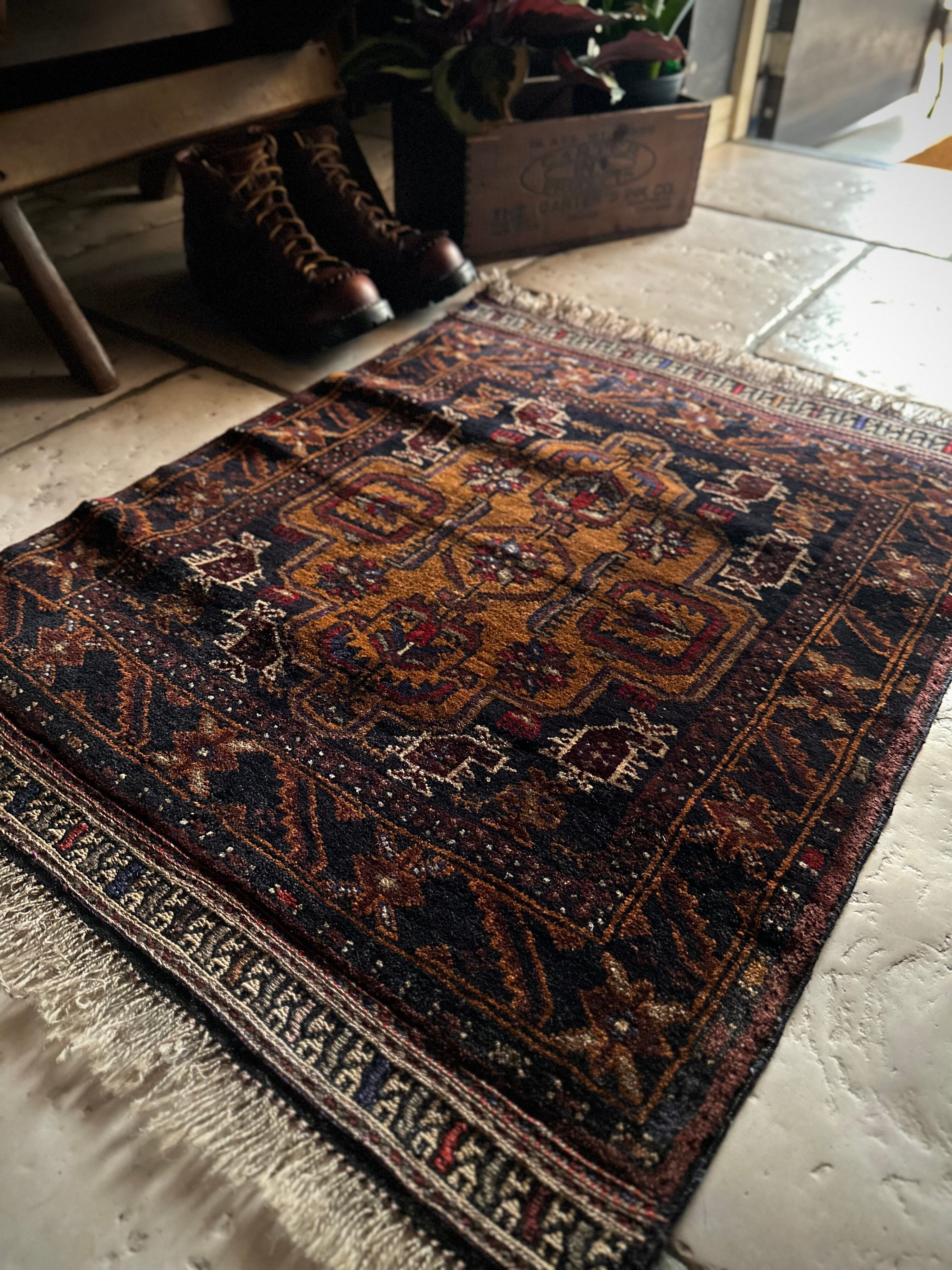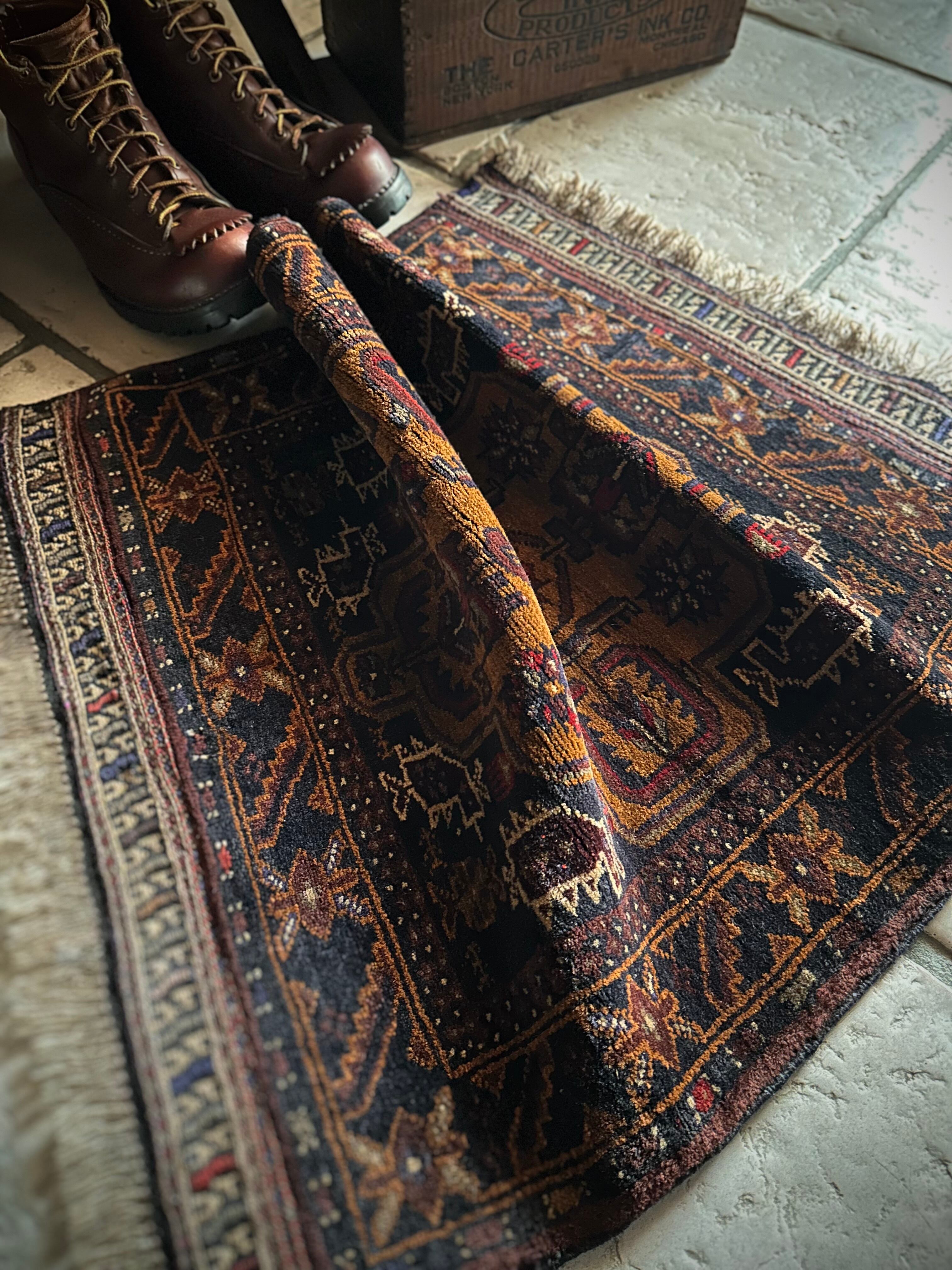 最後にラグそのものに関しては羊毛特有の匂いがあり、採寸は中央付近で計測していますが、手織りならではの歪みによる誤差や水洗いクリーニングによる縮み、また草木染めによる経年劣化の色ムラなどがありますが、それもまたヴィンテージラグの魅力かとご理解ください。