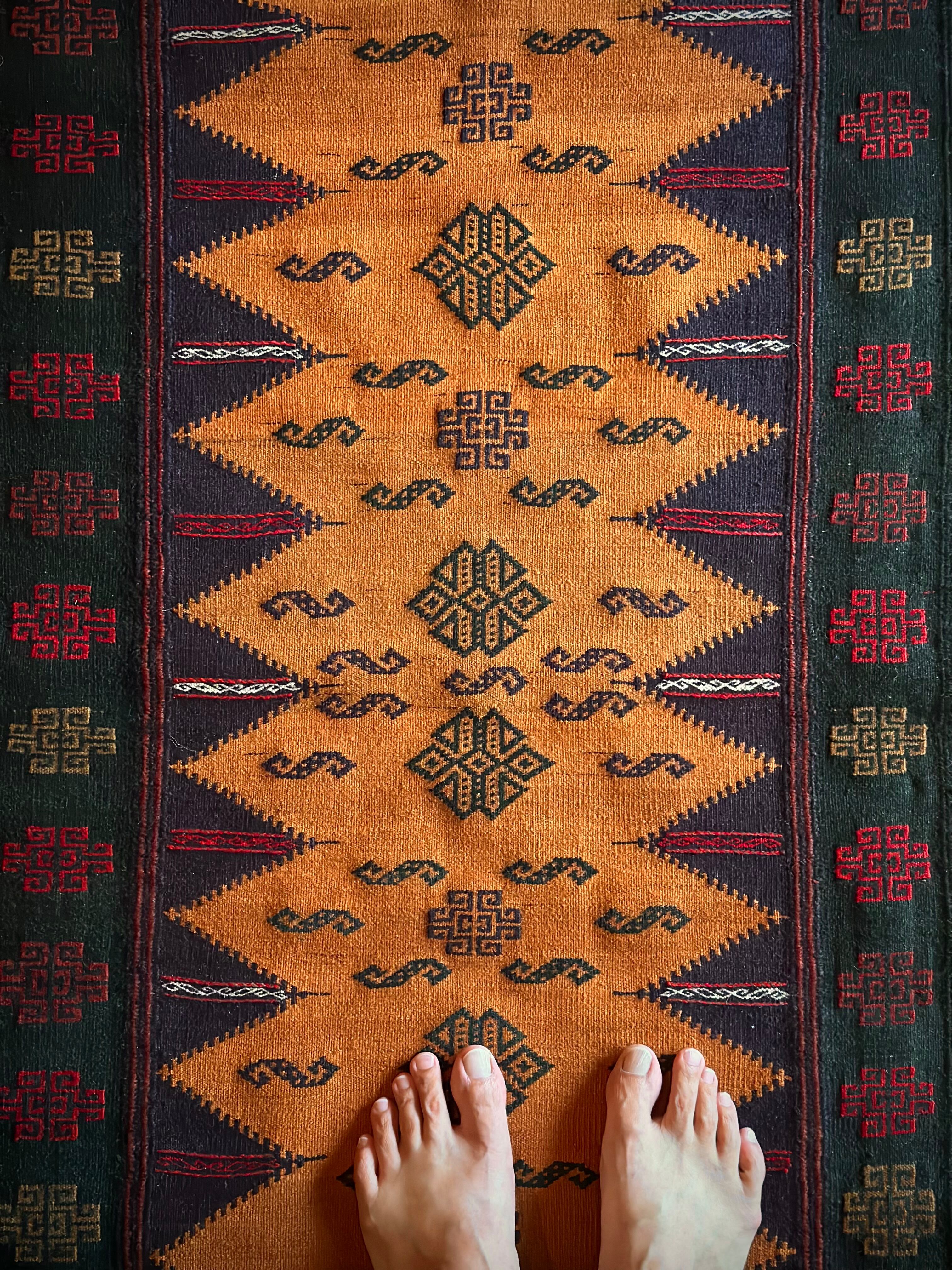 最後にラグそのものに関しては羊毛特有の匂いがあり、採寸は中央付近で計測していますが、手織りならではの歪みによる誤差や水洗いクリーニングによる縮み、また草木染めによる経年劣化の色ムラなどがありますが、それもまたヴィンテージラグの魅力かとご理解ください。