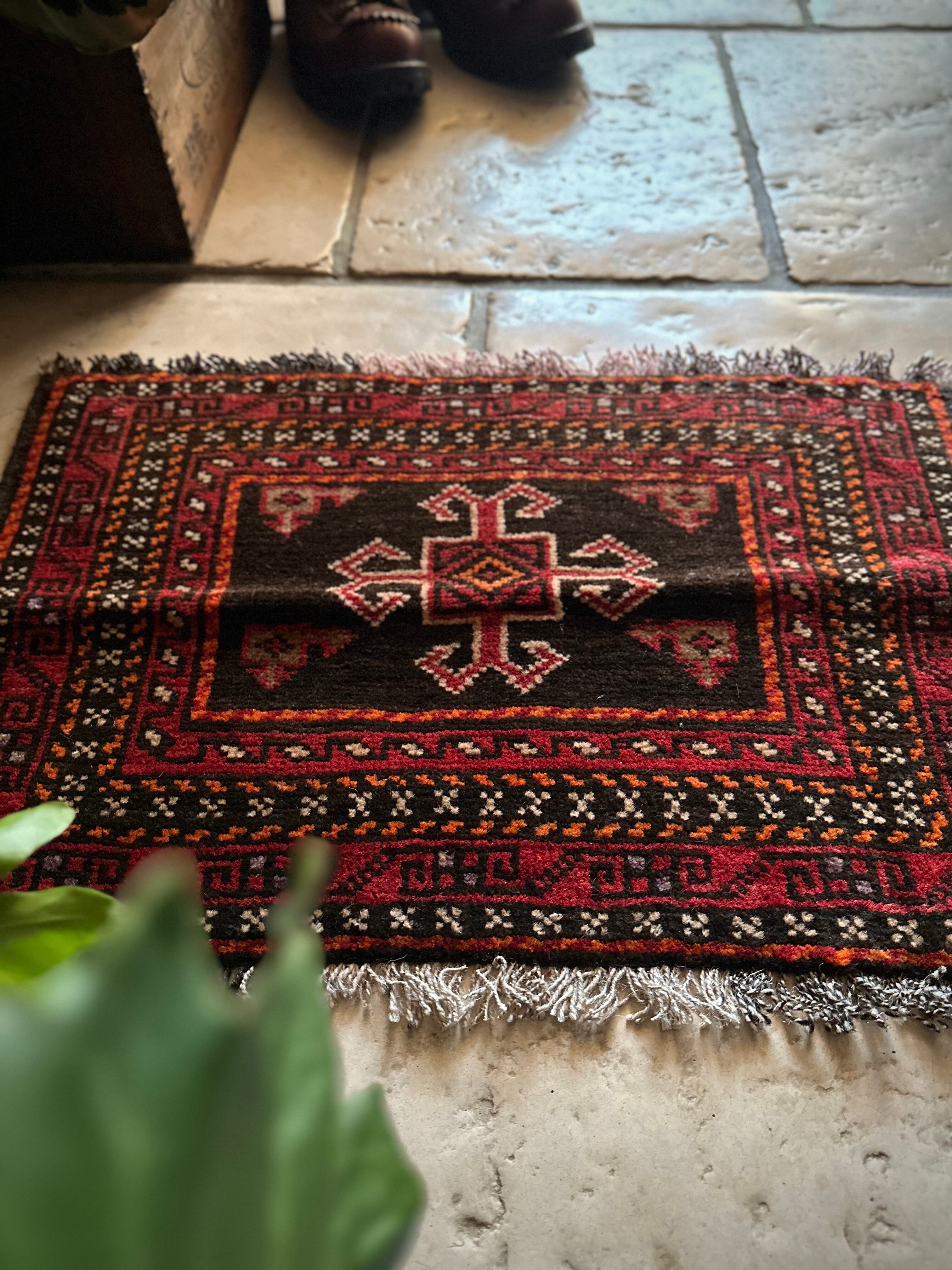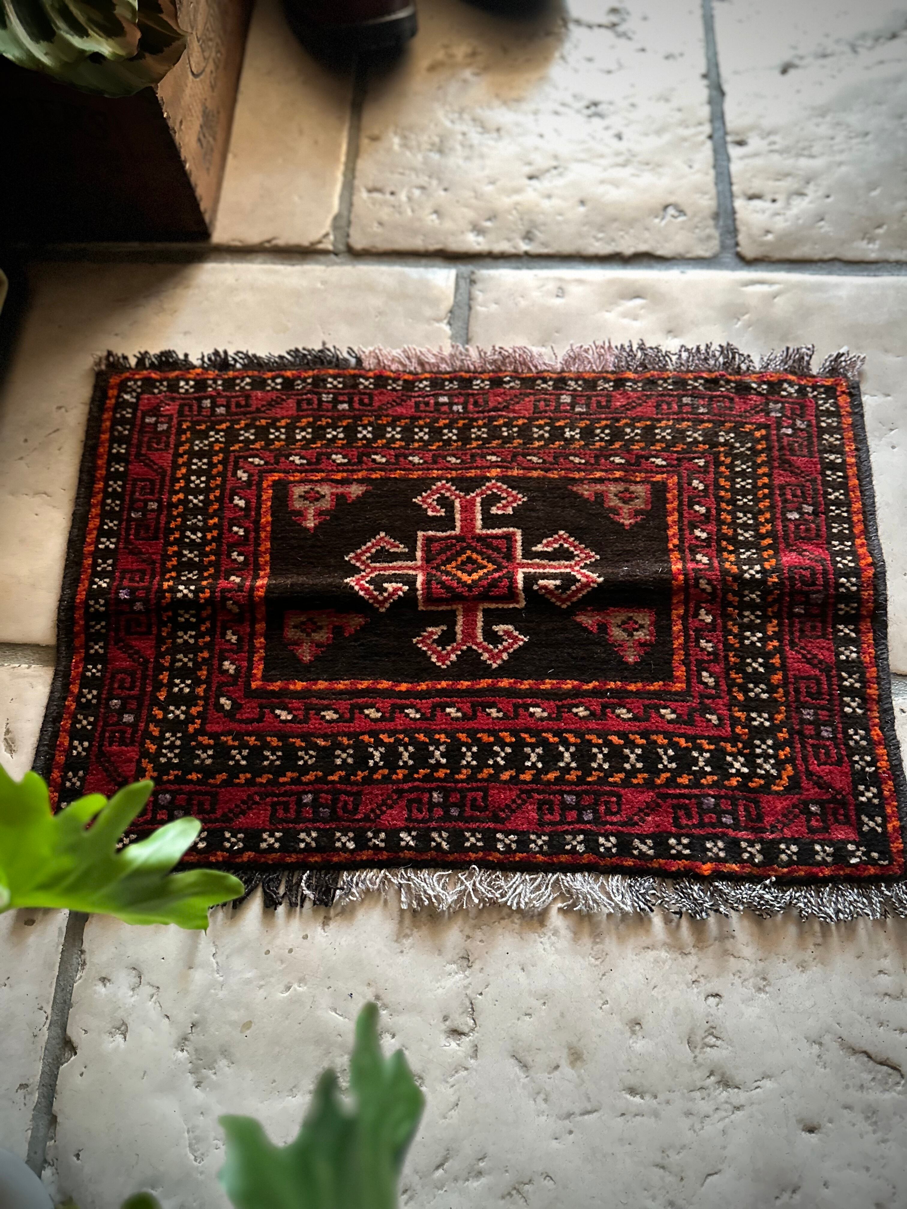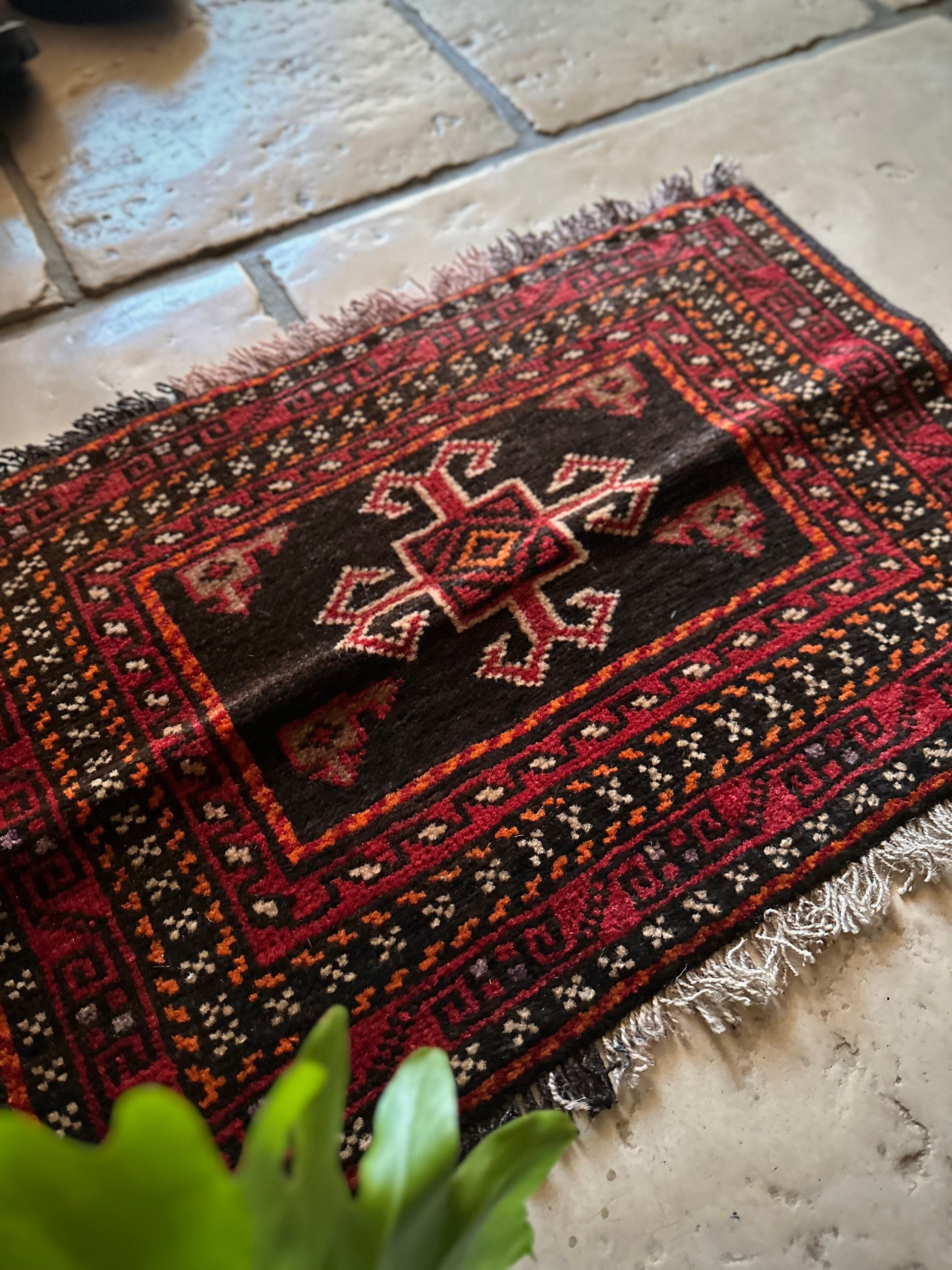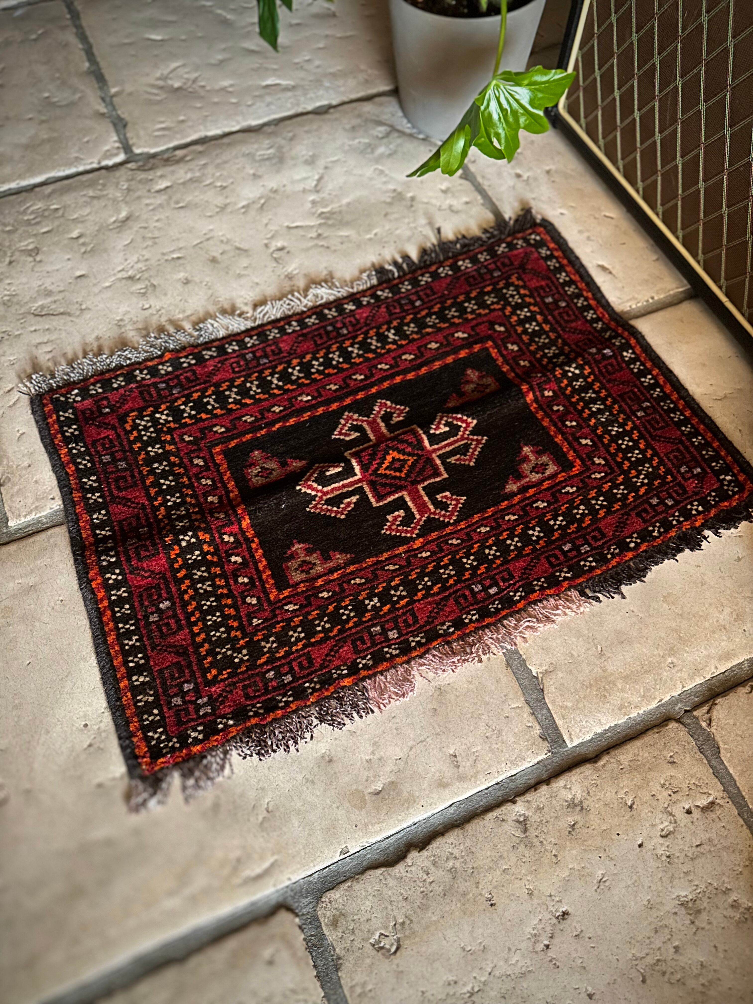 小振りなサイズながらもテラコッタベースに細かなミルフィーユ状の模様がヘラート産バルーチらしいトライバルラグで、元々はホルジンと呼ばれるラクダやロバの背に跨がせるサドルバッグの表皮をラグに仕立て直したモノになり、本来なら2対セットの内の片側だけになります。