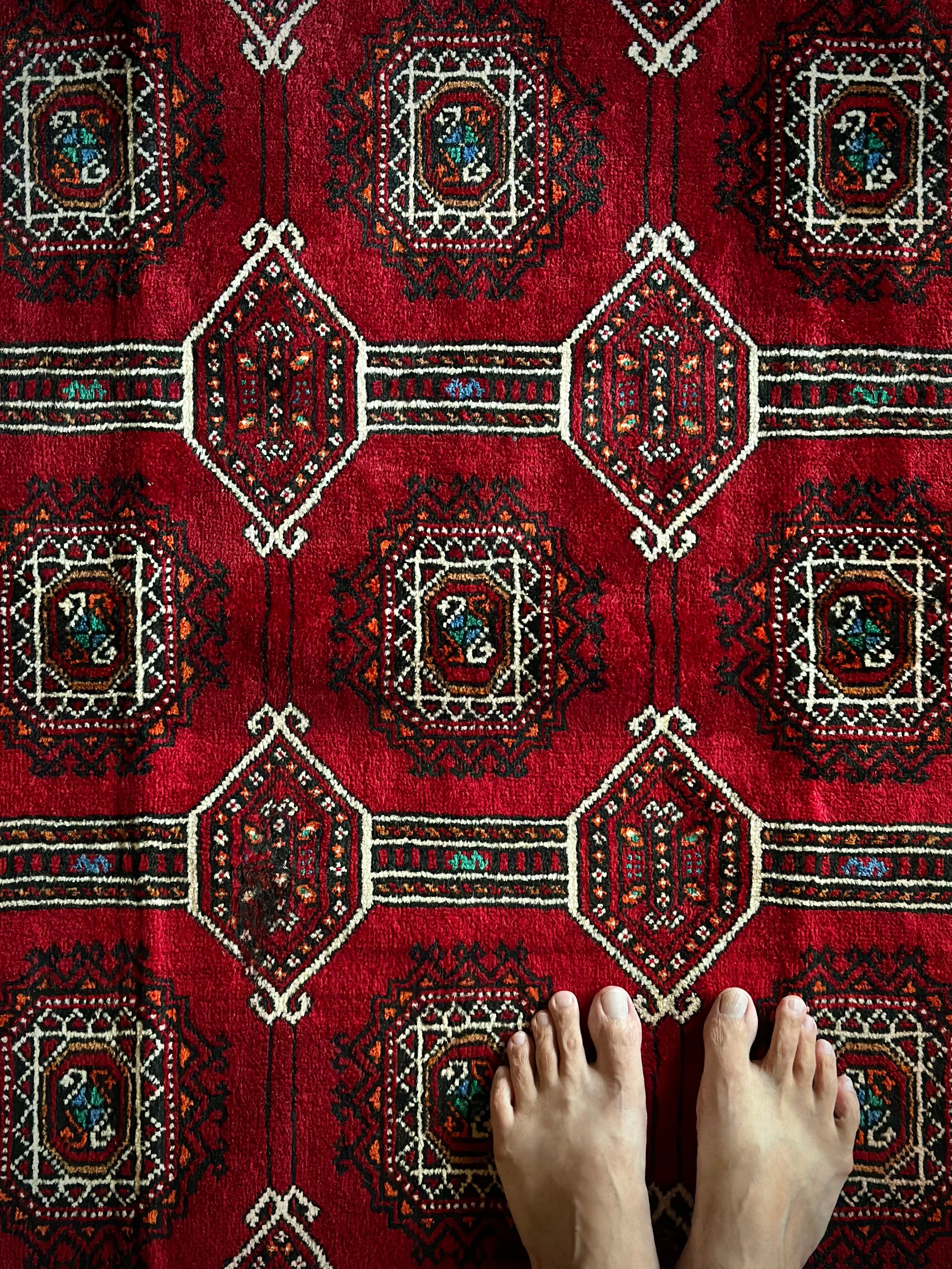 最後にラグそのものに関しては羊毛特有の匂いがあり、採寸は中央付近で計測していますが、手織りならではの歪みによる誤差や水洗いクリーニングによる縮み、また草木染めによる経年劣化の色ムラなどがありますが、それもまたヴィンテージラグの魅力かとご理解ください。
