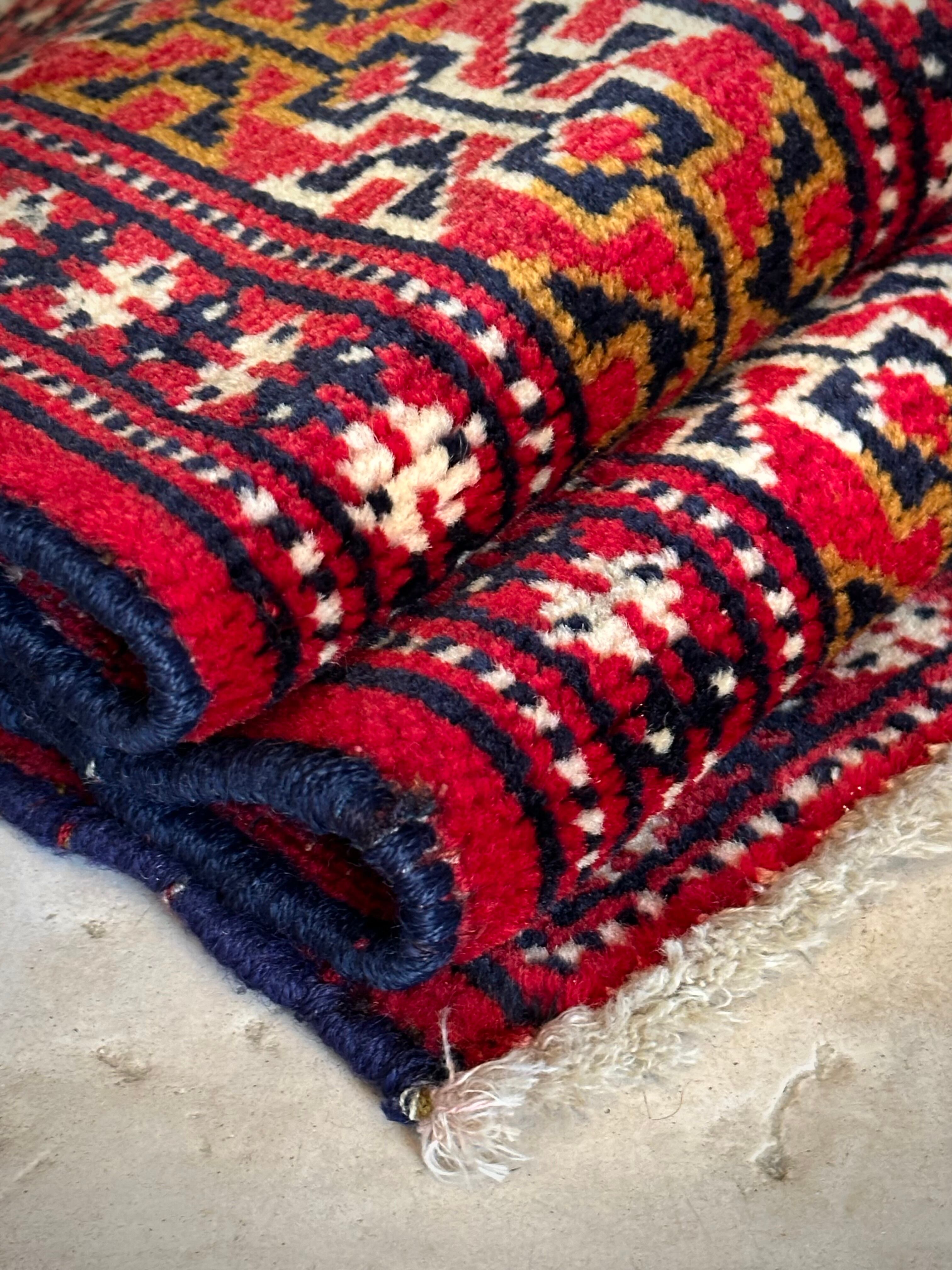 経年としてはあまり古くはない25年前となりますが、それほどの使用感はなく特に目立つ汚れやリペア箇所のないグッドなコンディションで、初めてのトライバルラグとして触れてみては如何でしょうか。