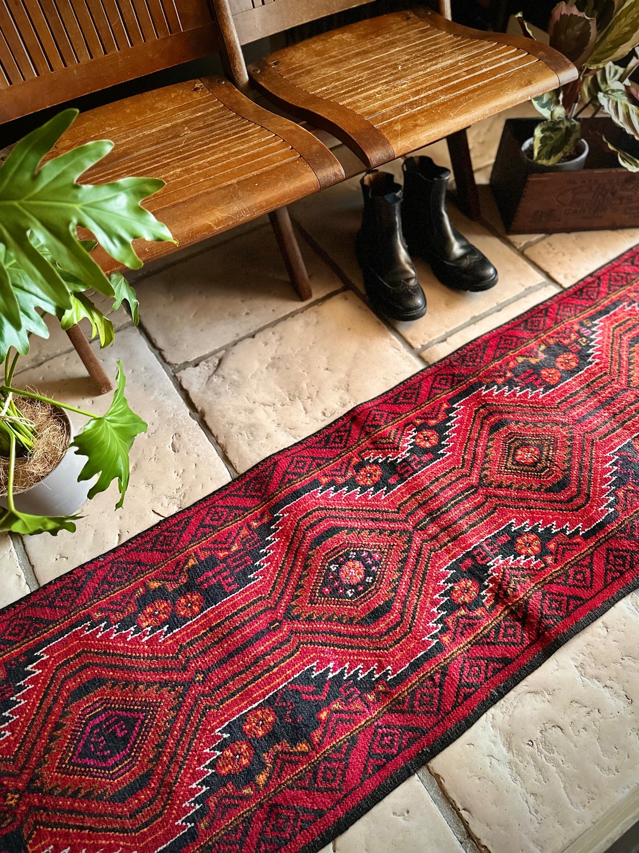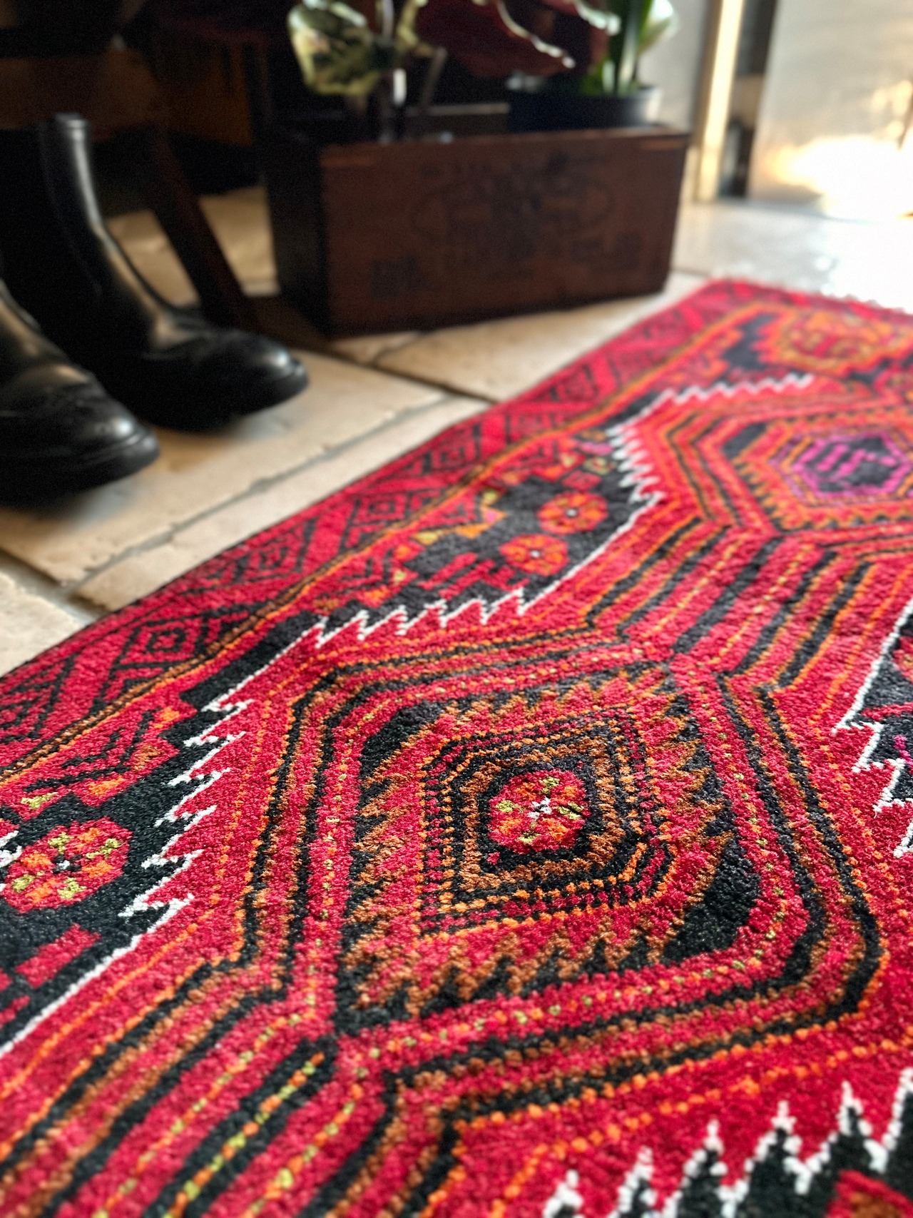 最後にラグそのものに関しては羊毛特有の匂いがあり、採寸は中央付近で計測していますが、手織りならではの歪みによる誤差や水洗いクリーニングによる縮み、また草木染めによる経年劣化の色ムラなどがありますが、それもまたヴィンテージラグの魅力かとご理解ください。