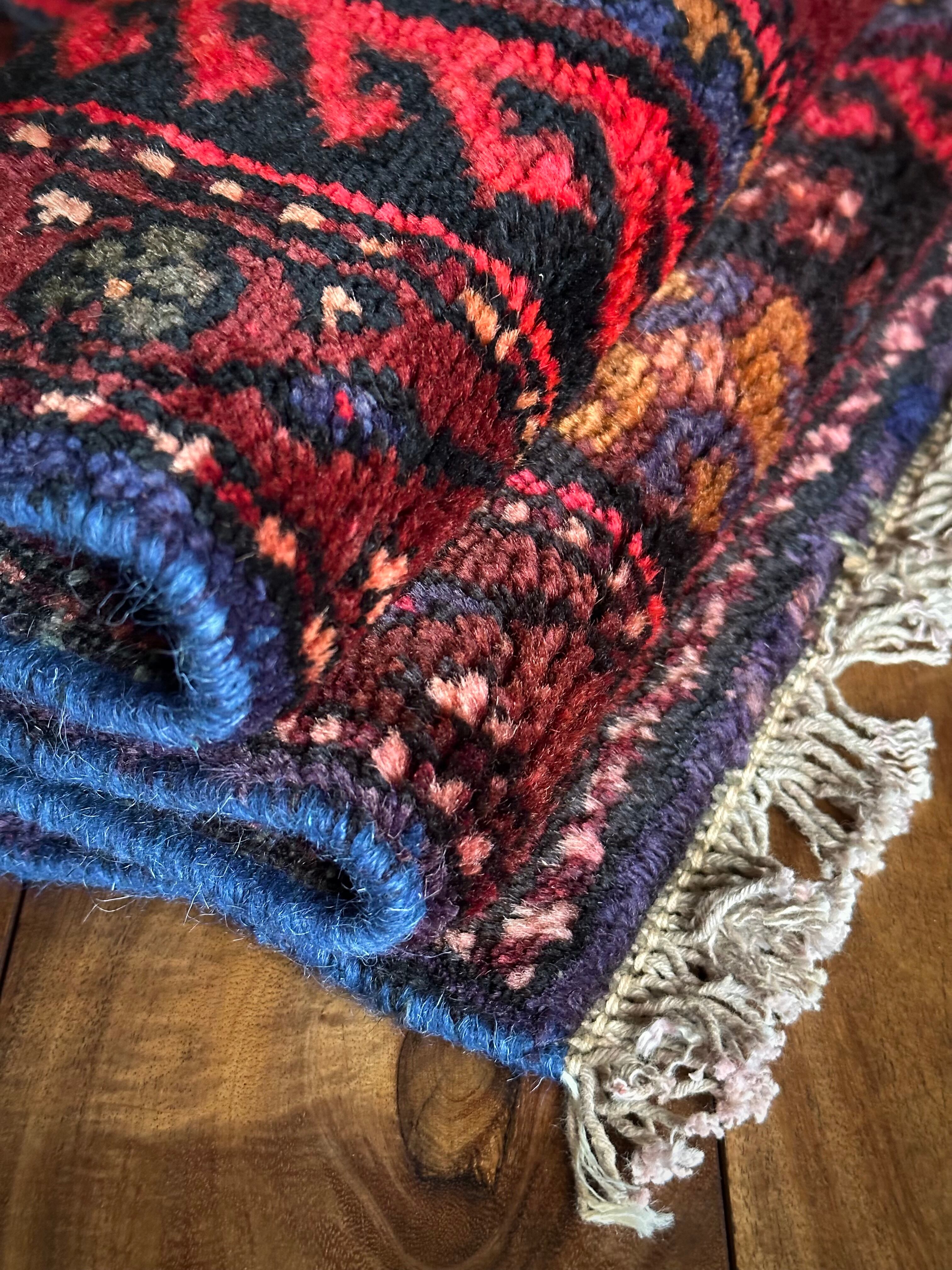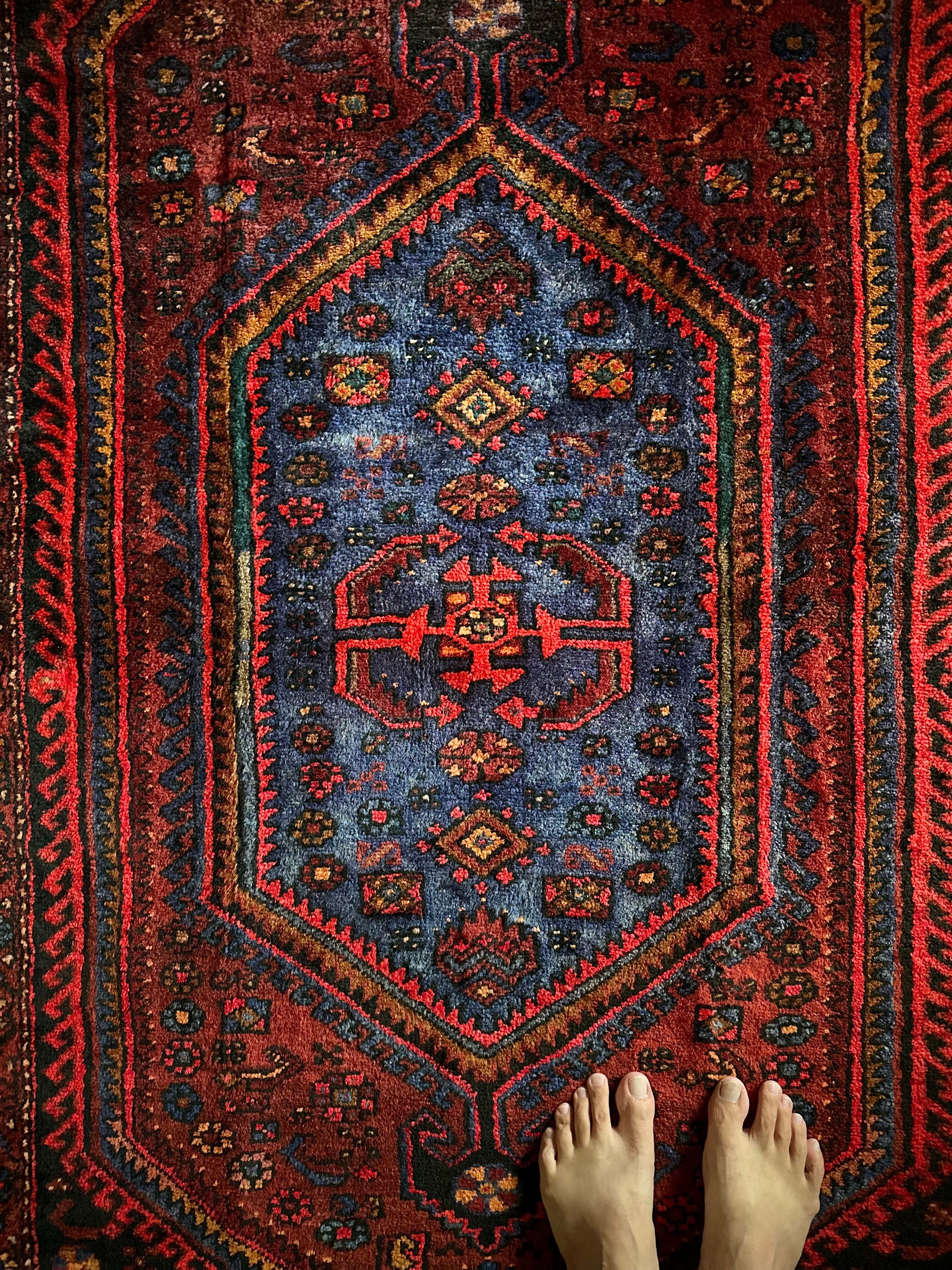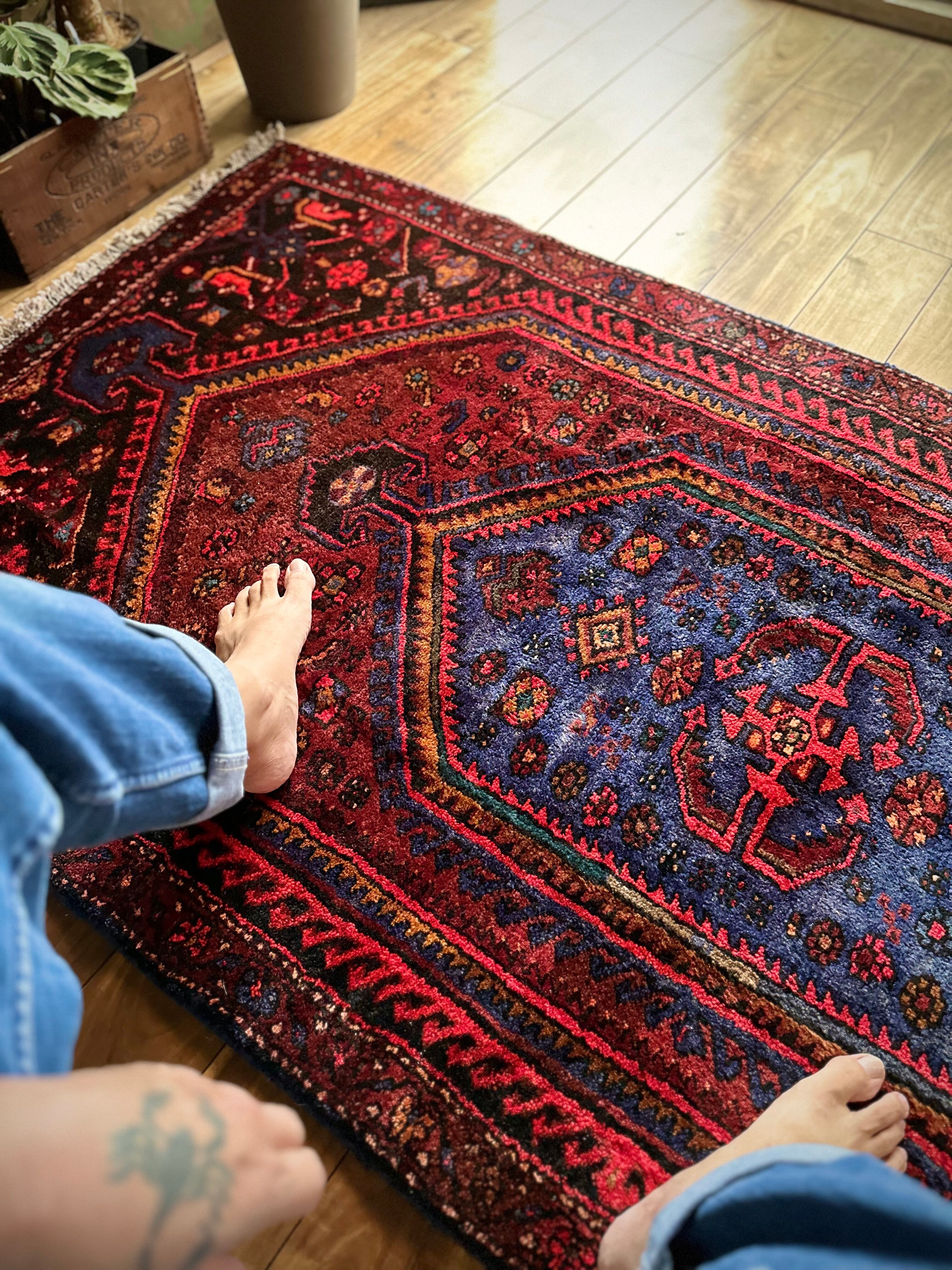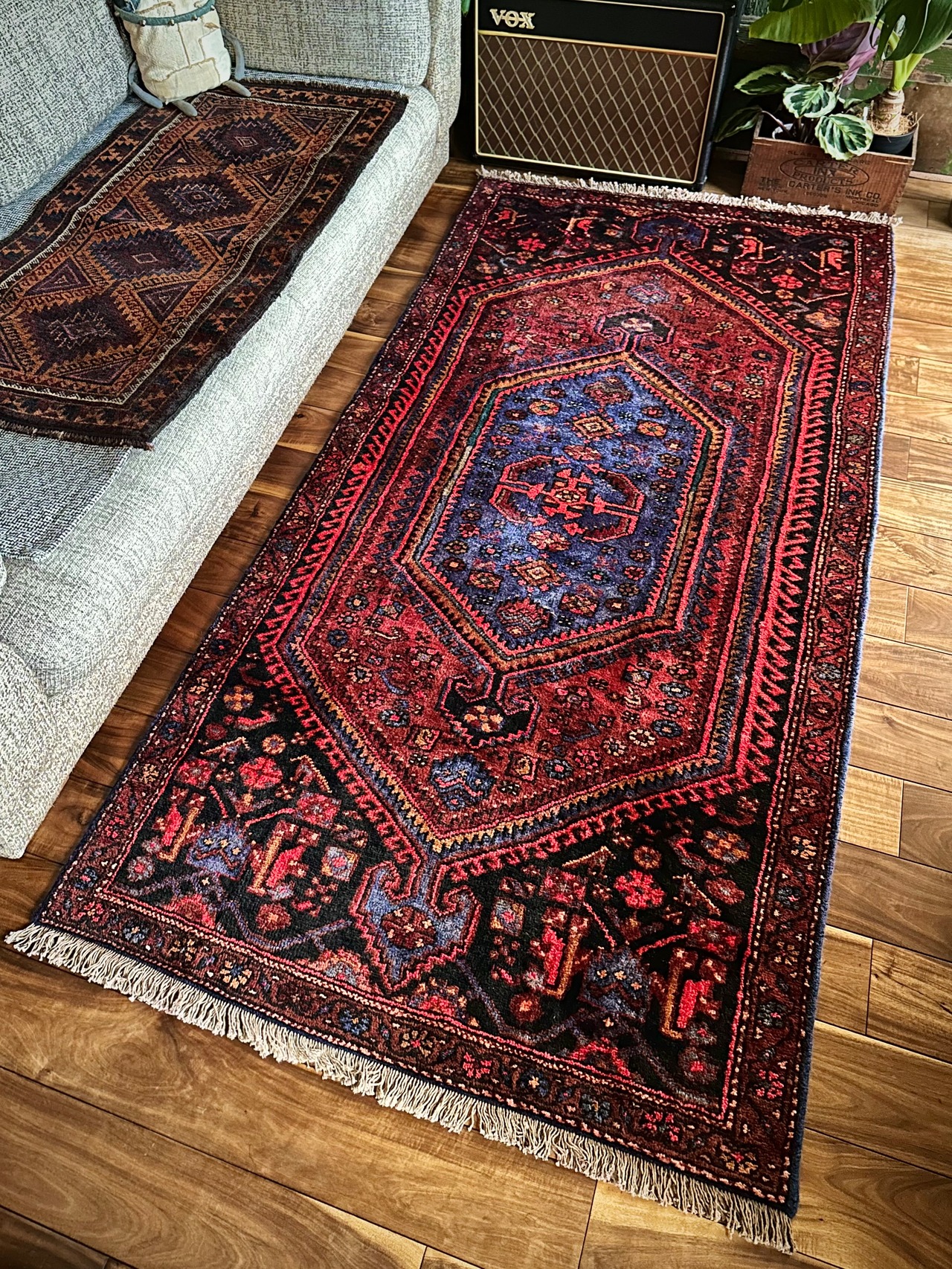 織りはハマダン産と同じくガシッとしたシングル・ウェフトで、10ミリという分厚さに密度がありパイル自体もフサフサした1枚となり、大きさに的には三人掛けソファ前やベッドサイドに適したサイズ感になります。