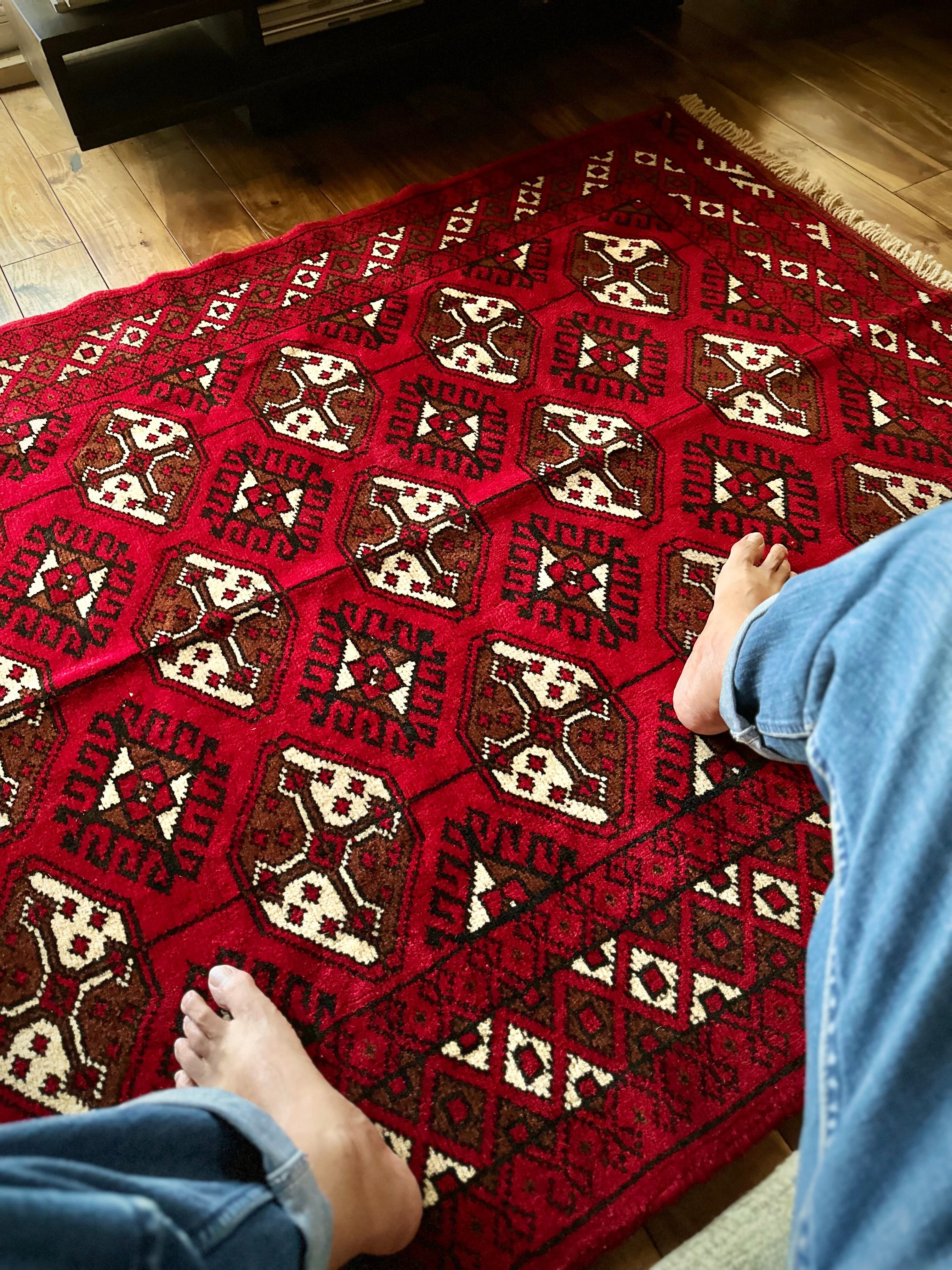 最後にラグそのものに関しては羊毛特有の匂いがあり、採寸は中央付近で計測していますが、手織りならではの歪みによる誤差や水洗いクリーニングによる縮み、また草木染めによる経年劣化の色ムラなどがありますが、それもまたヴィンテージラグの魅力かとご理解ください。