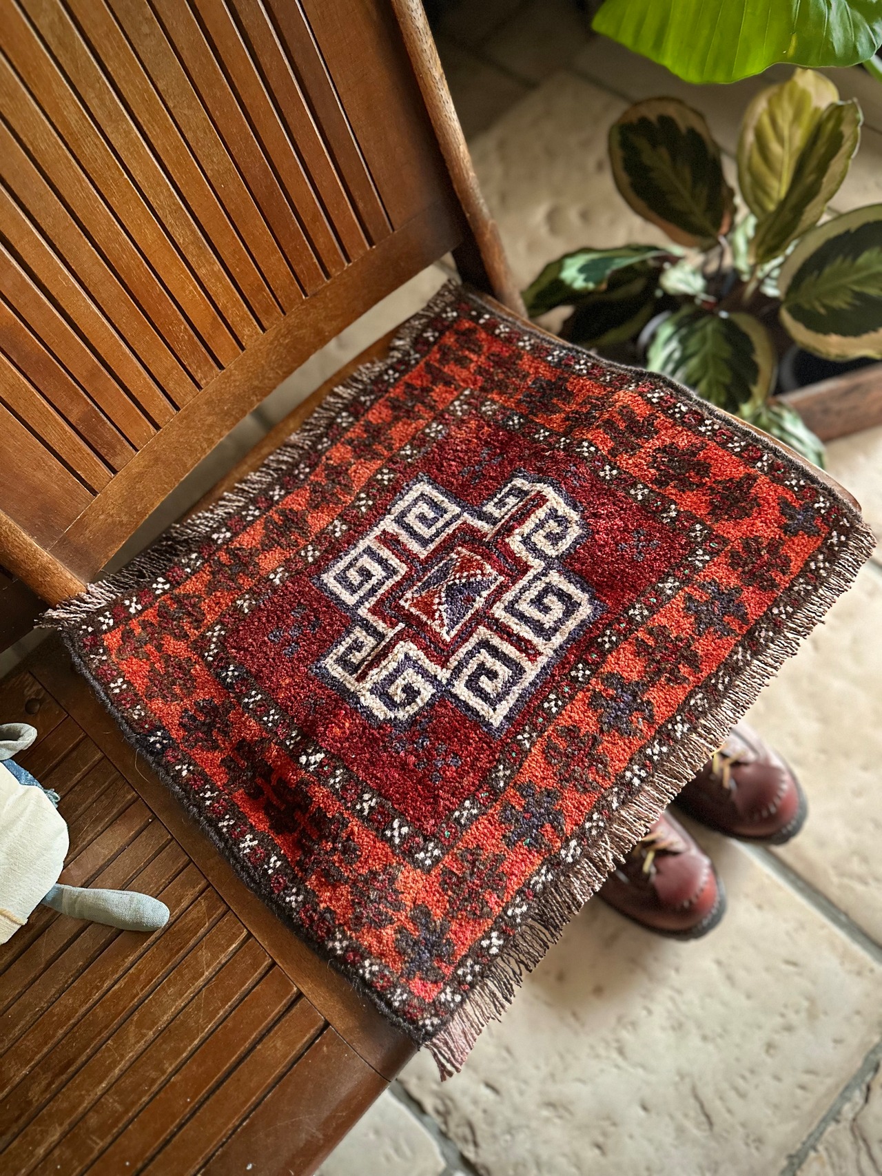 見た目にも使い勝手の良さそうなミニラグ仕立てで、ちょっとした足下はもちろんソファの座面やテーブルなんかにも多用出来るテキスタイルでしょうか。ここ最近では植物の鉢置き敷きとしてもより良い雰囲気が楽しめる1枚になります。