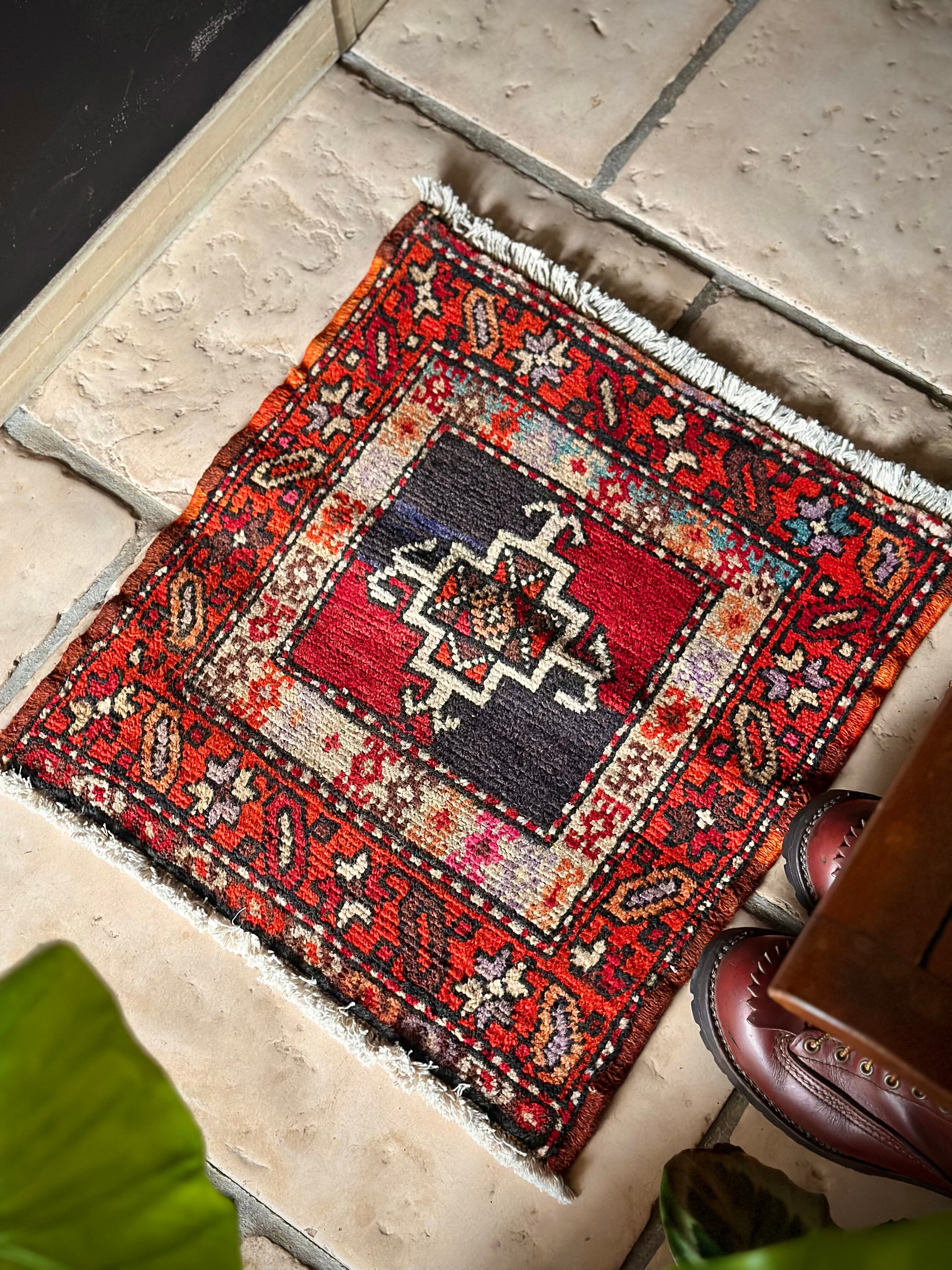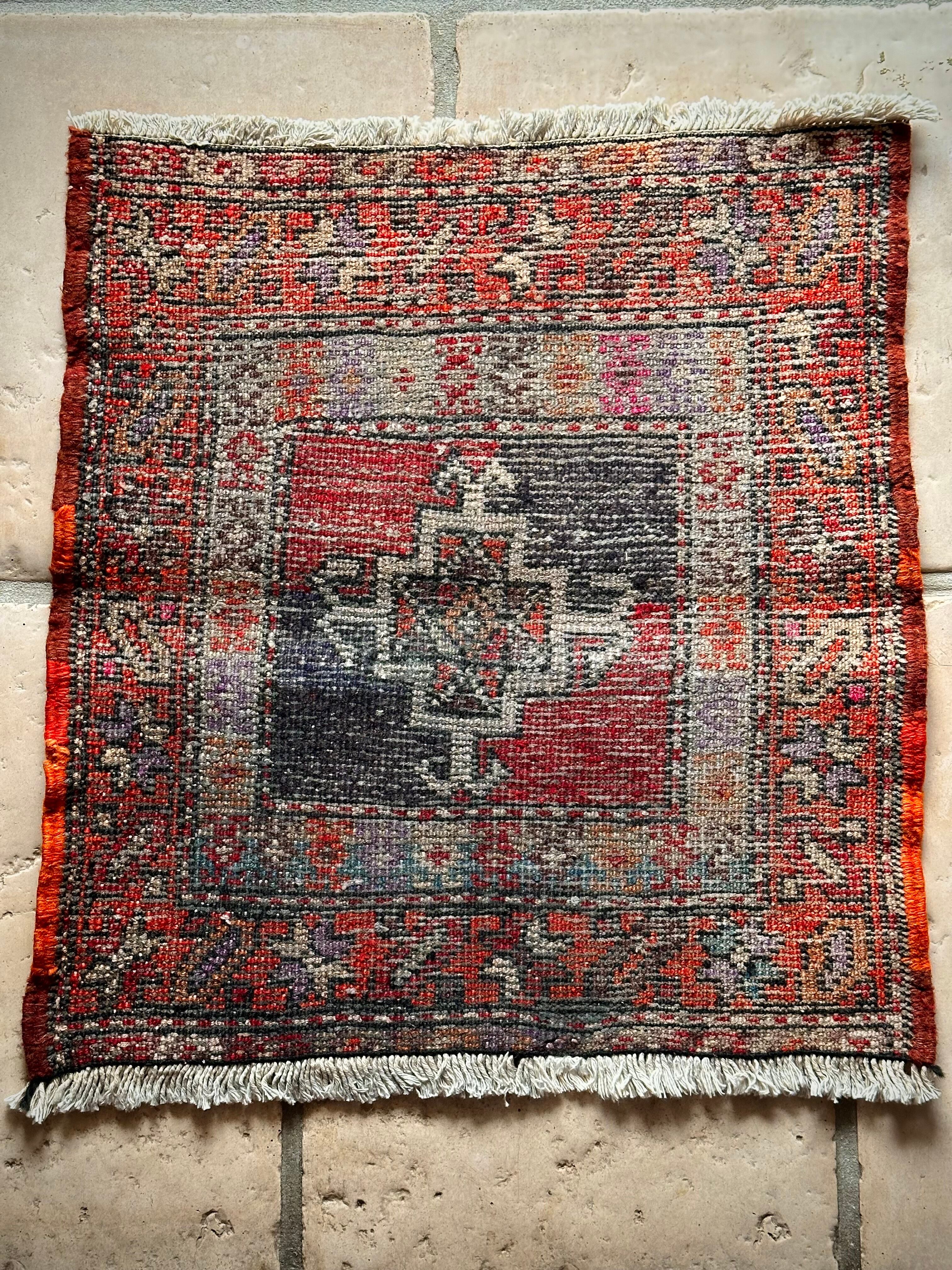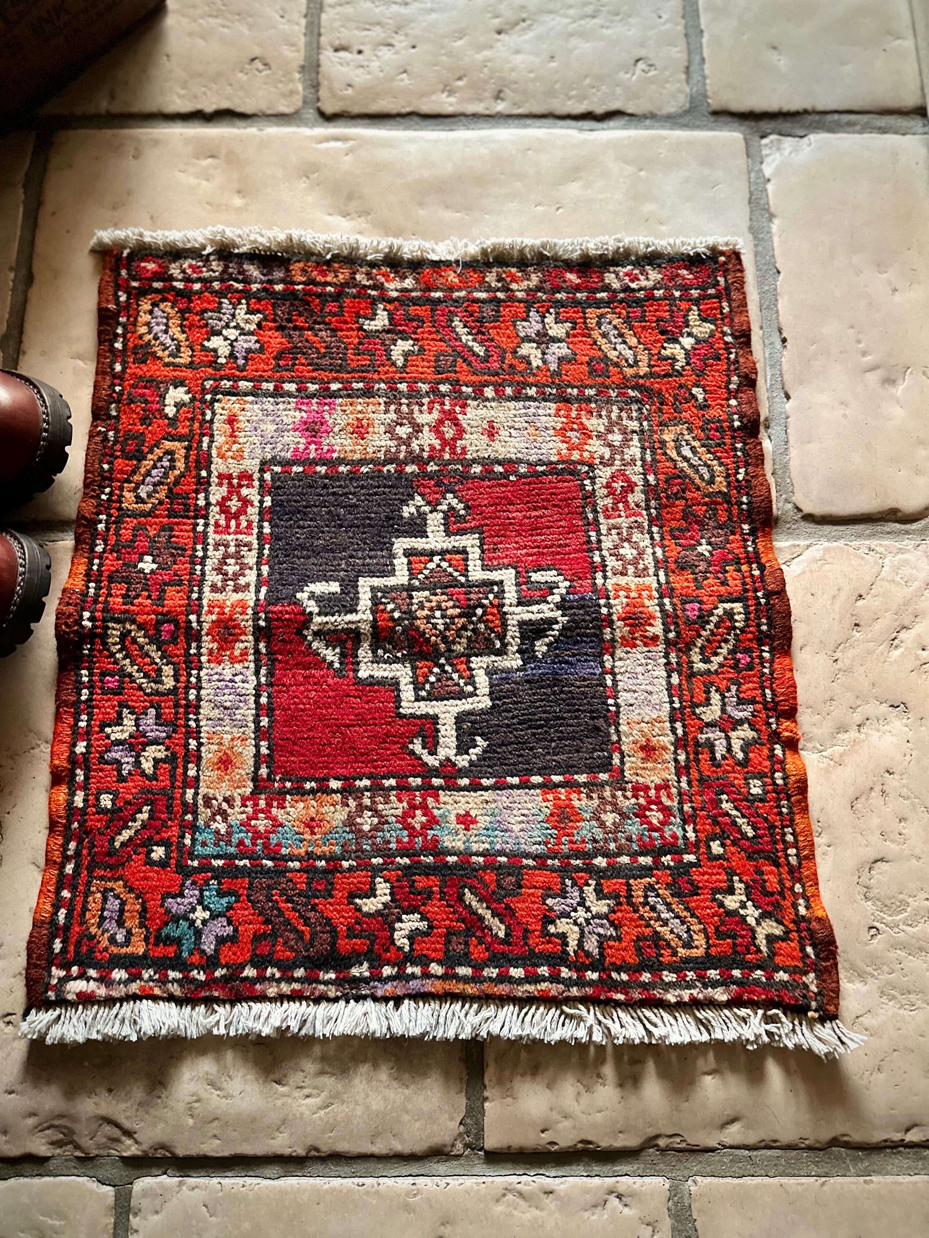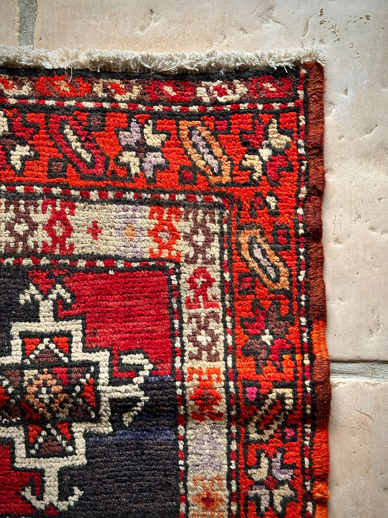 トルコからイラン北西部に跨る山岳地帯に古くから先住民族として遊牧するクルド族からのトライバルラグで、元々はホルジンと呼ばれるラクダやロバの背に跨がせるサドルバッグの表皮をラグに仕立て直したモノになり、本来なら2対セットの内の片側だけになります。