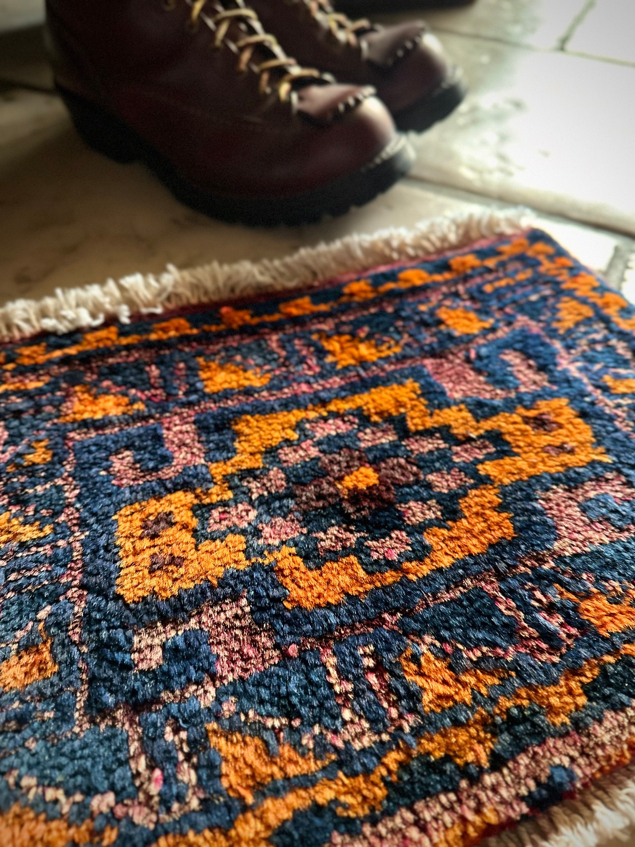 最後にラグそのものに関しては羊毛特有の匂いがあり、採寸は中央付近で計測していますが、手織りならではの歪みによる誤差や水洗いクリーニングによる縮み、また草木染めによる経年劣化の色ムラなどがありますが、それもまたヴィンテージラグの魅力かとご理解ください。