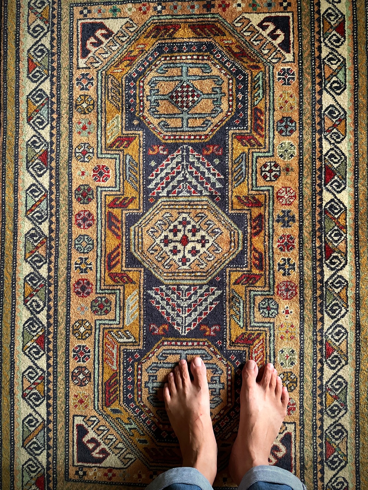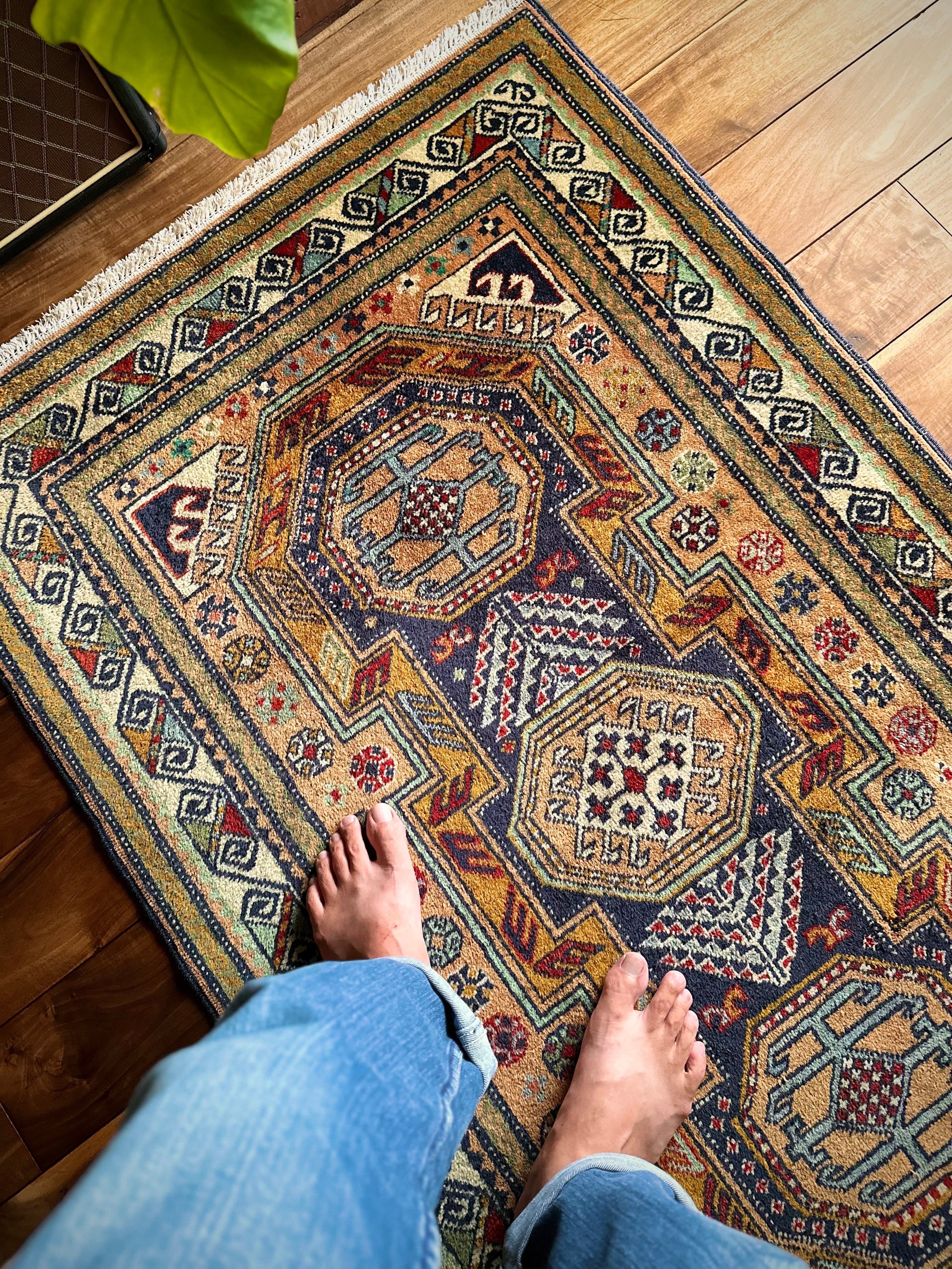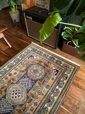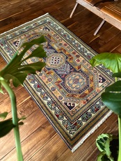 最後にラグそのものに関しては羊毛特有の匂いがあり、採寸は中央付近で計測していますが、手織りならではの歪みによる誤差や水洗いクリーニングによる縮み、また草木染めによる経年劣化の色ムラなどがありますが、それもまたヴィンテージラグの魅力かとご理解ください。
