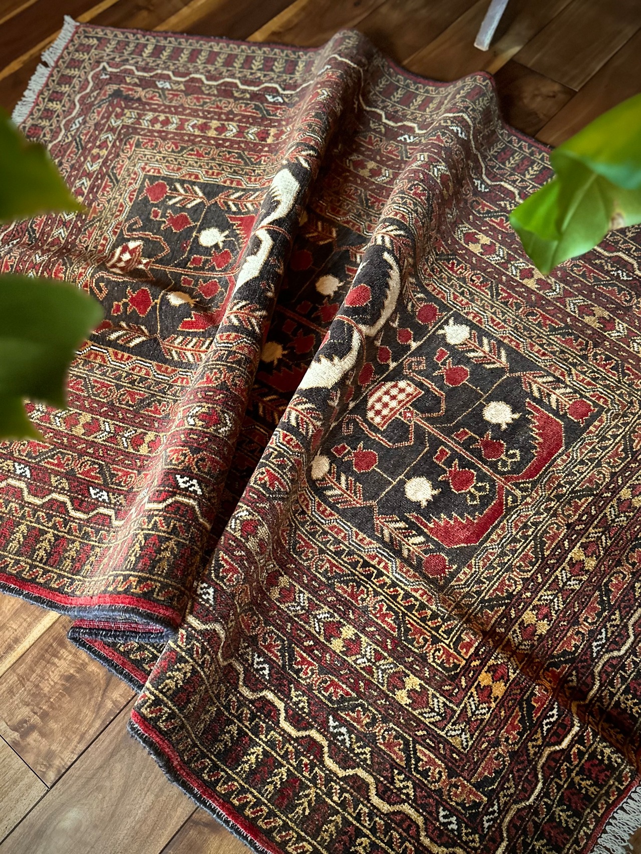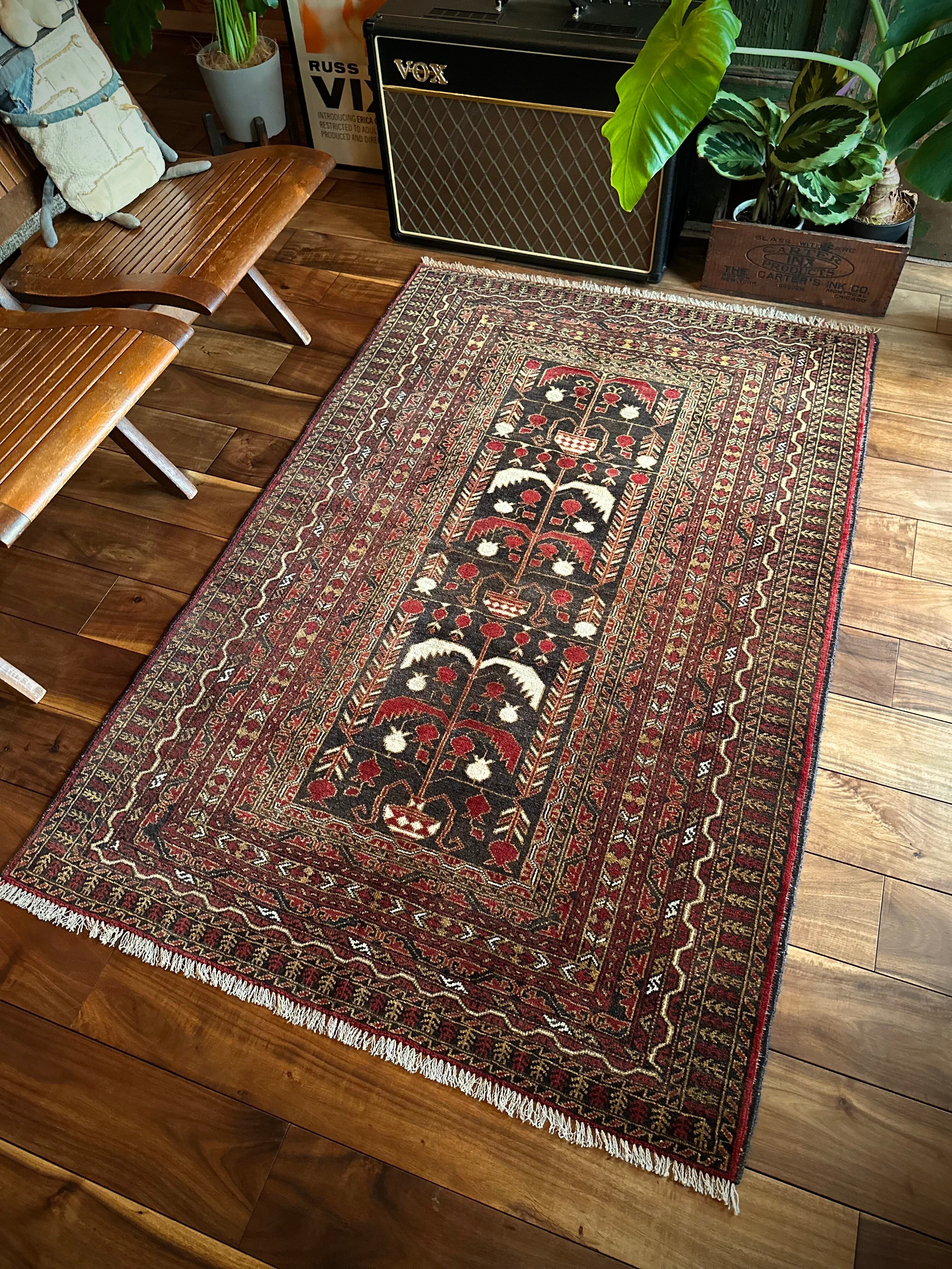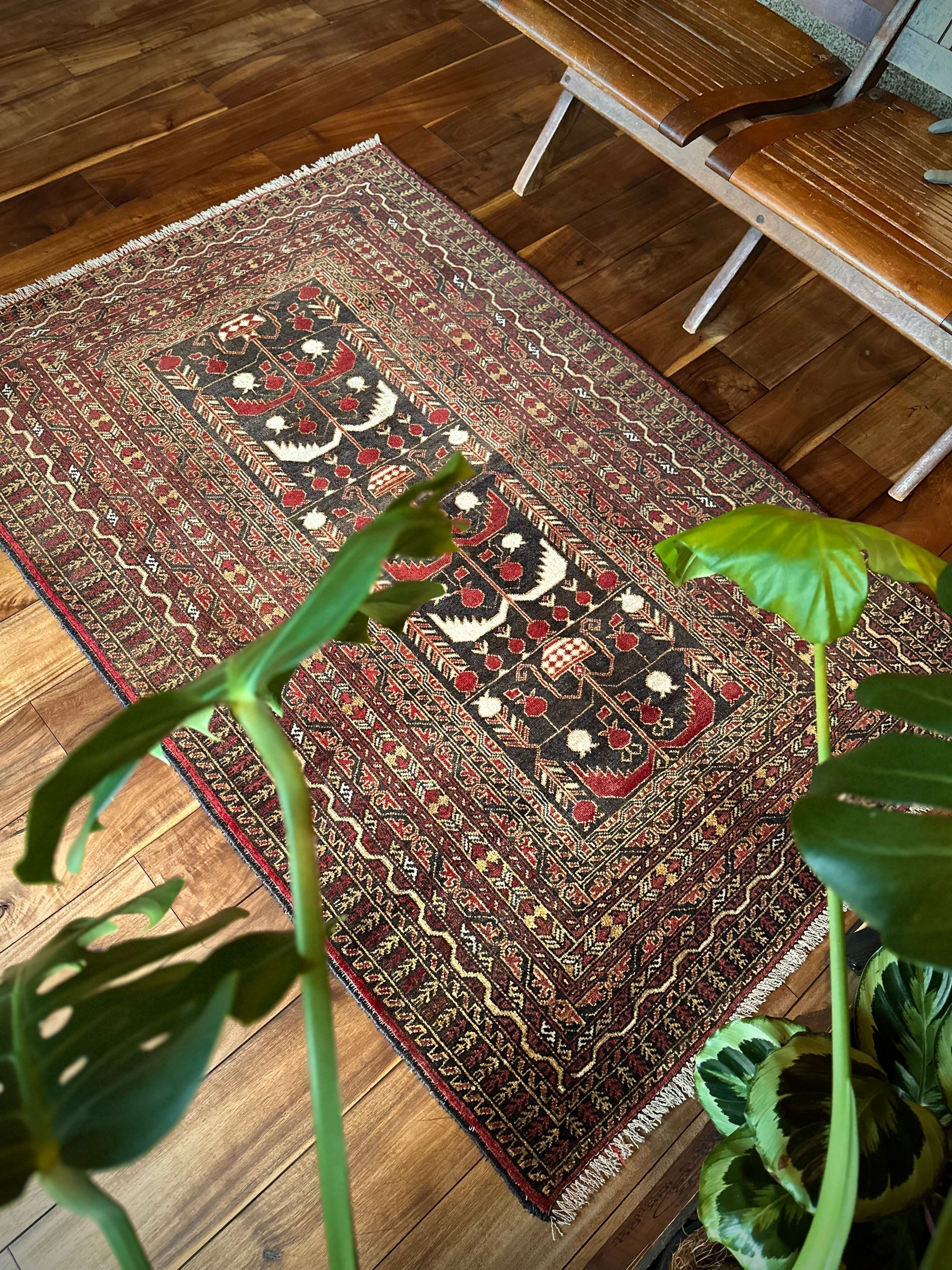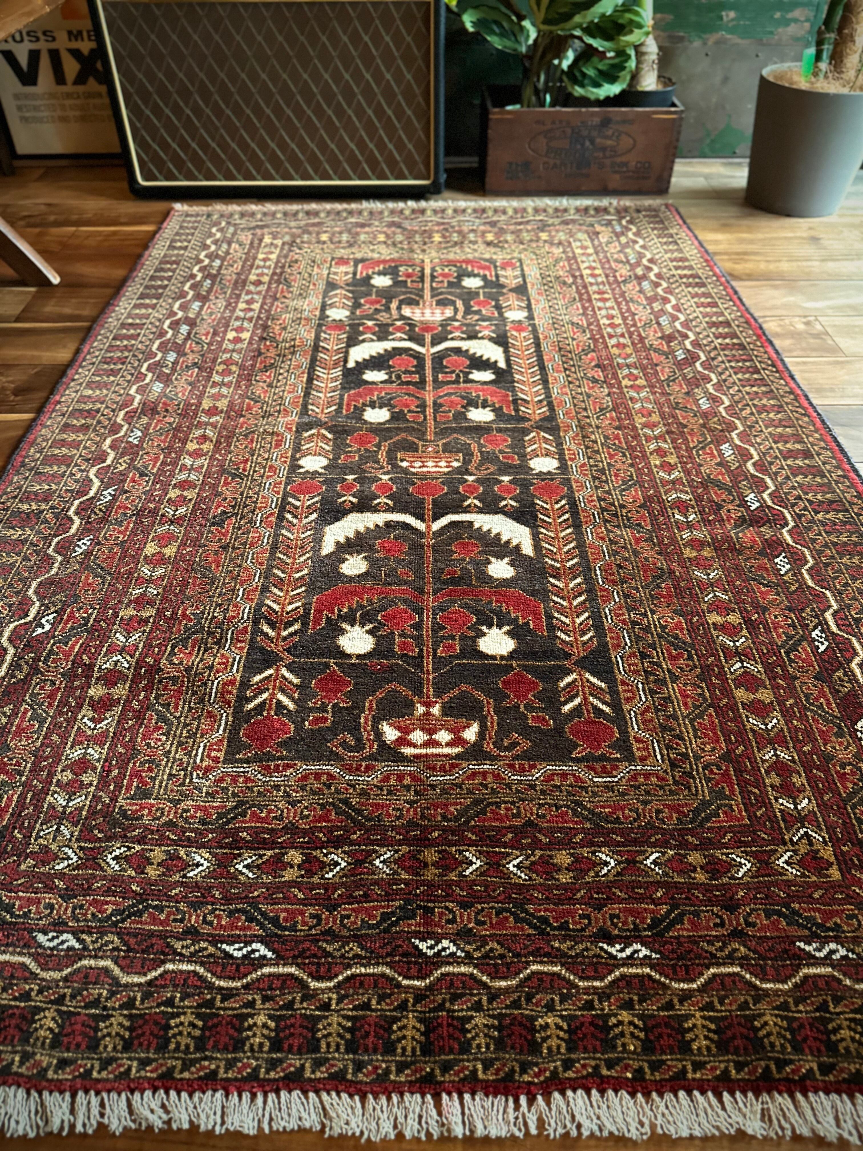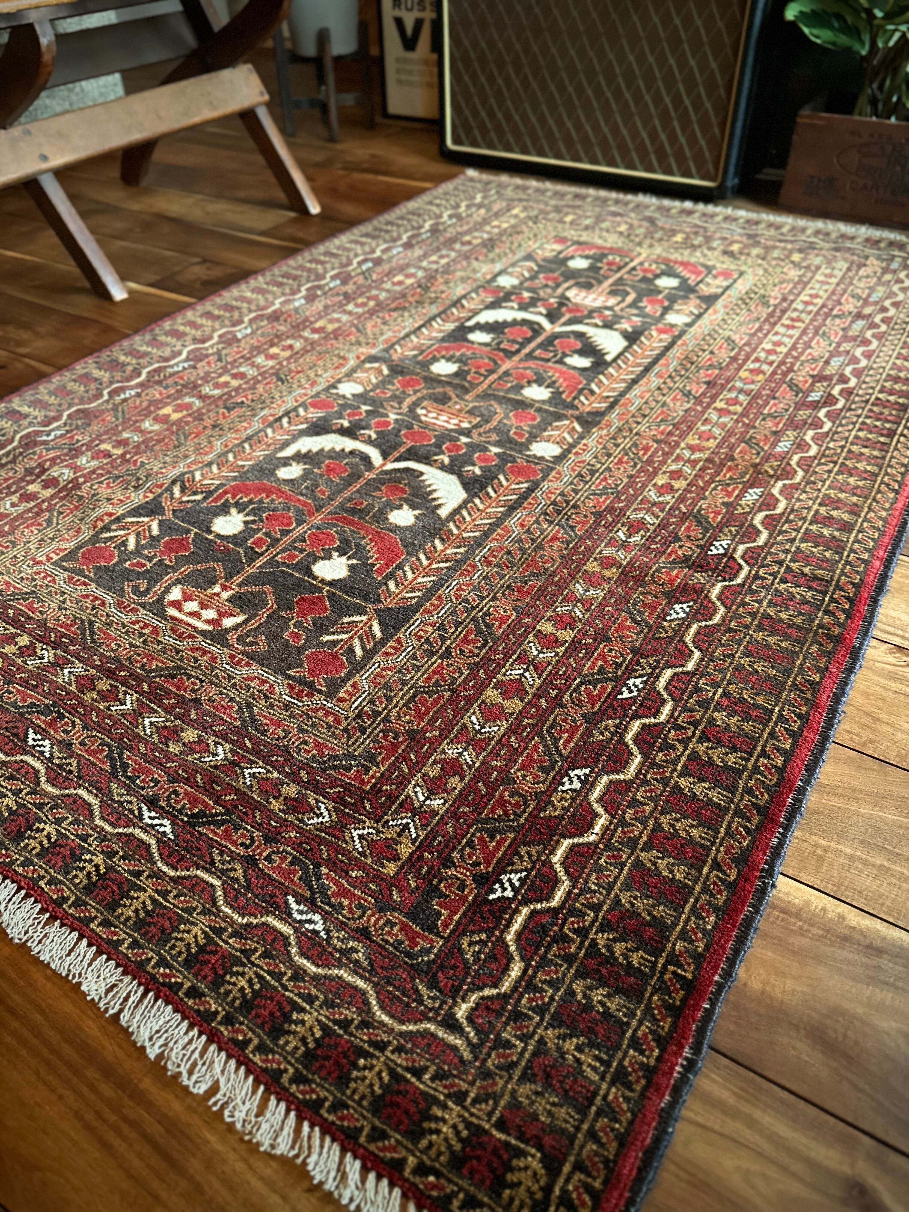 なんとも細やかな模様が特徴的なこちらは、アフガニスタンとトルクメニスタンの国境付近にあるチットチャックトゥ村で織られた1枚で、アフガニスタンに多く住むイラン系民族パシュトゥーン人の工房で手織りされたヴィレッジラグになります。