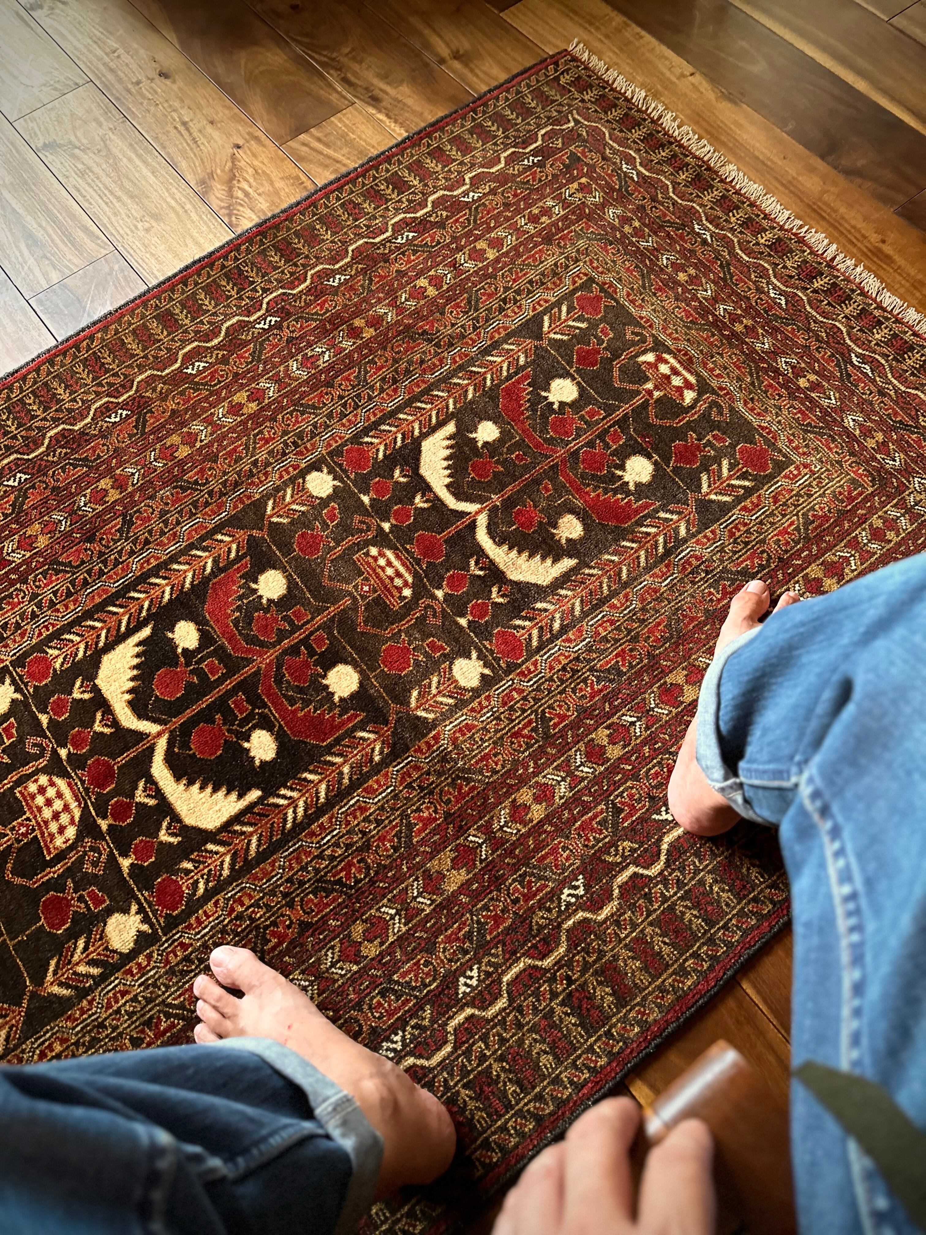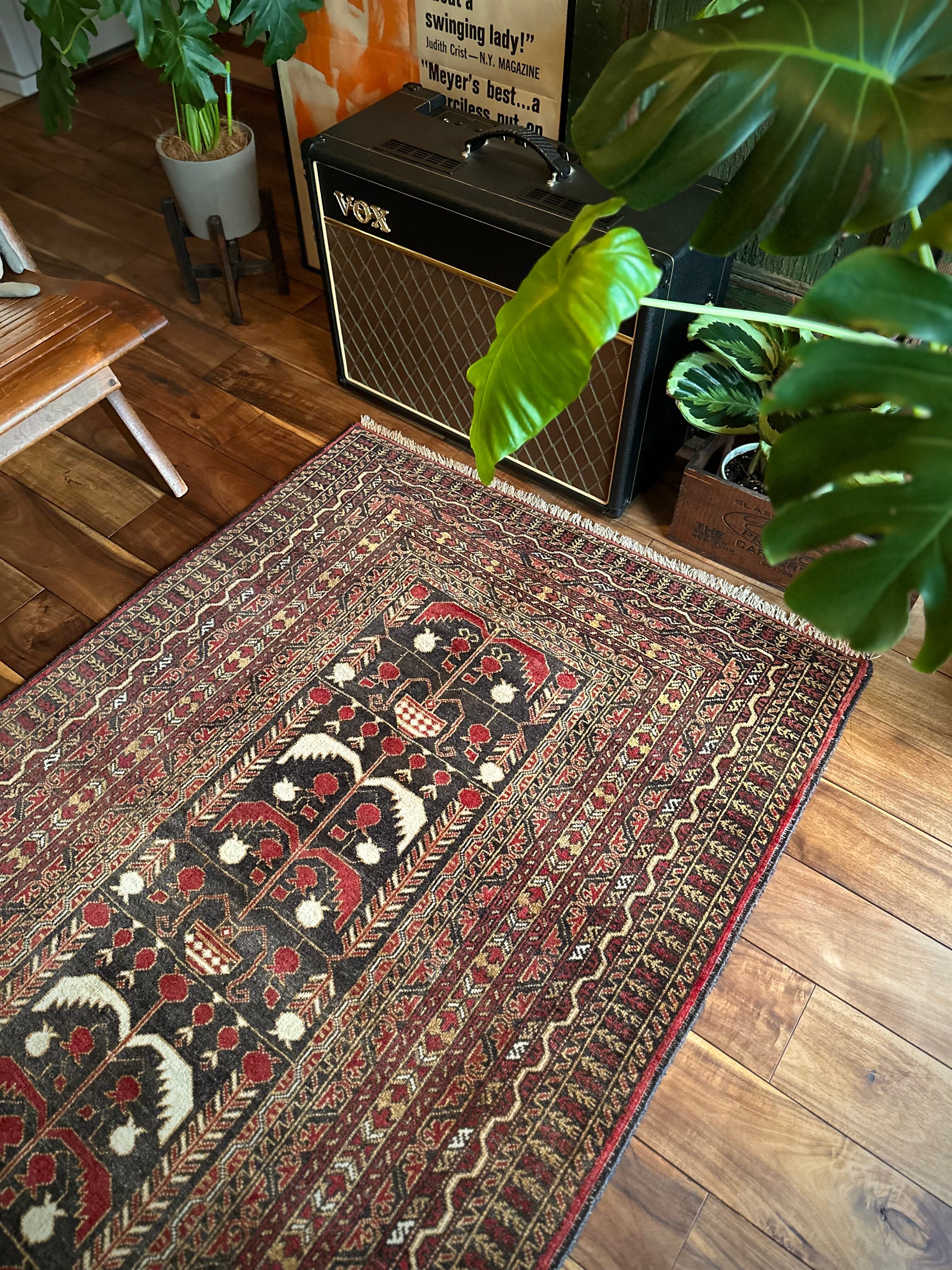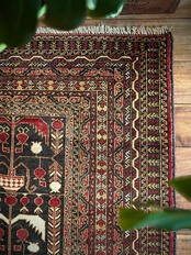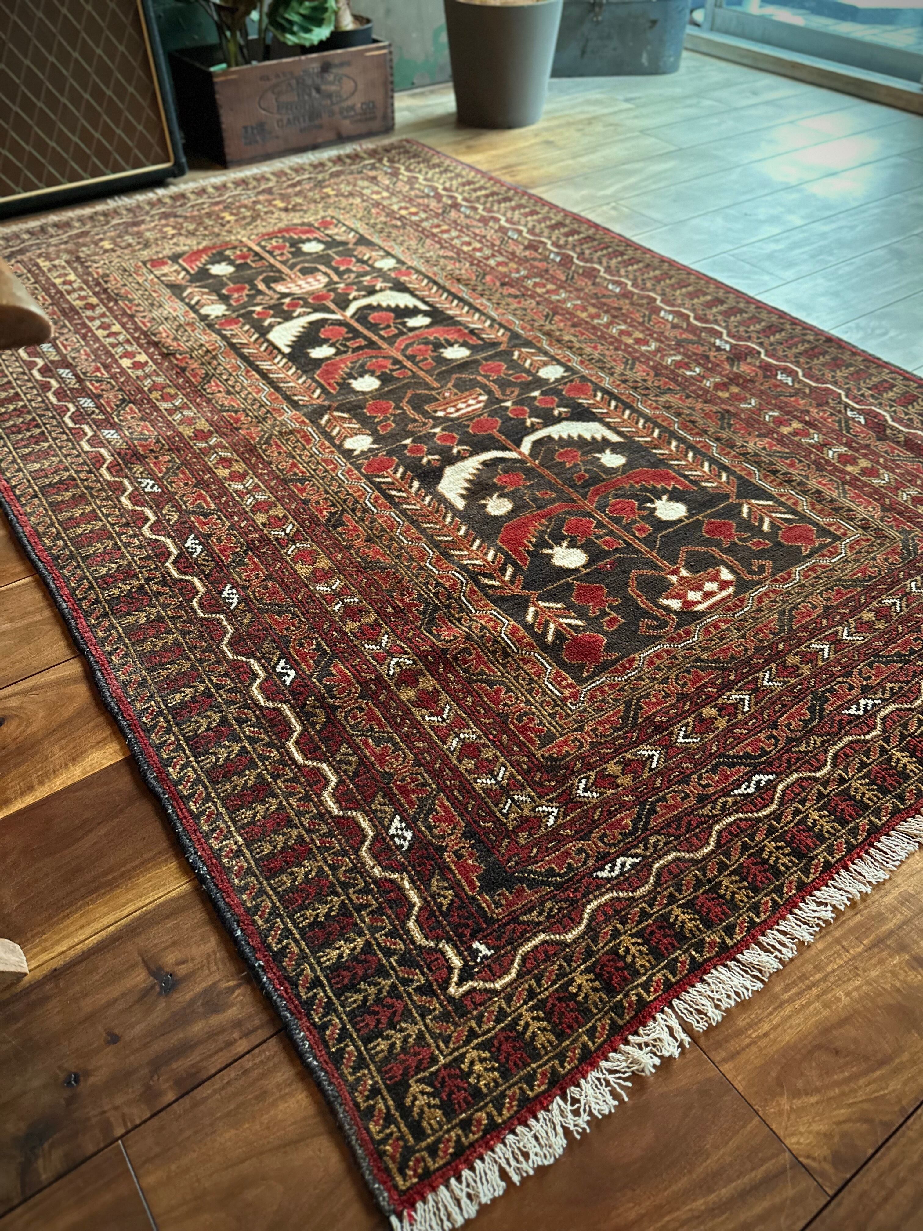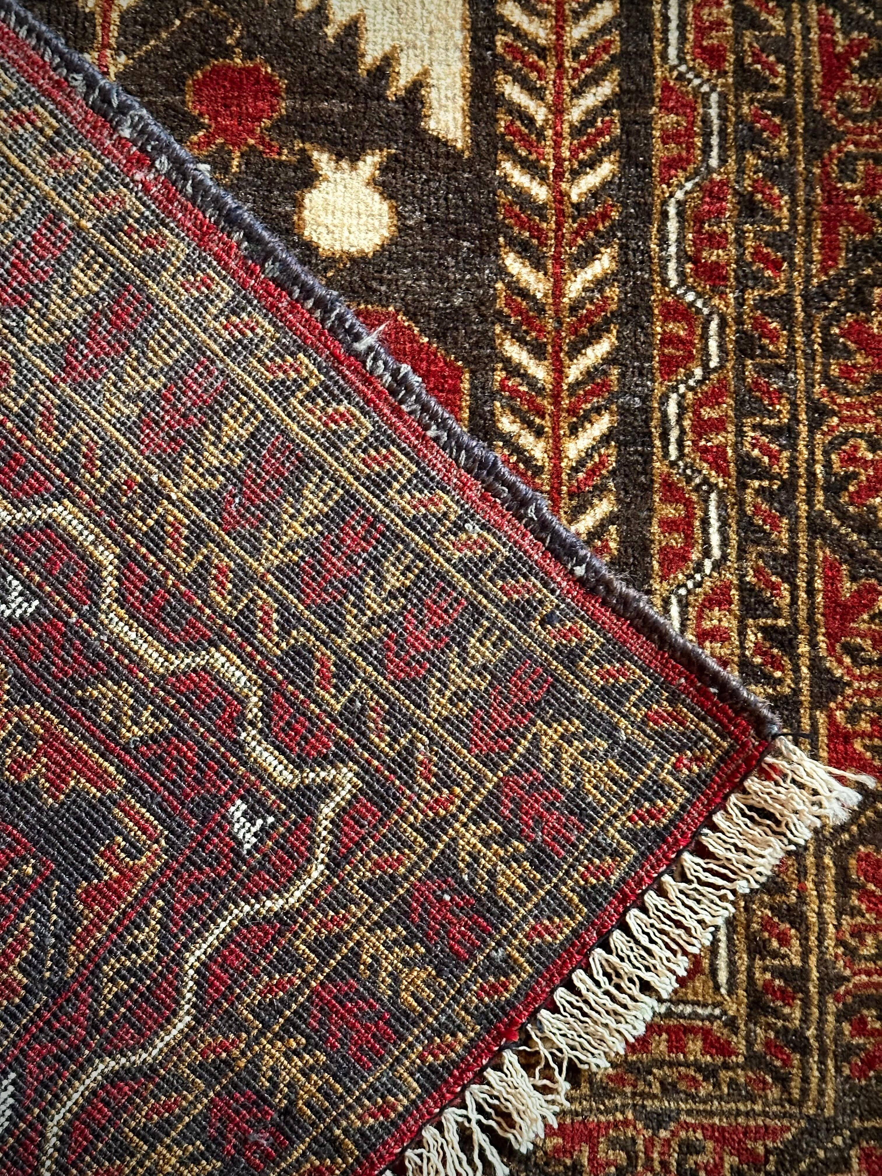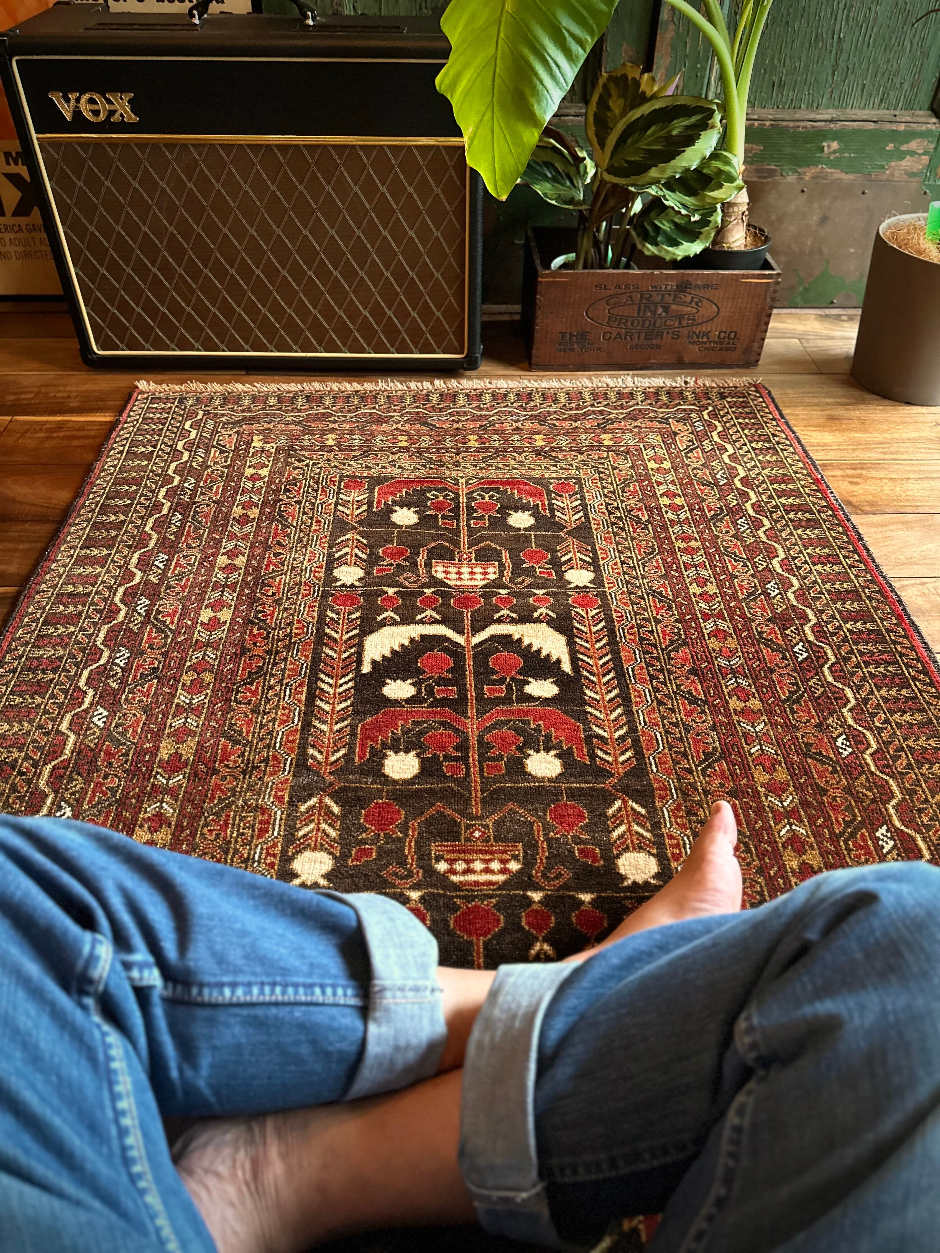 なんとも細やかな模様が特徴的なこちらは、アフガニスタンとトルクメニスタンの国境付近にあるチットチャックトゥ村で織られた1枚で、アフガニスタンに多く住むイラン系民族パシュトゥーン人の工房で手織りされたヴィレッジラグになります。