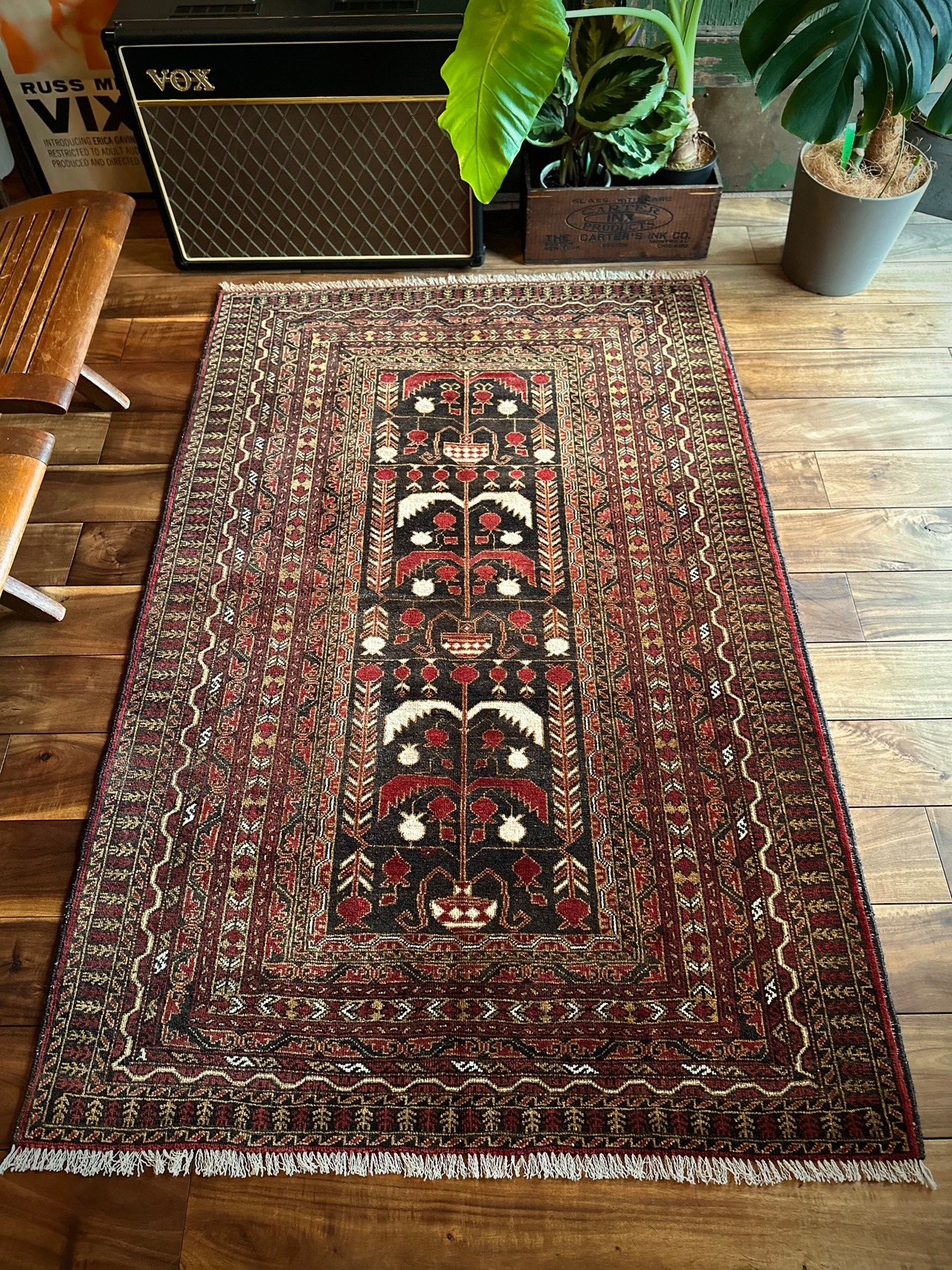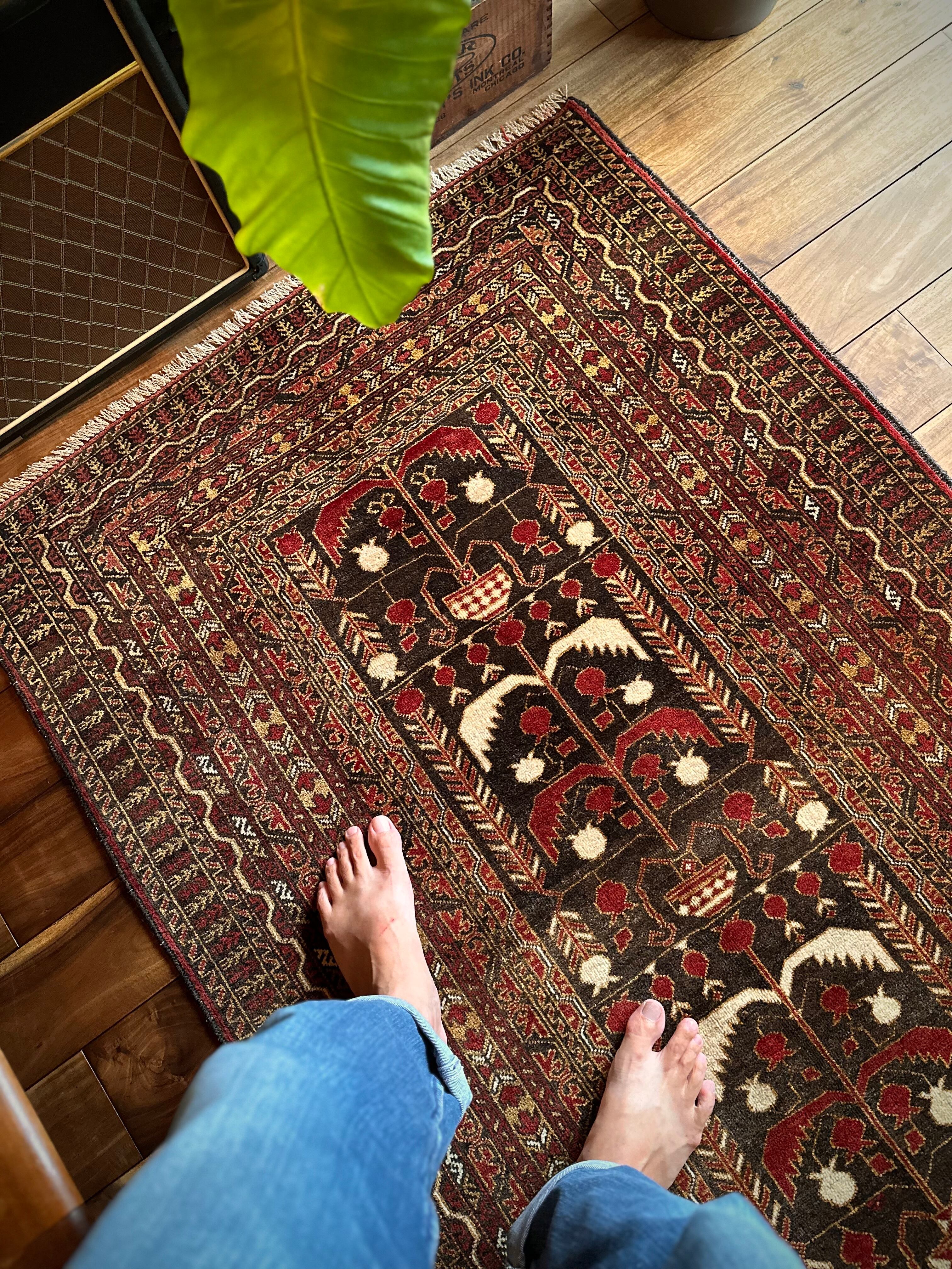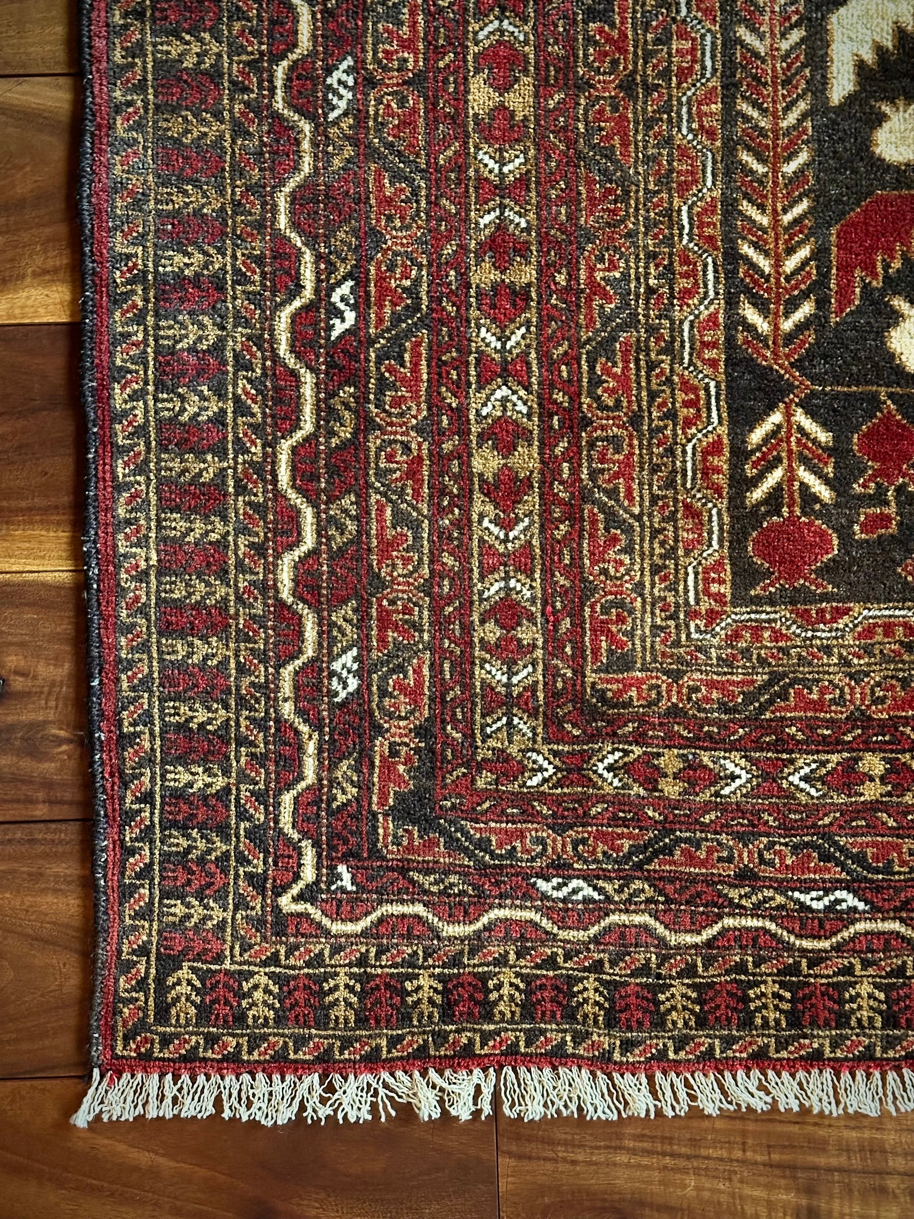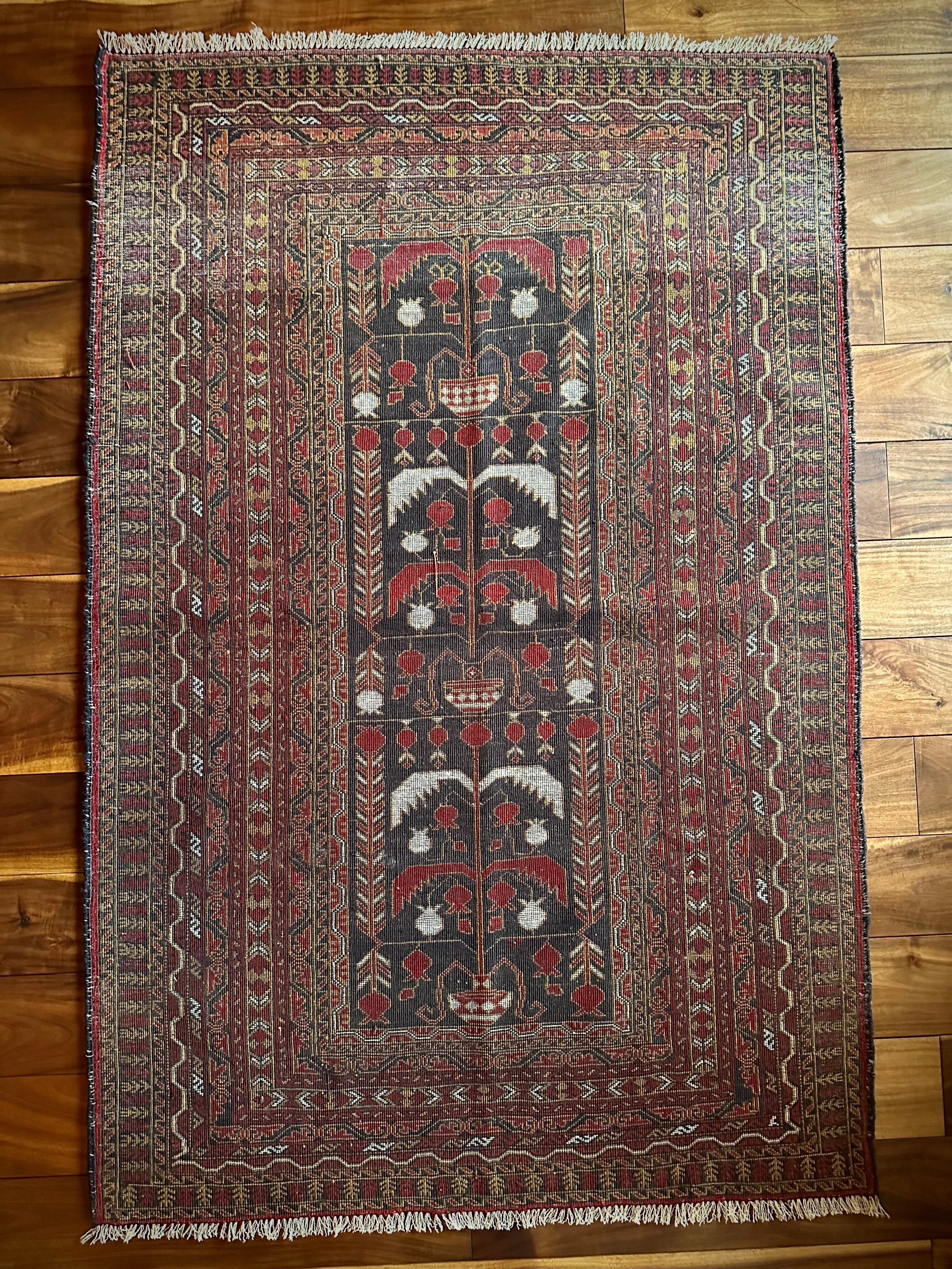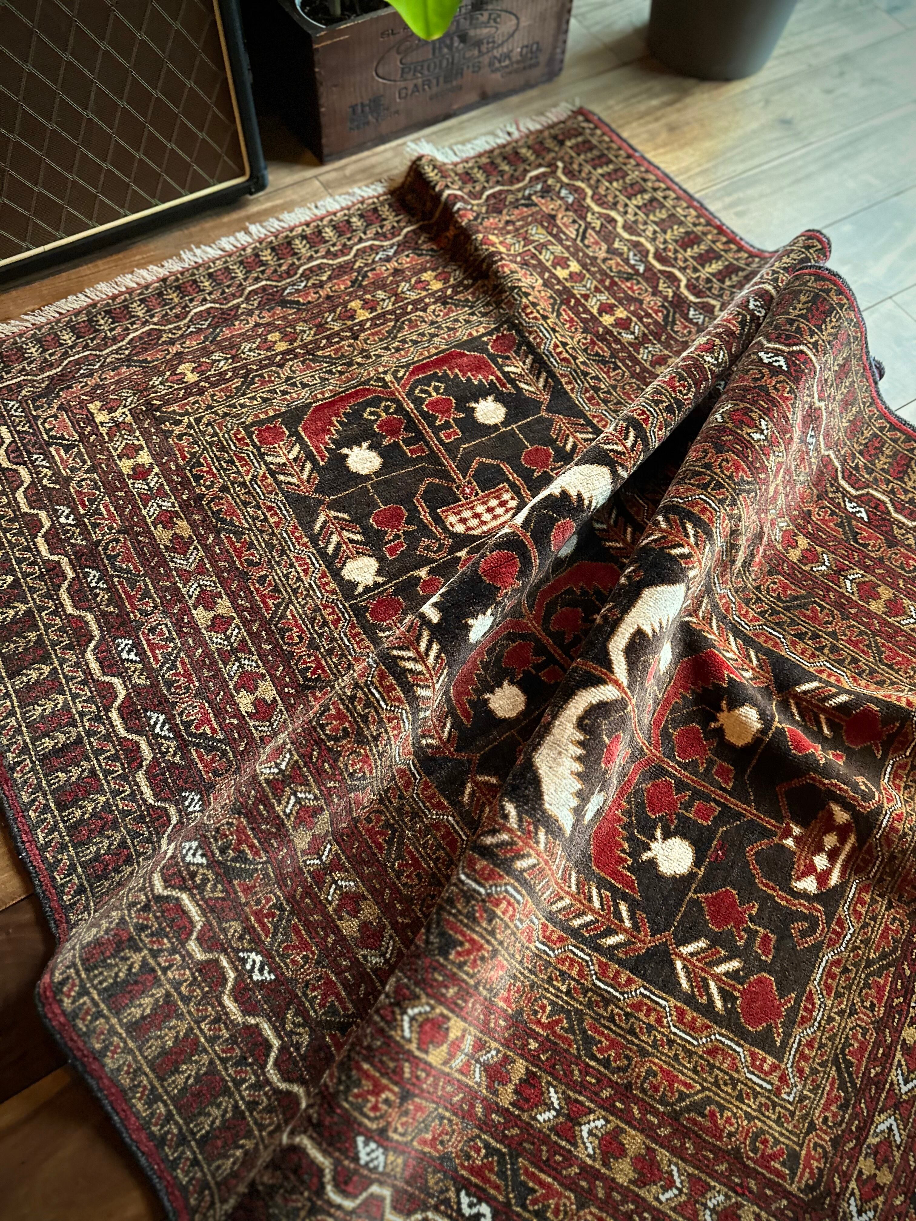 なんとも細やかな模様が特徴的なこちらは、アフガニスタンとトルクメニスタンの国境付近にあるチットチャックトゥ村で織られた1枚で、アフガニスタンに多く住むイラン系民族パシュトゥーン人の工房で手織りされたヴィレッジラグになります。