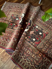 特に細かな織りを得意とするアリホジャラグですが、もちろんトルクメン族との関わりも深く、絵柄が似た構図も数多く存在してゴチャとした感じでしょうか。こちらもトルクメンを連想させる構図で、生地は薄手のサラッとした短めのパイルが特徴的です。