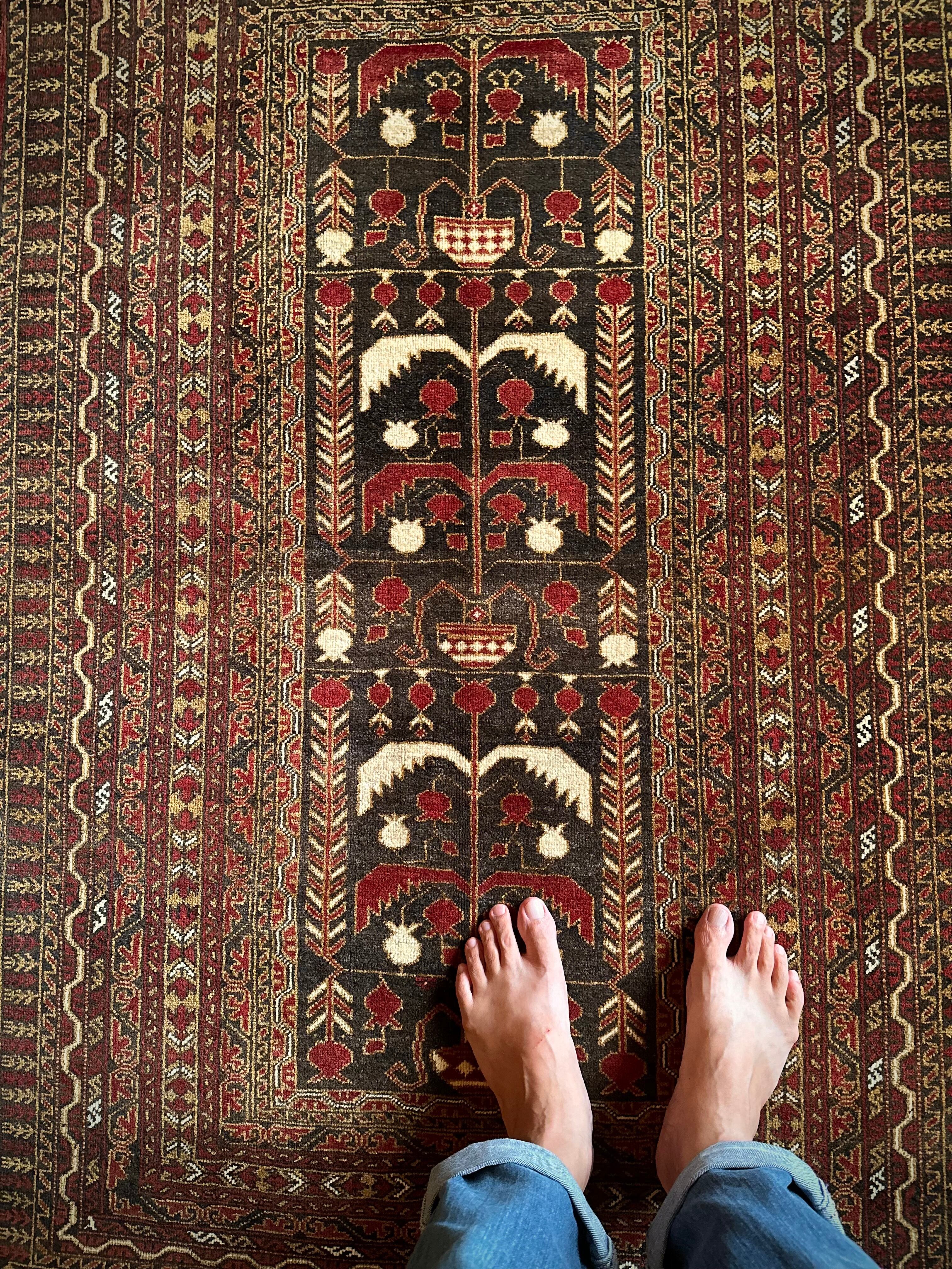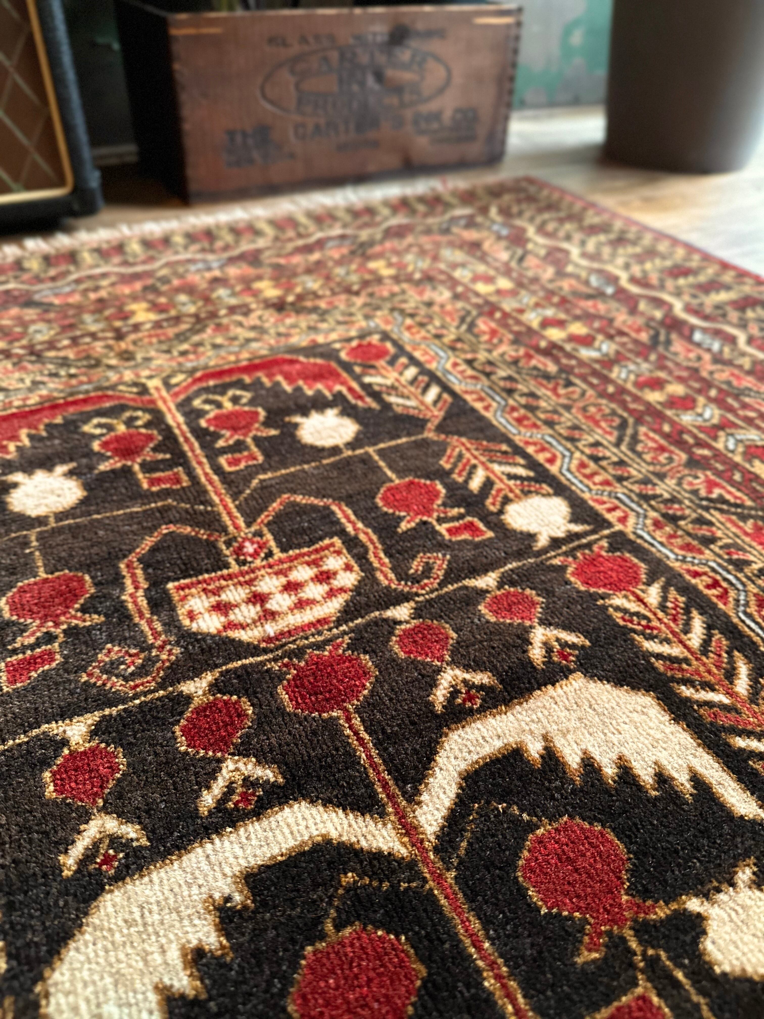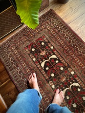 最後にラグそのものに関しては羊毛特有の匂いがあり、採寸は中央付近で計測していますが、手織りならではの歪みによる誤差や水洗いクリーニングによる縮み、また草木染めによる経年劣化の色ムラなどがありますが、それもまたヴィンテージラグの魅力かとご理解ください。