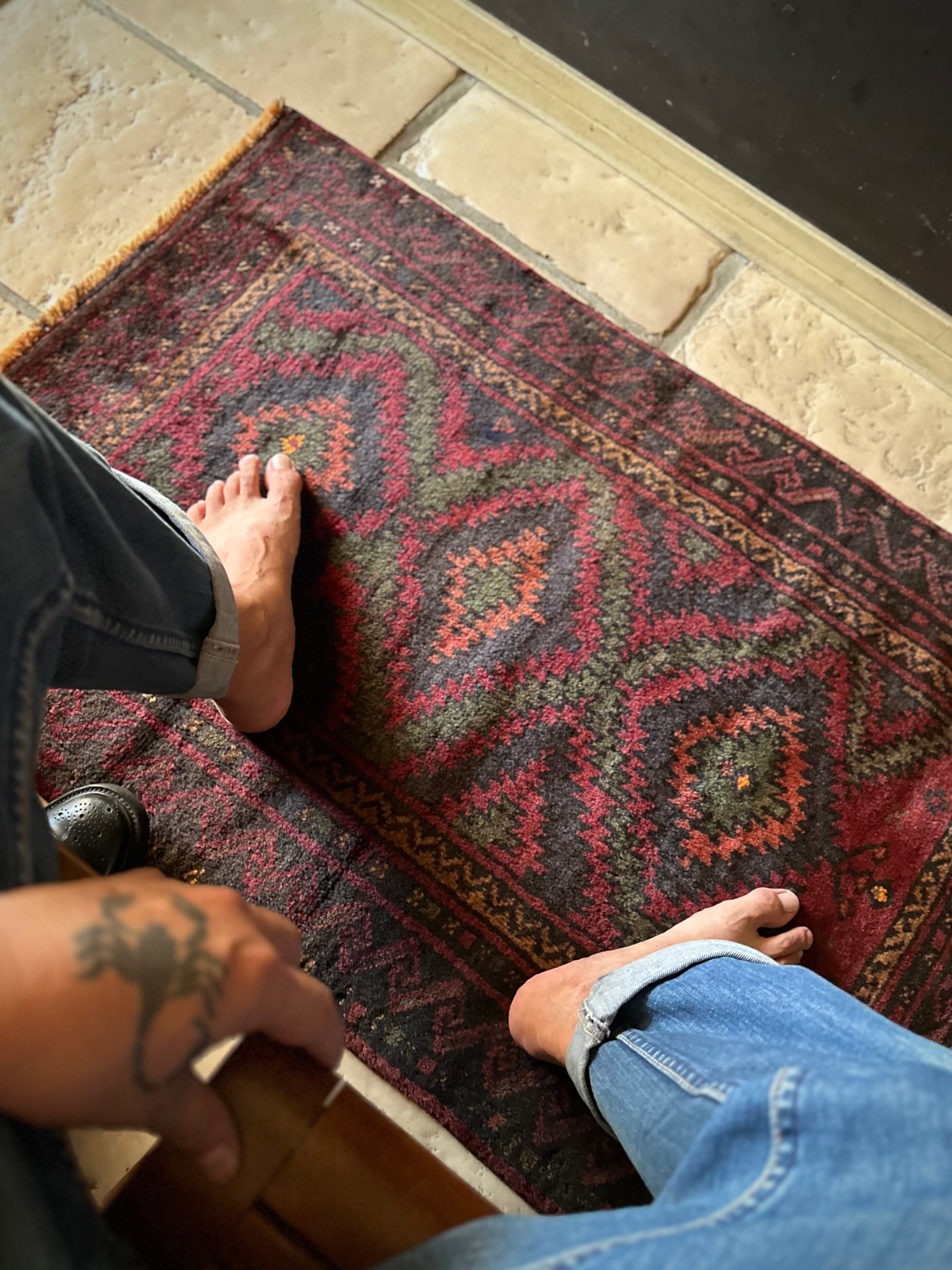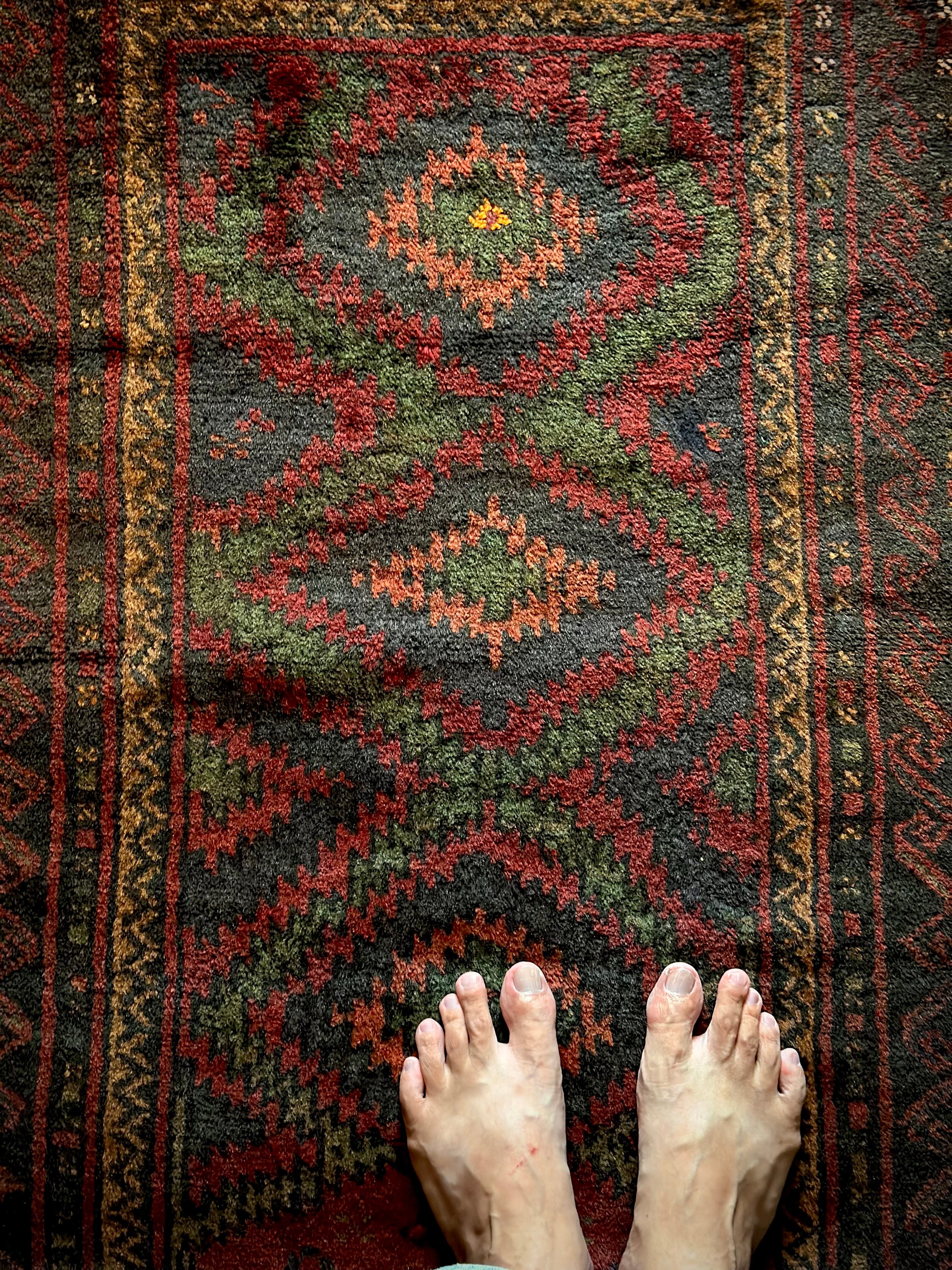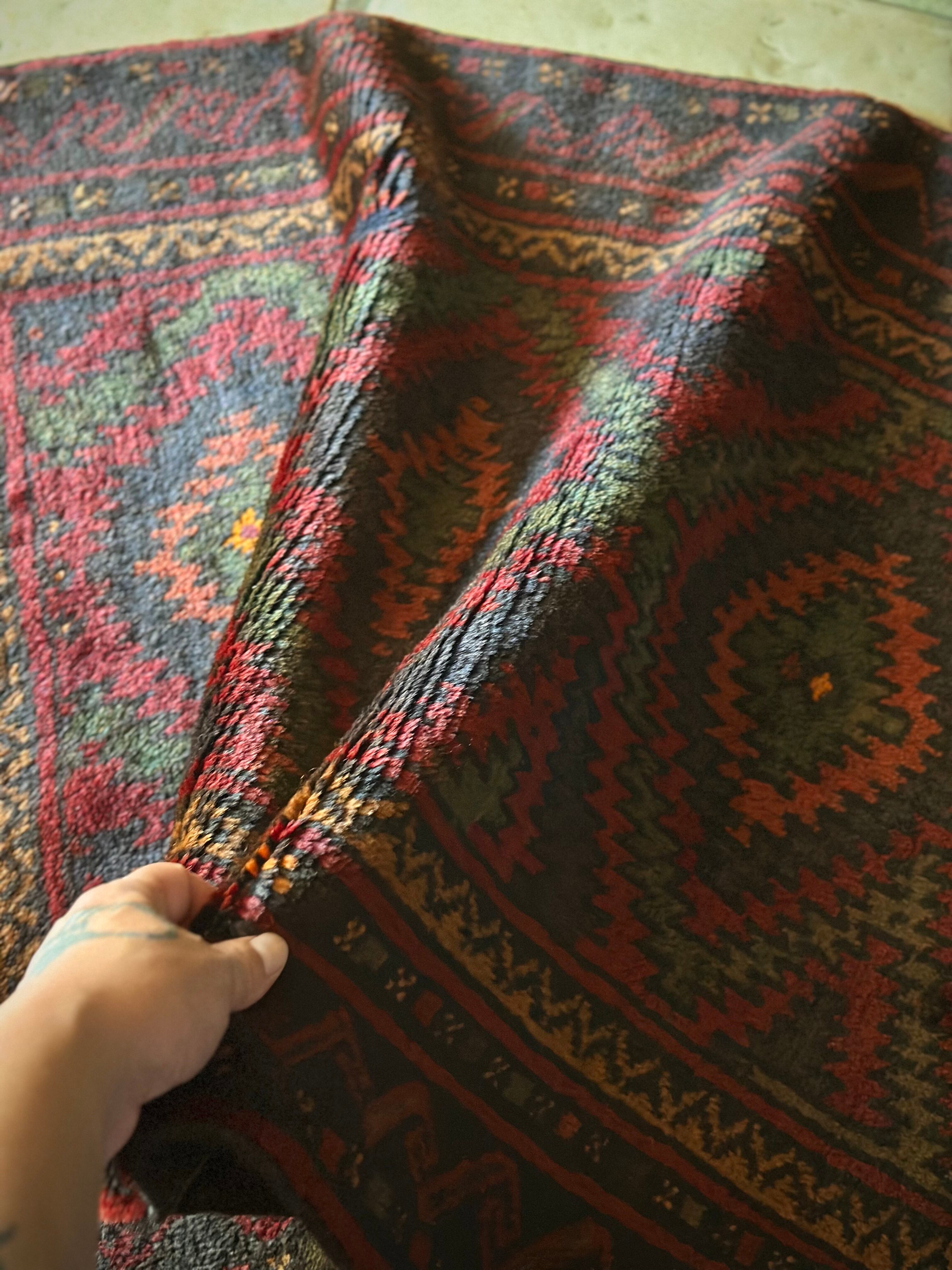 最後にラグそのものに関しては羊毛特有の匂いがあり、採寸は中央付近で計測していますが、手織りならではの歪みによる誤差や水洗いクリーニングによる縮み、また草木染めによる経年劣化の色ムラなどがありますが、それもまたヴィンテージラグの魅力かとご理解ください。