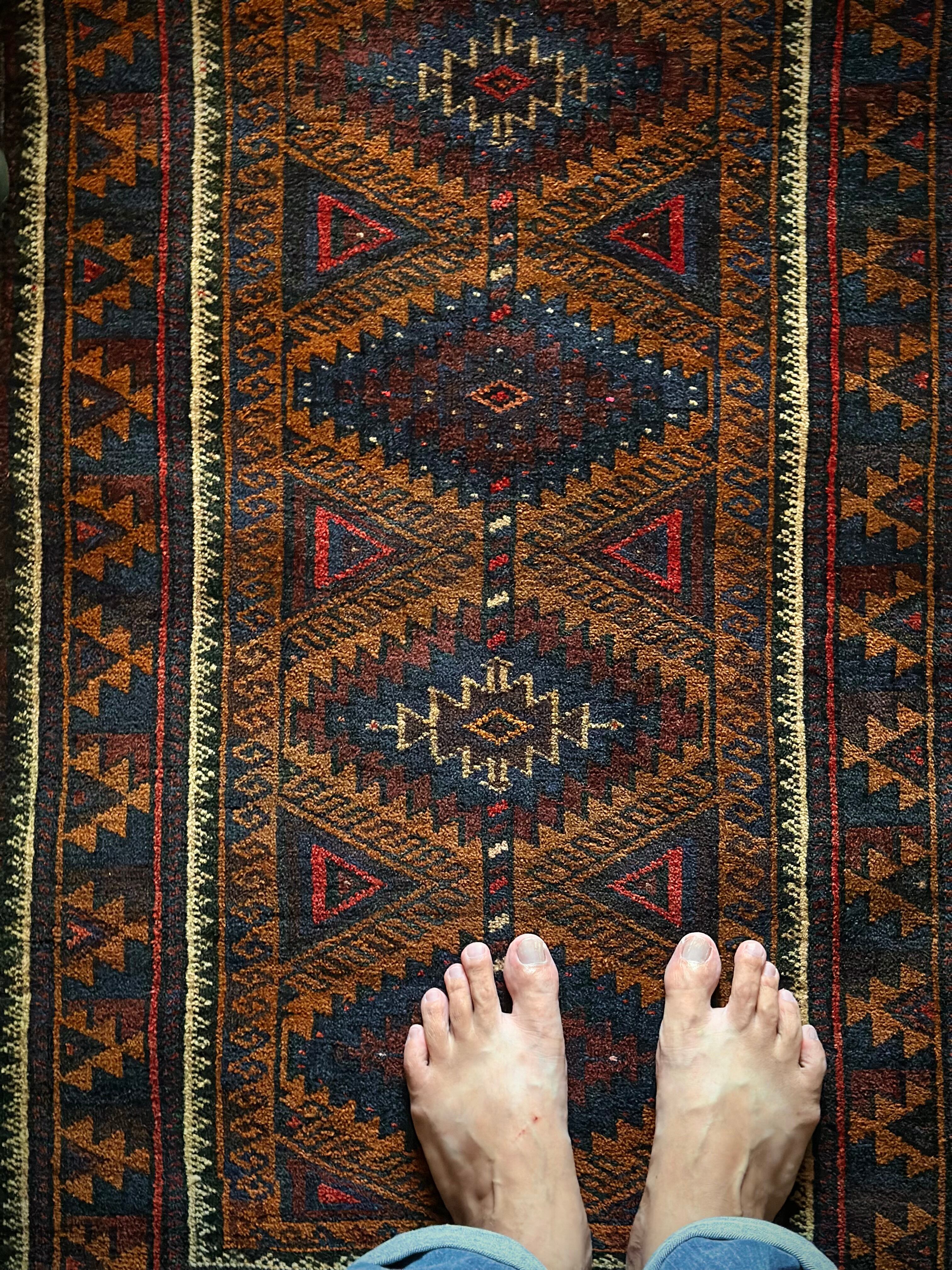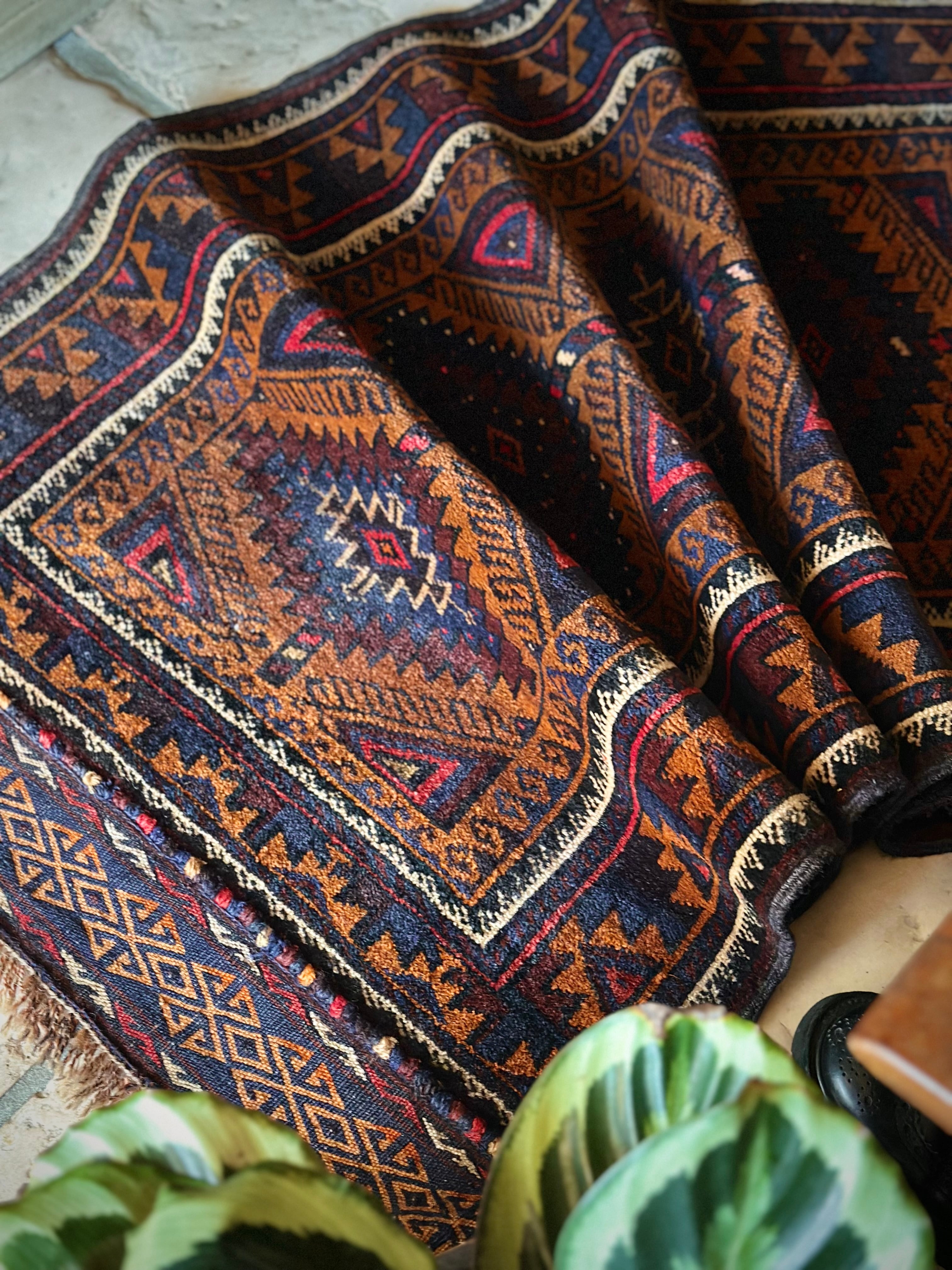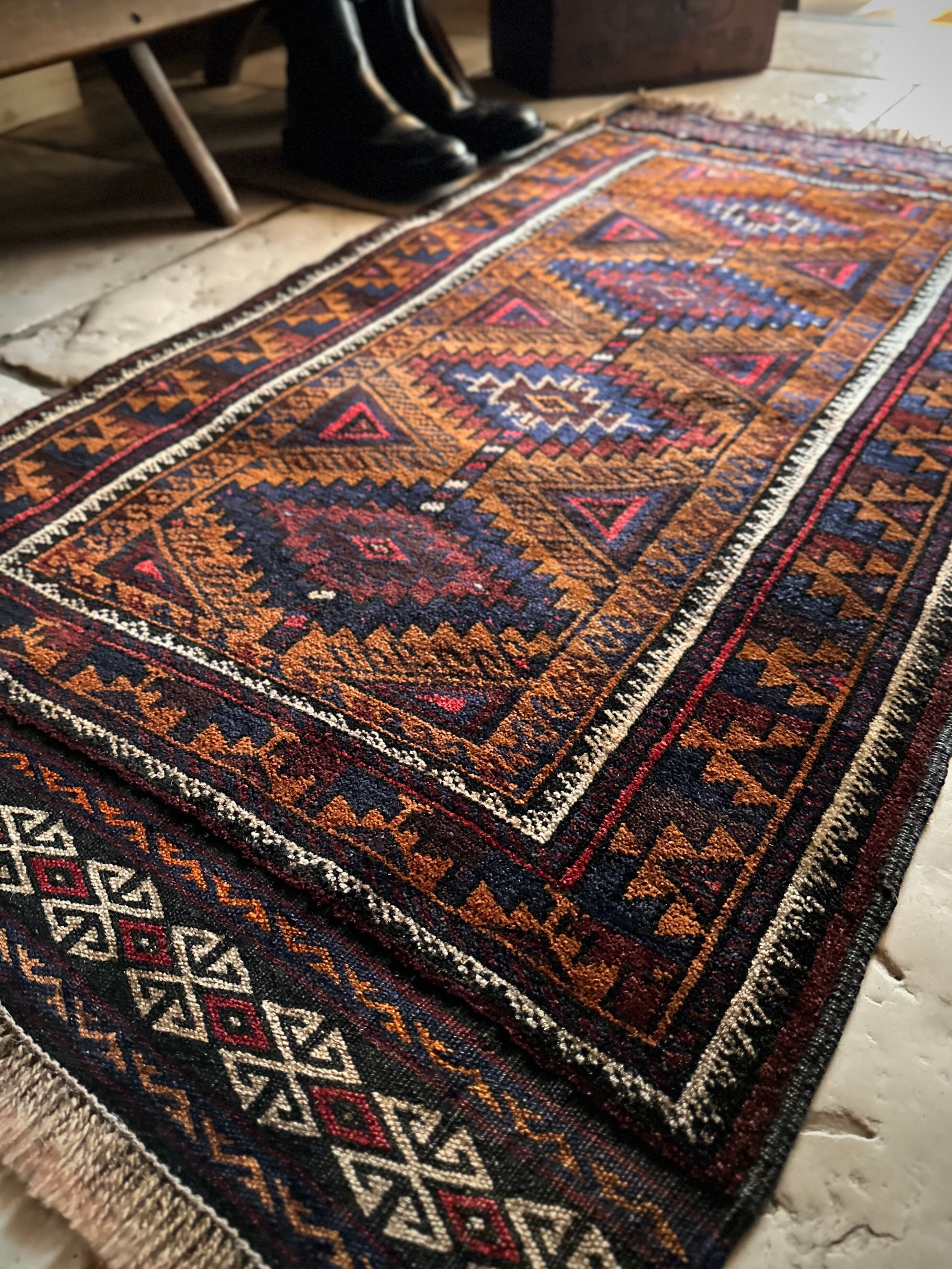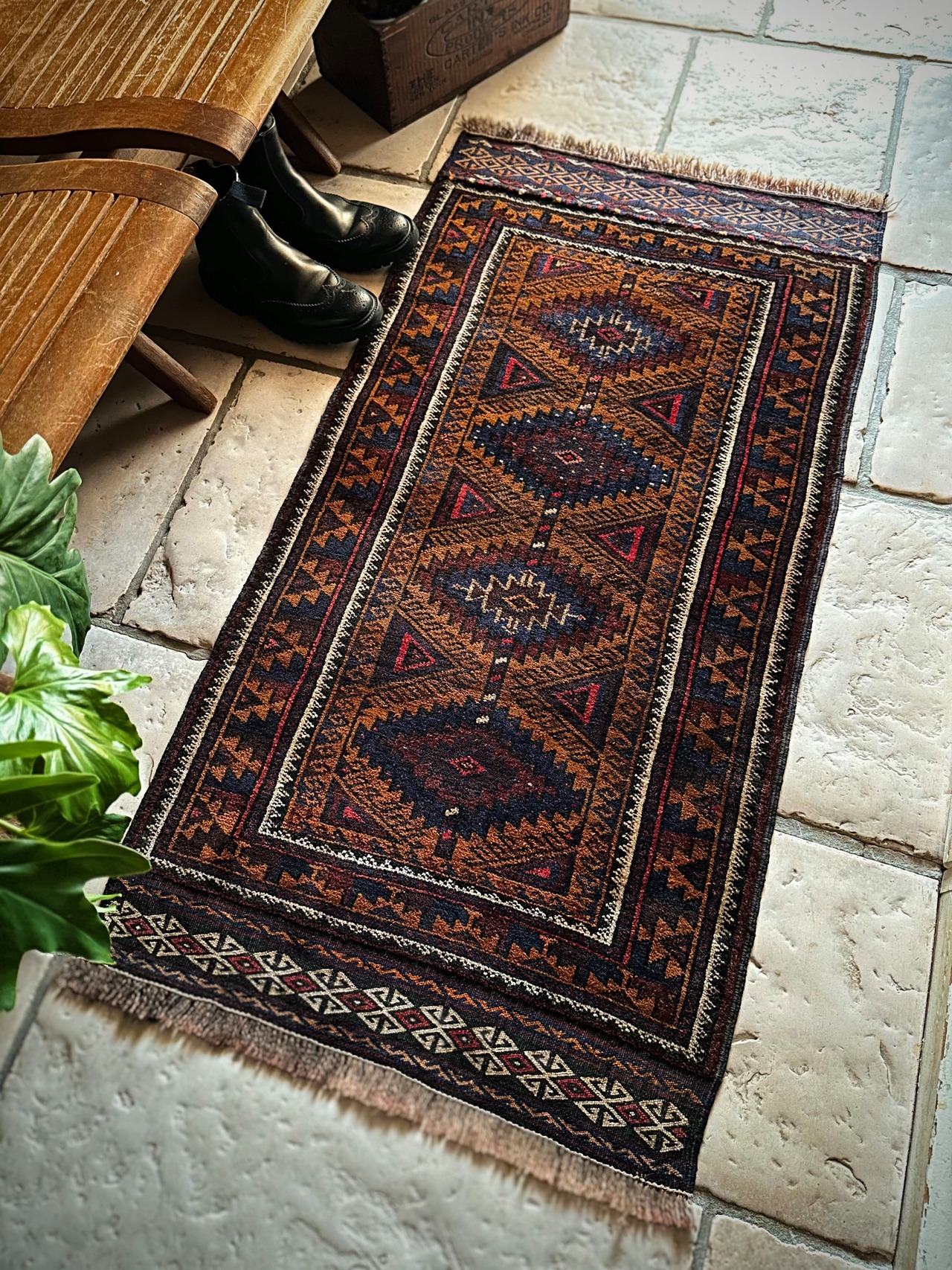 最後にラグそのものに関しては羊毛特有の匂いがあり、採寸は中央付近で計測していますが、手織りならではの歪みによる誤差や水洗いクリーニングによる縮み、また草木染めによる経年劣化の色ムラなどがありますが、それもまたヴィンテージラグの魅力かとご理解ください。