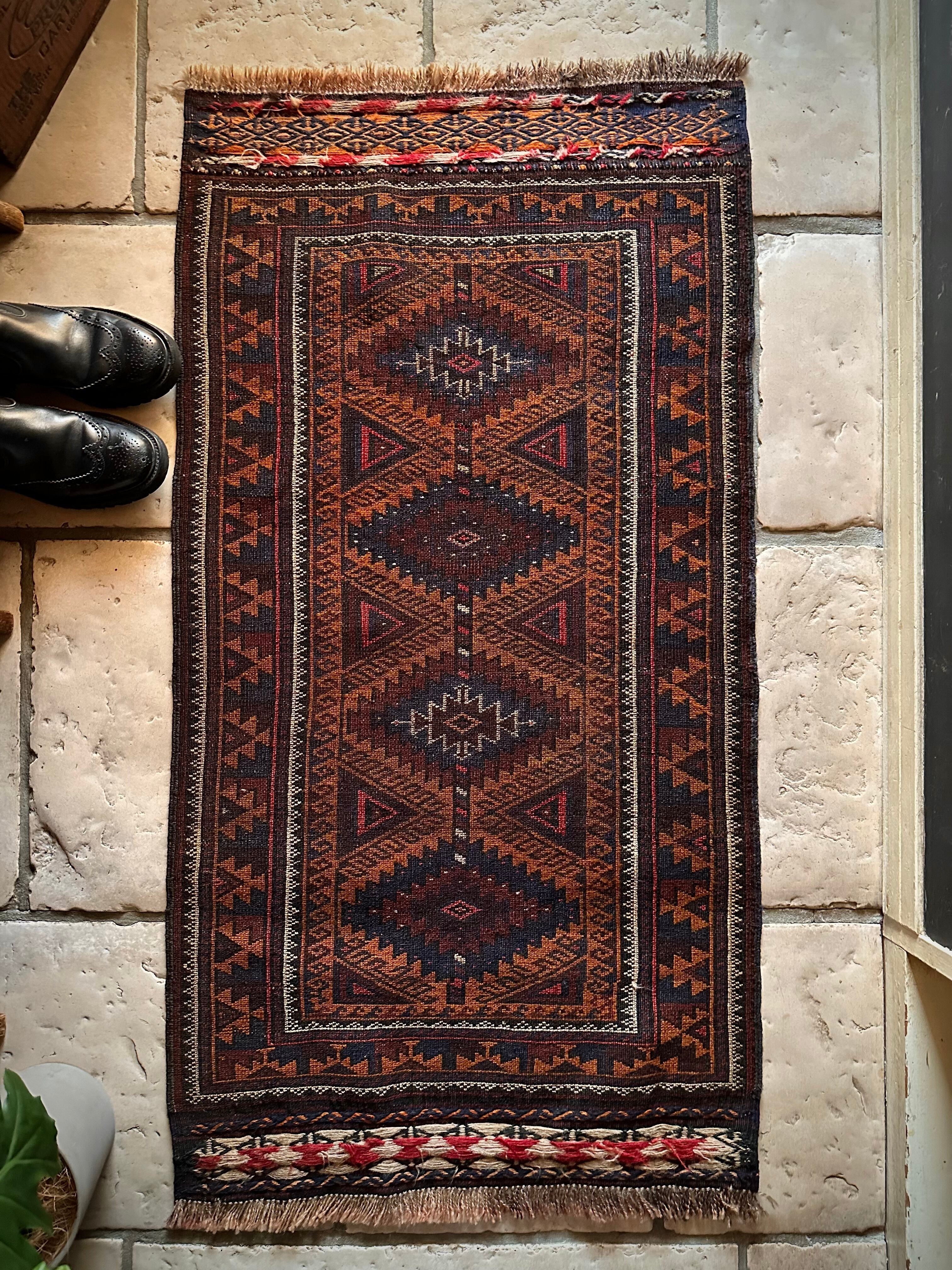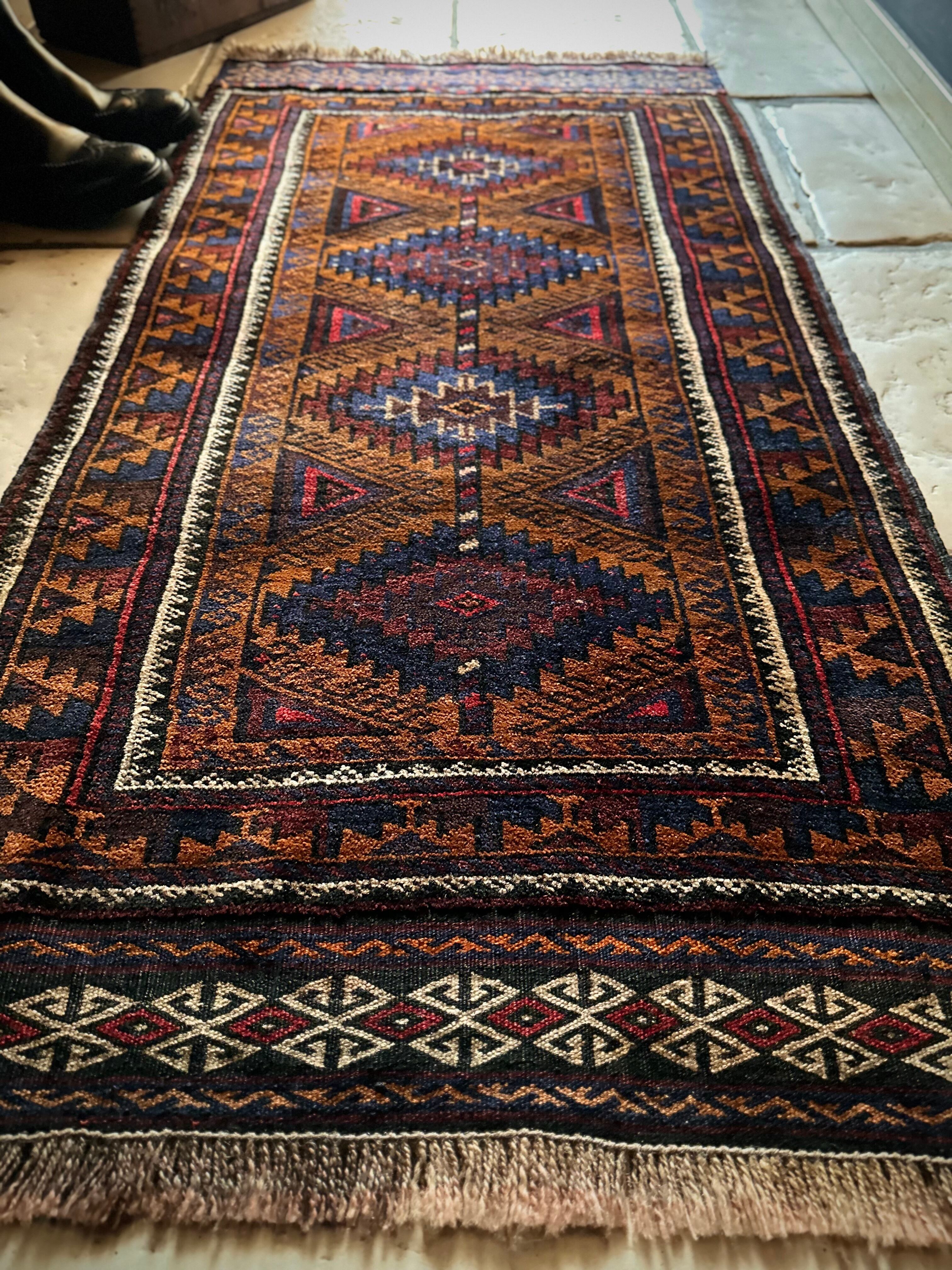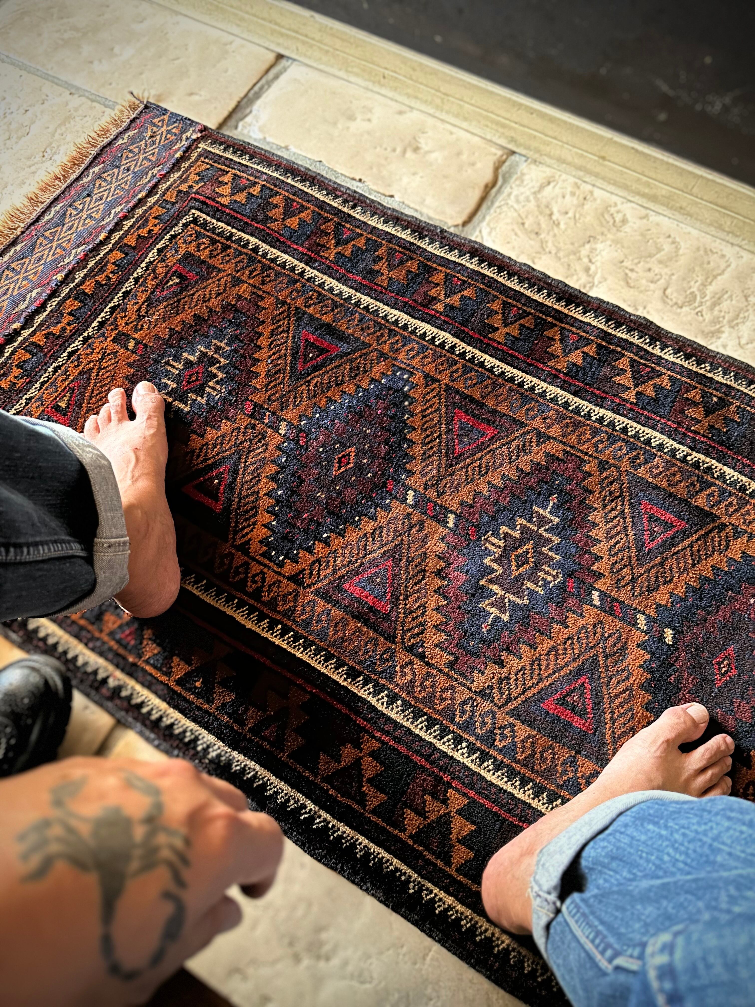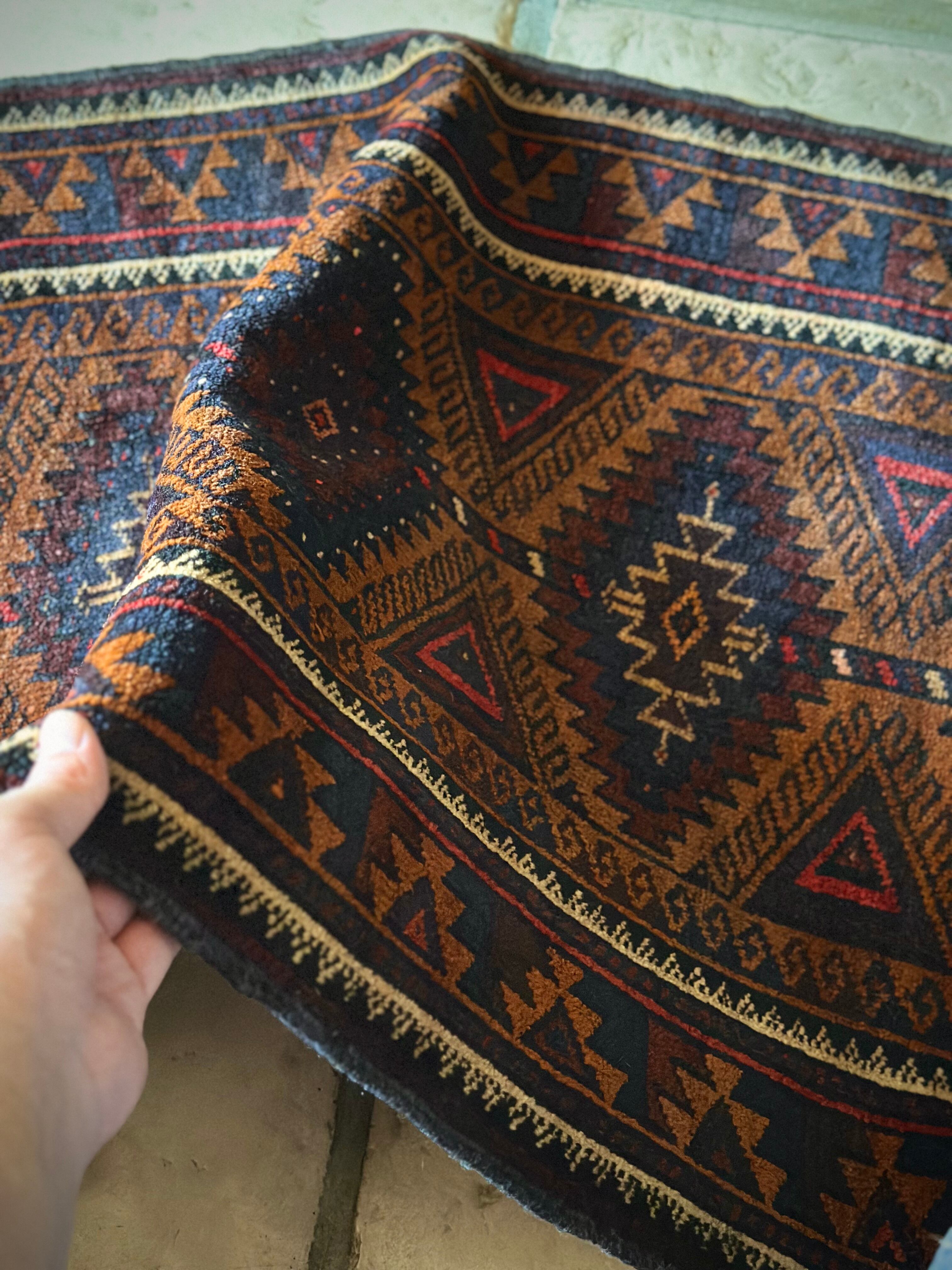 最後にラグそのものに関しては羊毛特有の匂いがあり、採寸は中央付近で計測していますが、手織りならではの歪みによる誤差や水洗いクリーニングによる縮み、また草木染めによる経年劣化の色ムラなどがありますが、それもまたヴィンテージラグの魅力かとご理解ください。