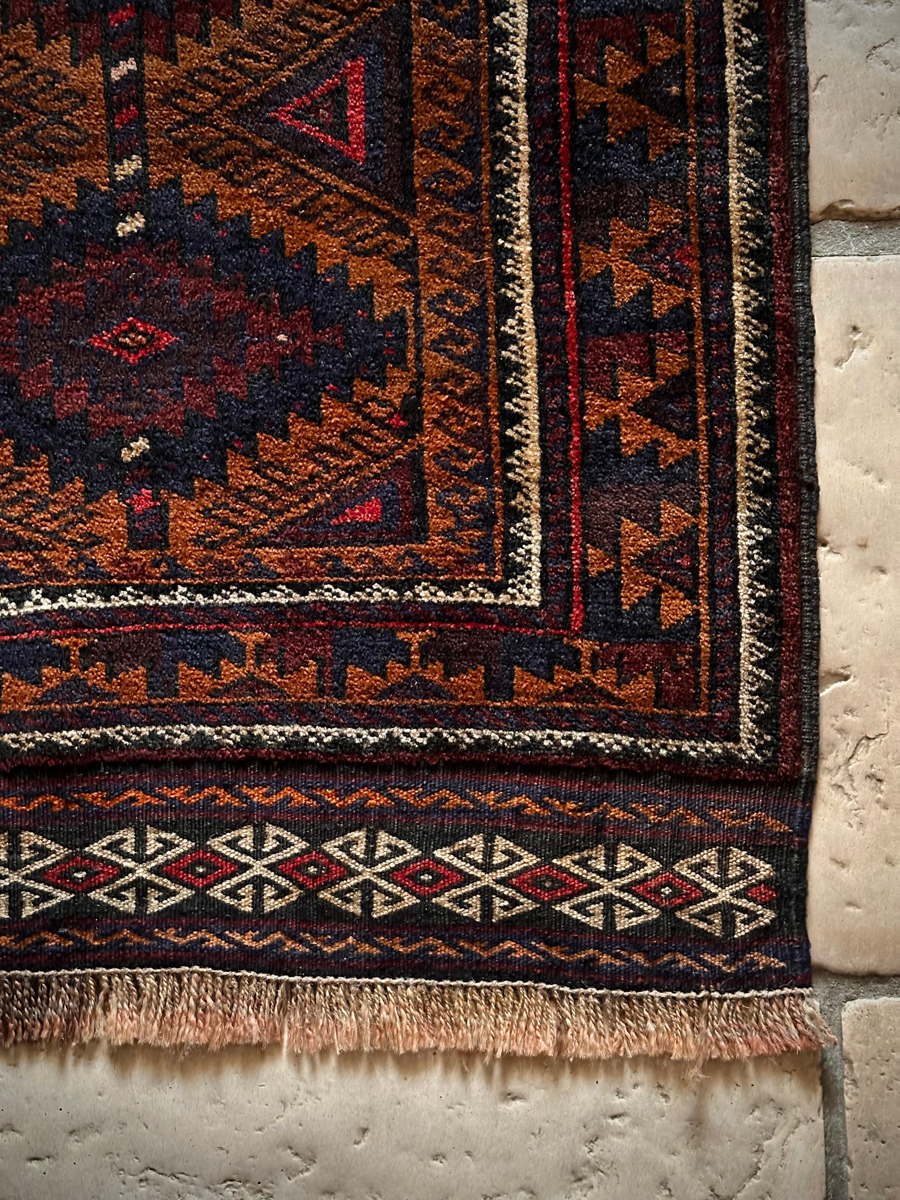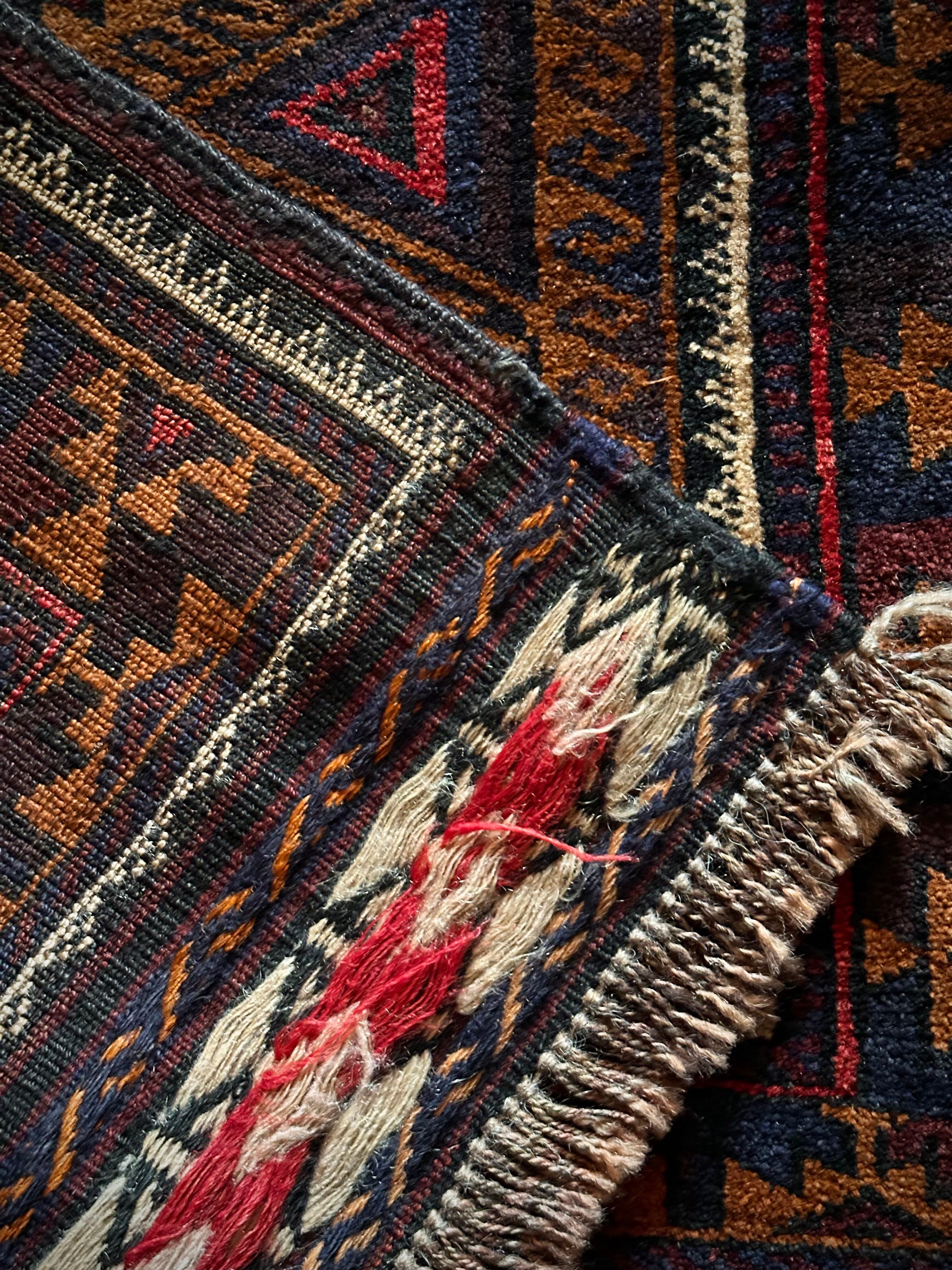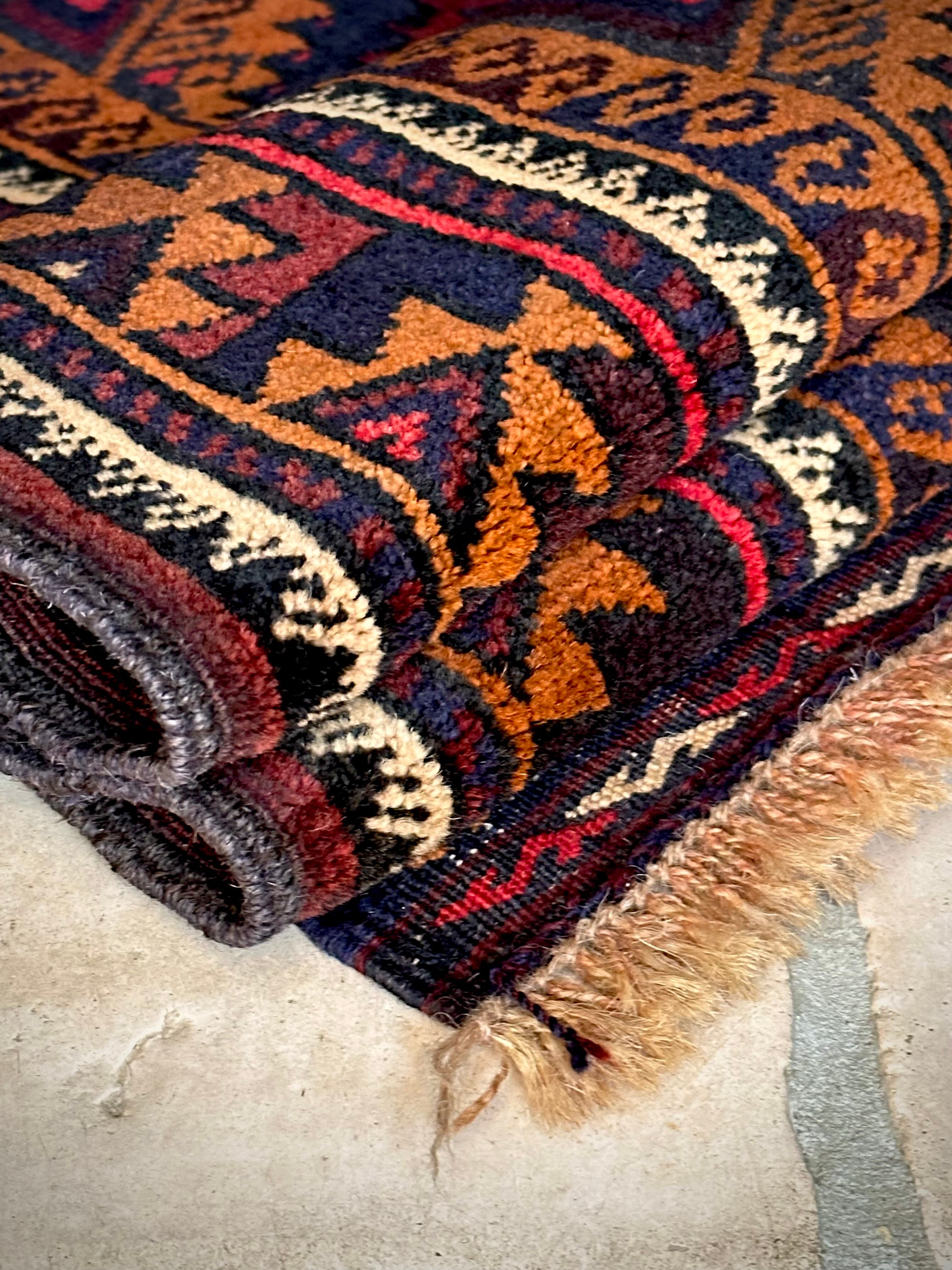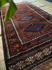 経年としては55年となりますが目立つ経年劣化もなく、気になるダメージやリペア箇所は見当たらないグッドなコンディションで、パイル自体は短めのサラッとした手触りが気持ちよく、床のアクセントラグやソファの座面にと多目的に使用でき、バーリシトならではの特徴的なキリムエンドの装飾がかっこいい1枚になります。