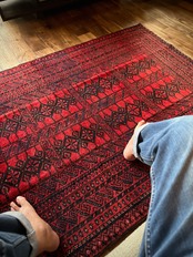 最後にラグそのものに関しては羊毛特有の匂いがあり、採寸は中央付近で計測していますが、手織りならではの歪みによる誤差や水洗いクリーニングによる縮み、また草木染めによる経年劣化の色ムラなどがありますが、それもまたヴィンテージラグの魅力かとご理解ください。