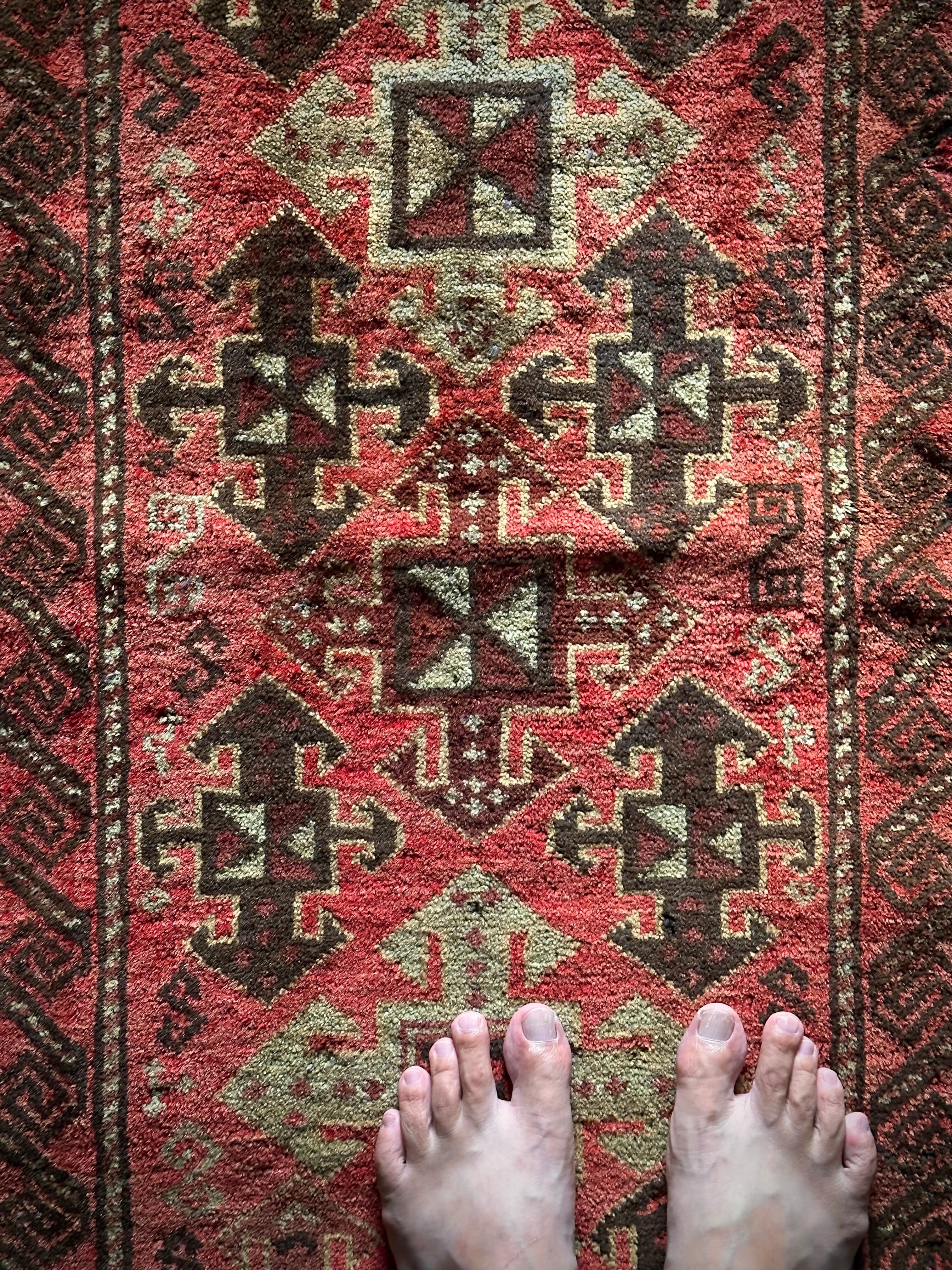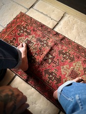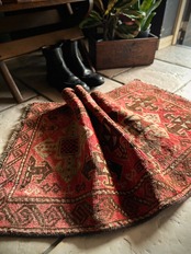 最後にラグそのものに関しては羊毛特有の匂いがあり、採寸は中央付近で計測していますが、手織りならではの歪みによる誤差や水洗いクリーニングによる縮み、また草木染めによる経年劣化の色ムラなどがありますが、それもまたヴィンテージラグの魅力かとご理解ください。