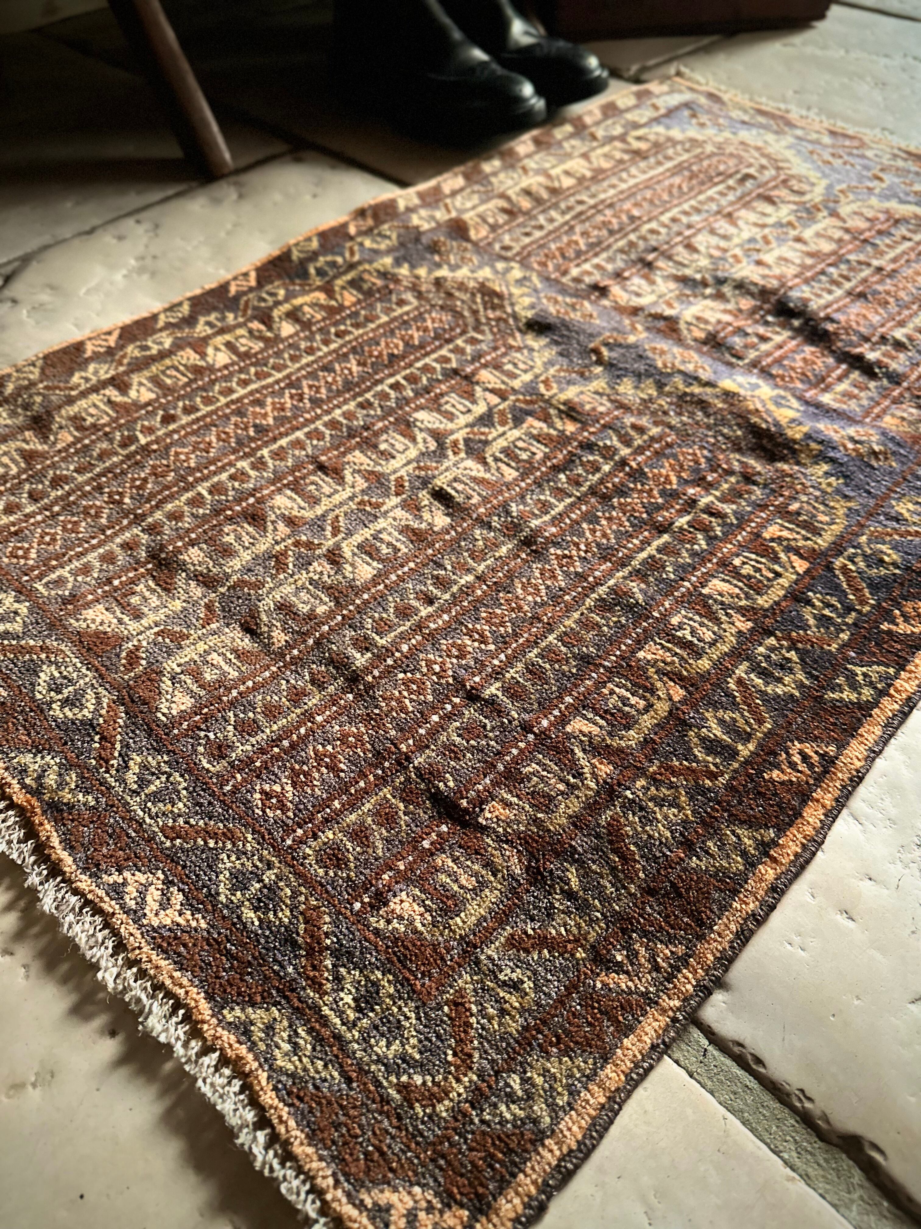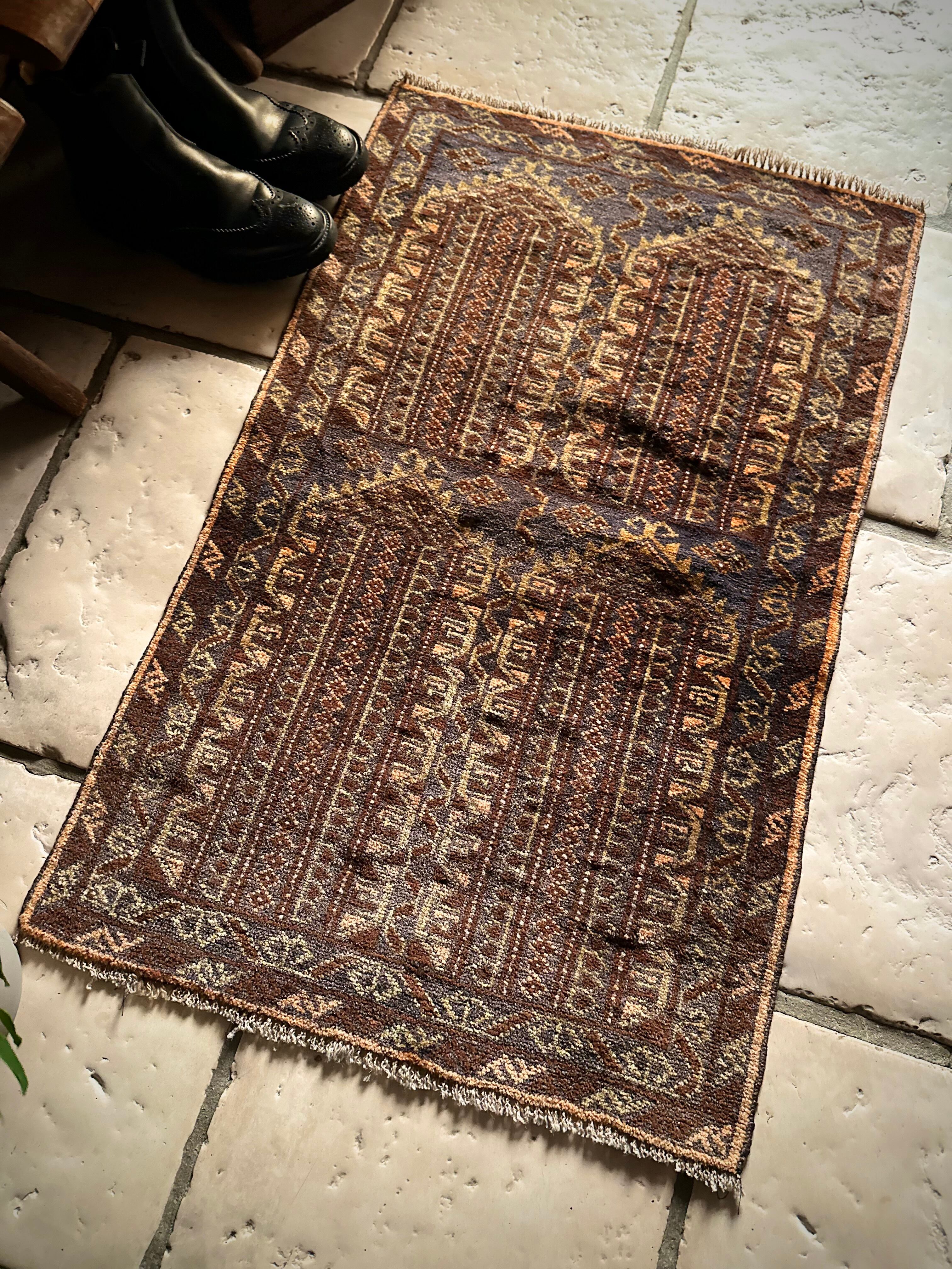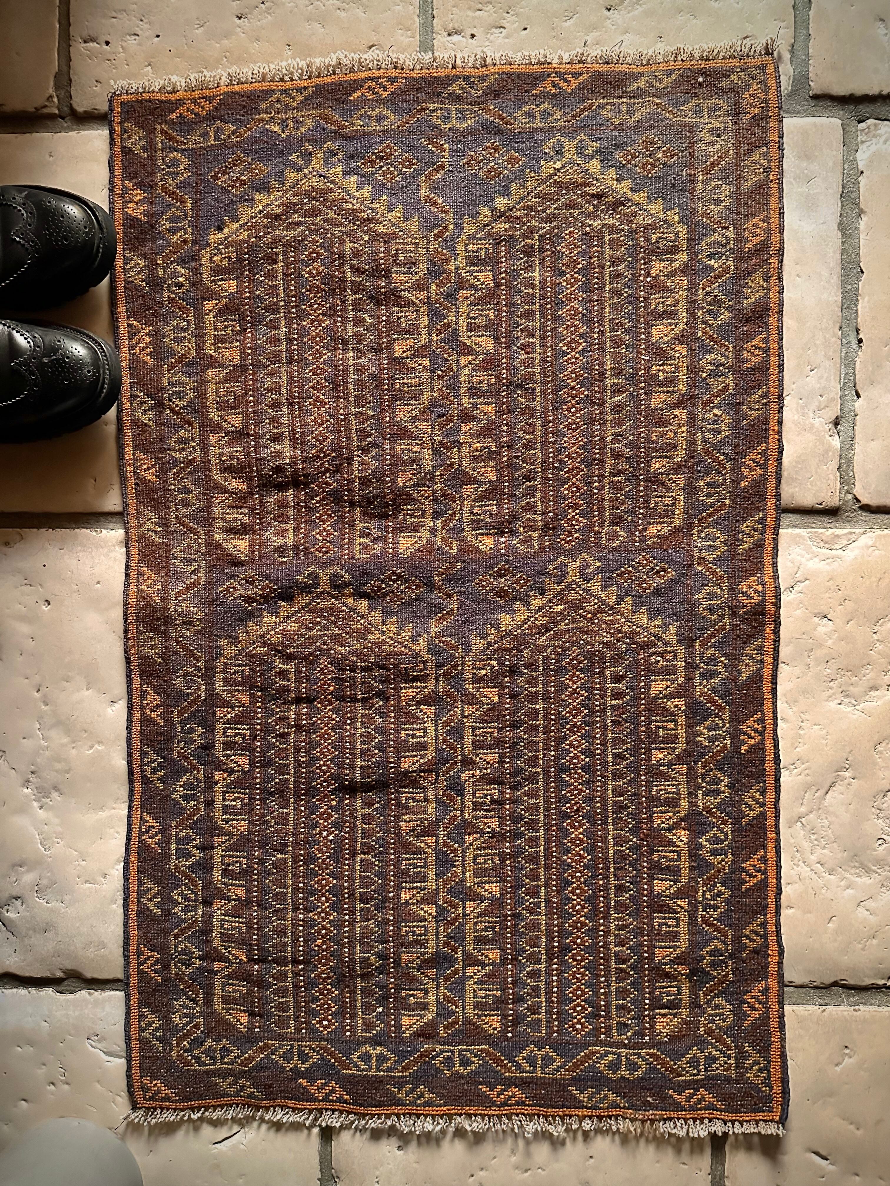 経年としては55年となり経年劣化による色褪せはありますが、特に目立つダメージやリペア箇所は見当たらないグッドなコンディションで、大きさ的にも玄関マットからちょっとしたアクセントラグとして使い勝手の良いサイズ感になります。
