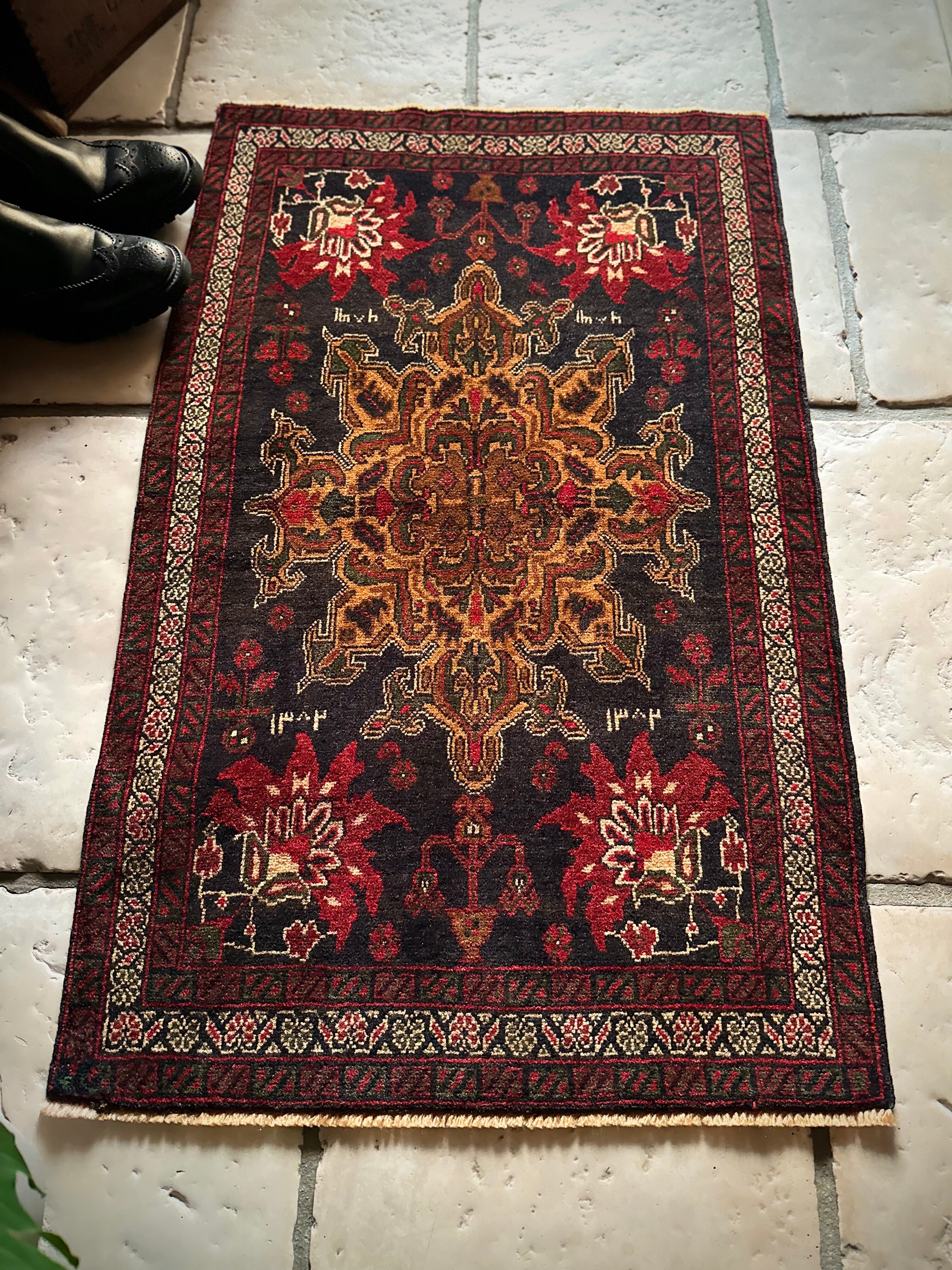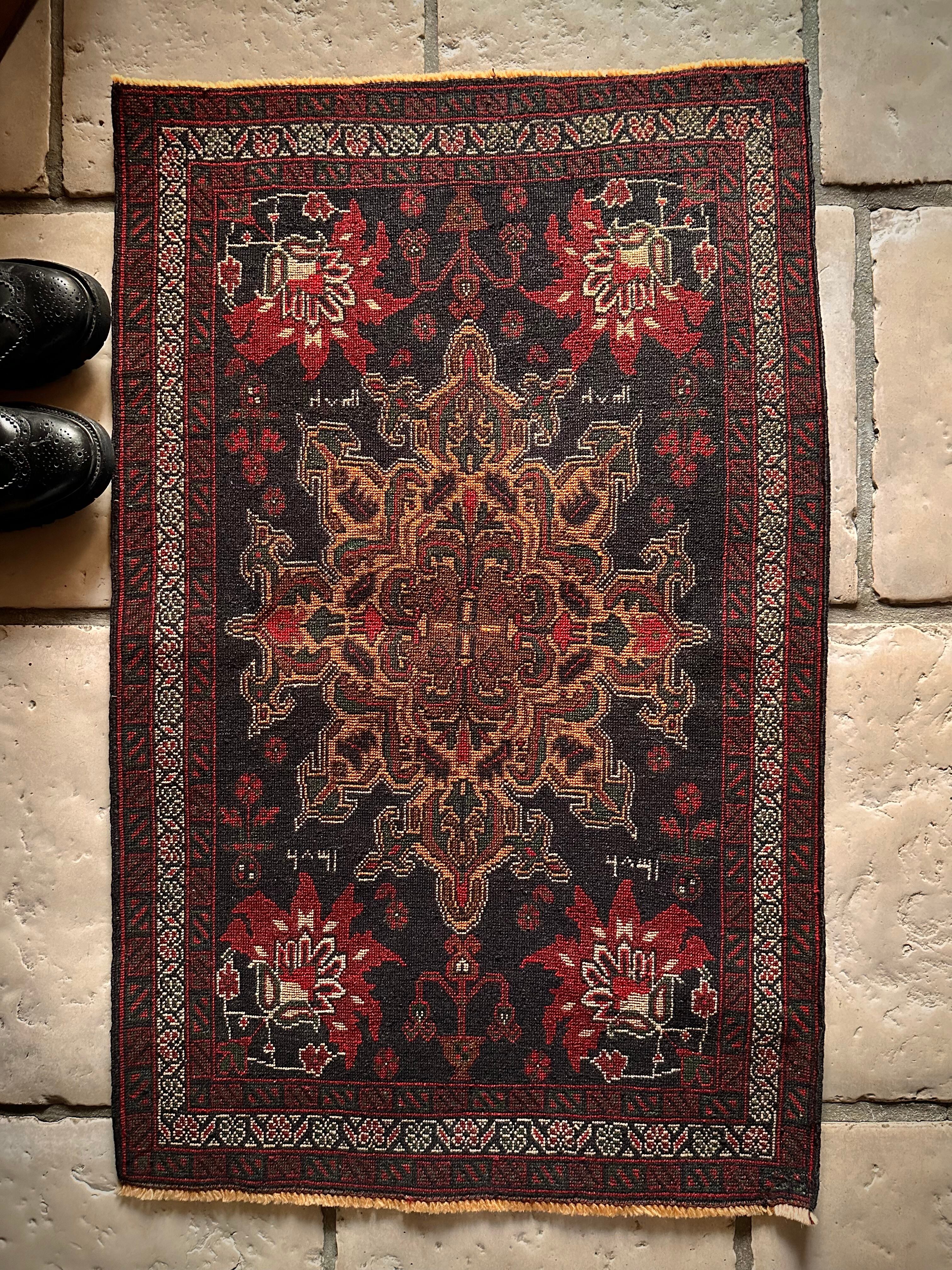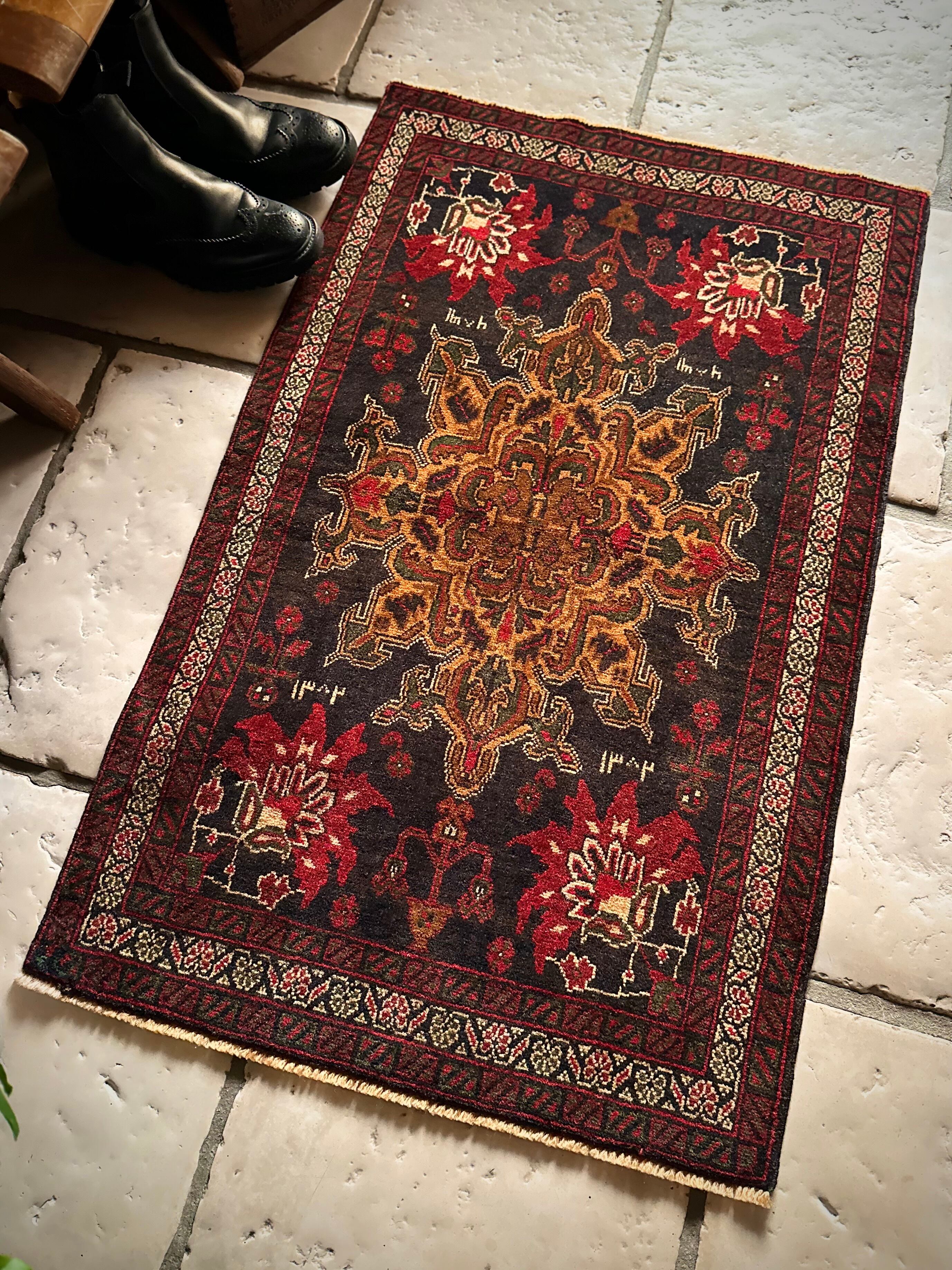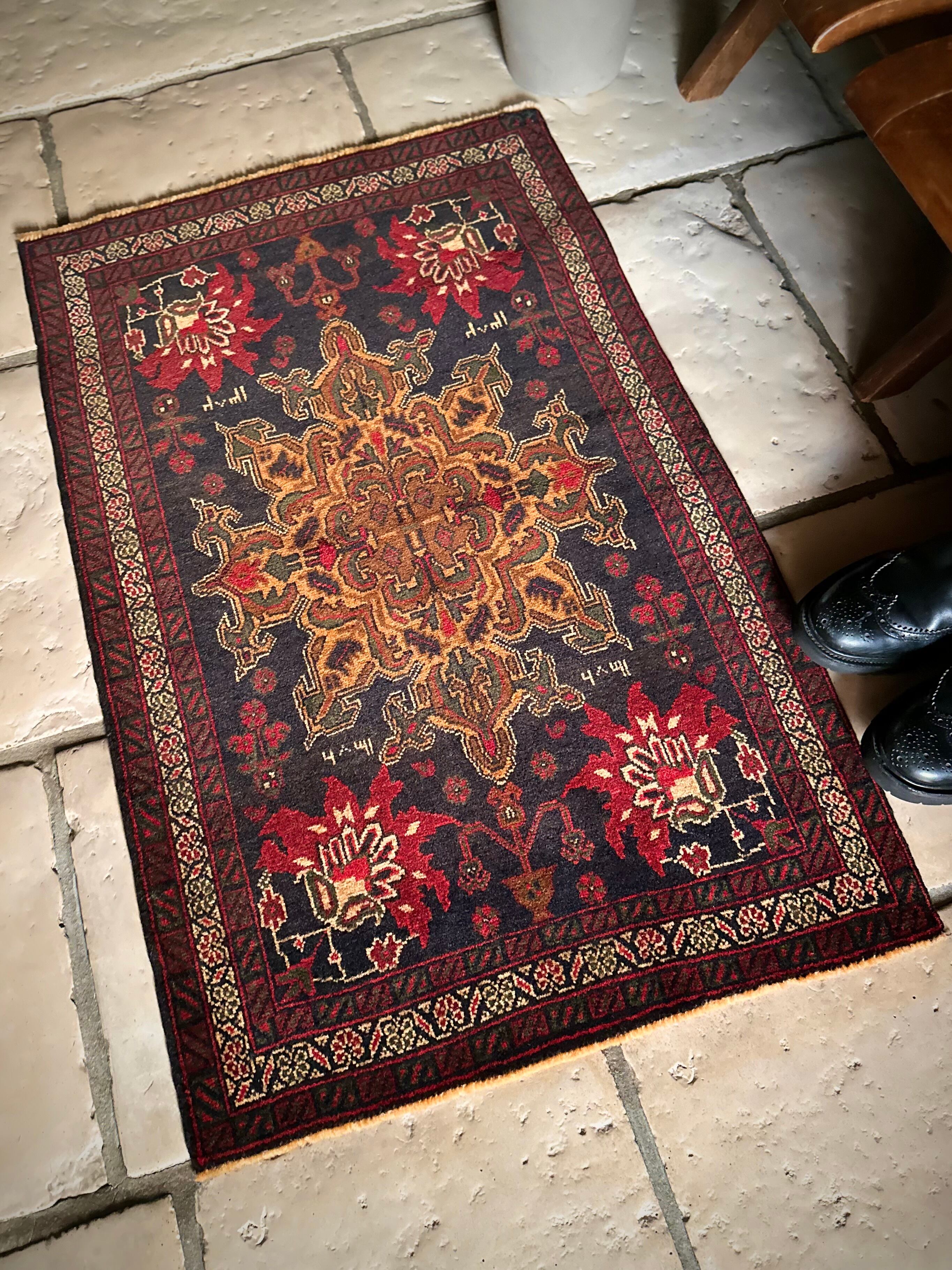 経年としては50年のヴィンテージ品ながらも特に目立つダメージにリペア箇所はなく、織りもしっかりとしていて、パイル自体は短めですがしっとりとした肌触りになり、小振りなサイズが多目的に使えそうなアクセントラグになります。