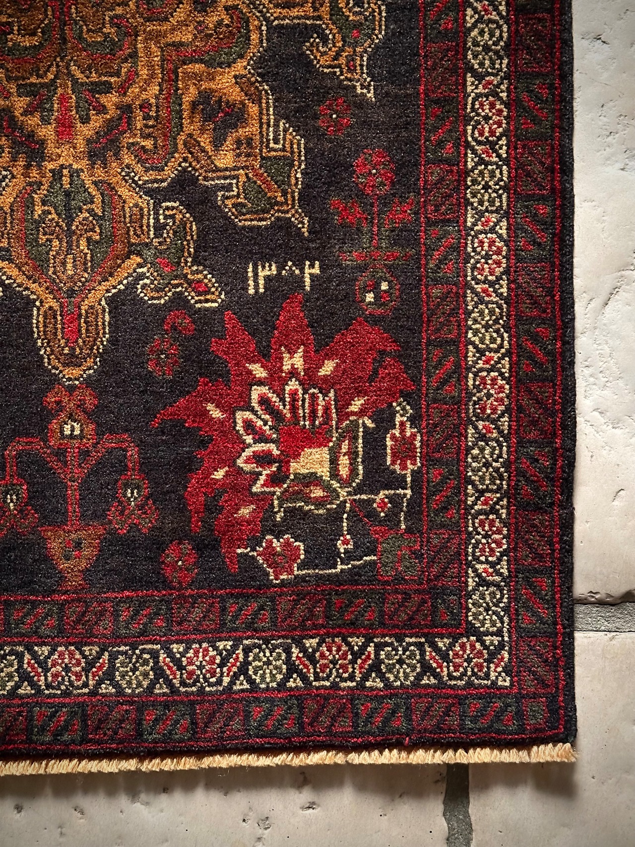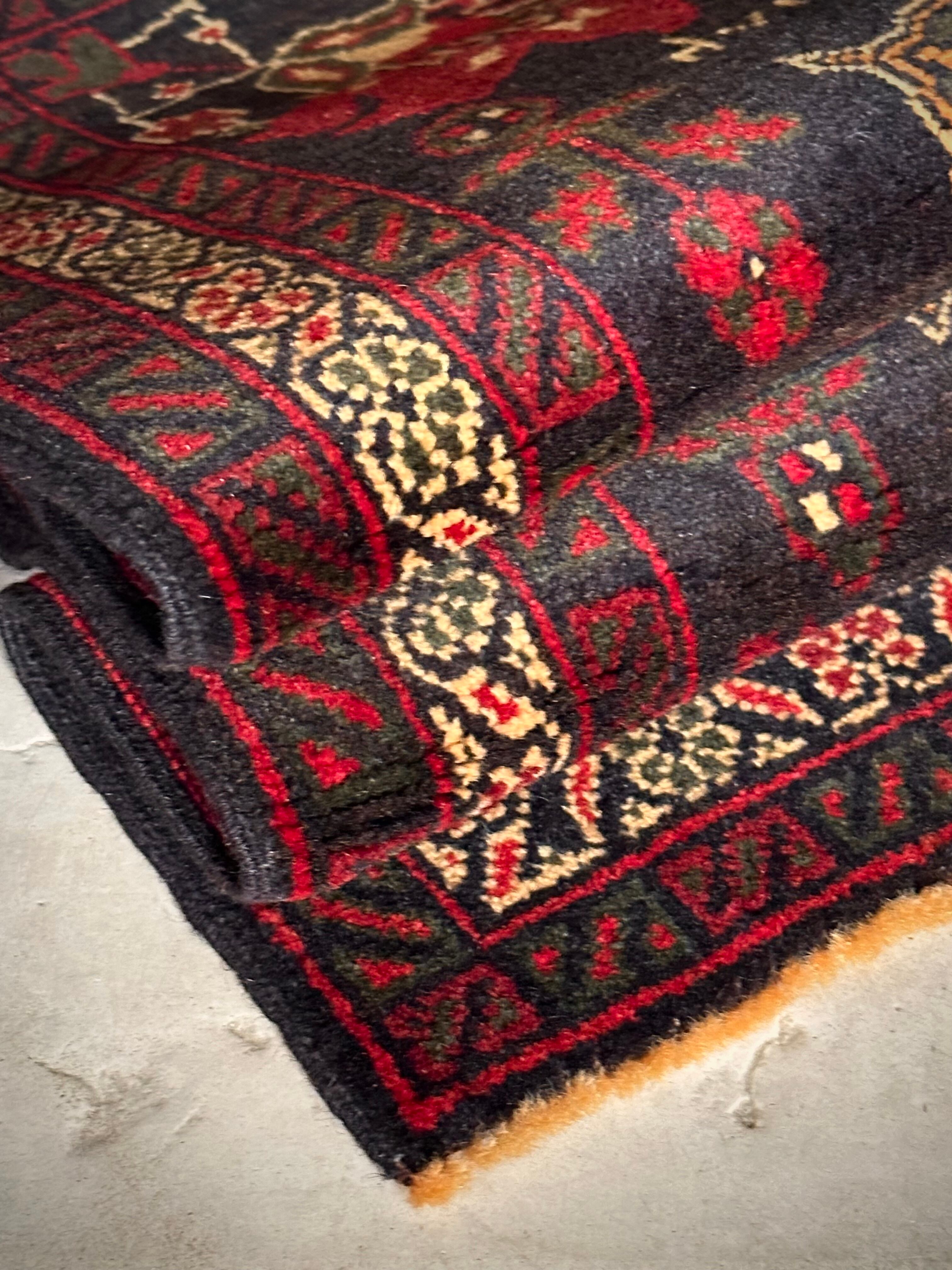 イランのマシュハド産バルーチとは違い、アフガン産ではこういった毒々しさを放つのをよく見かけますが、パキッとした色彩の減り張りが強く出ていて個人的にも興味深いでしょうか。