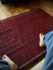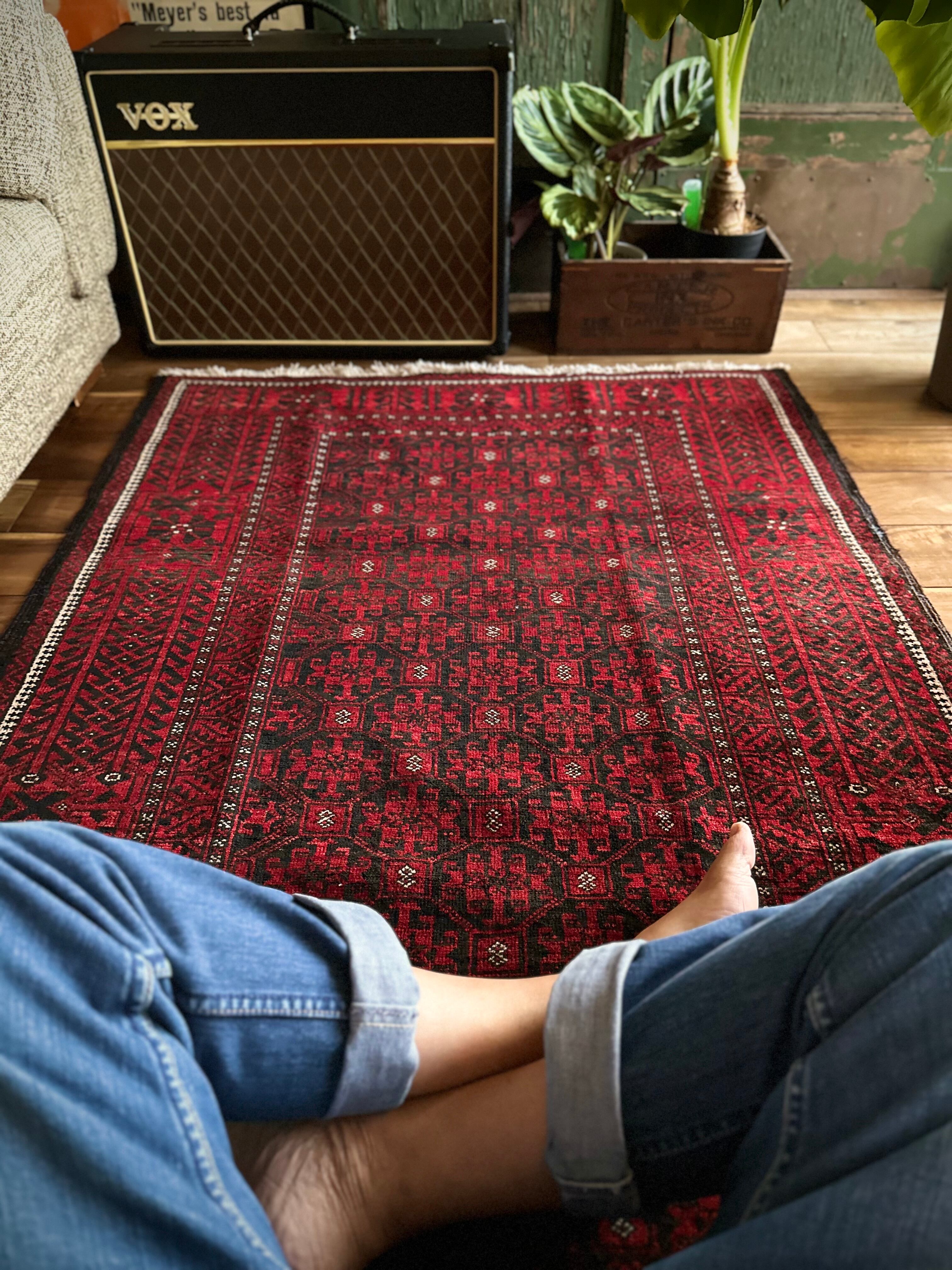 最後にラグそのものに関しては羊毛特有の匂いがあり、採寸は中央付近で計測していますが、手織りならではの歪みによる誤差や水洗いクリーニングによる縮み、また草木染めによる経年劣化の色ムラなどがありますが、それもまたヴィンテージラグの魅力かとご理解ください。