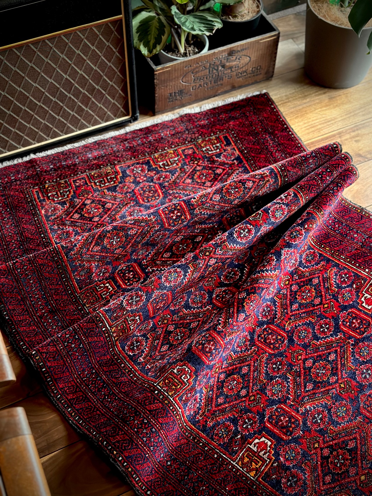 経年としてはヴィンテージラグらしいツヤ感が出た40年となり、気になるダメージにリペア箇所は見当たらないグッドなコンディションで、薄手の為に軽く持ち運べて多目的に使用できるラグとしても魅力的でしょう。
