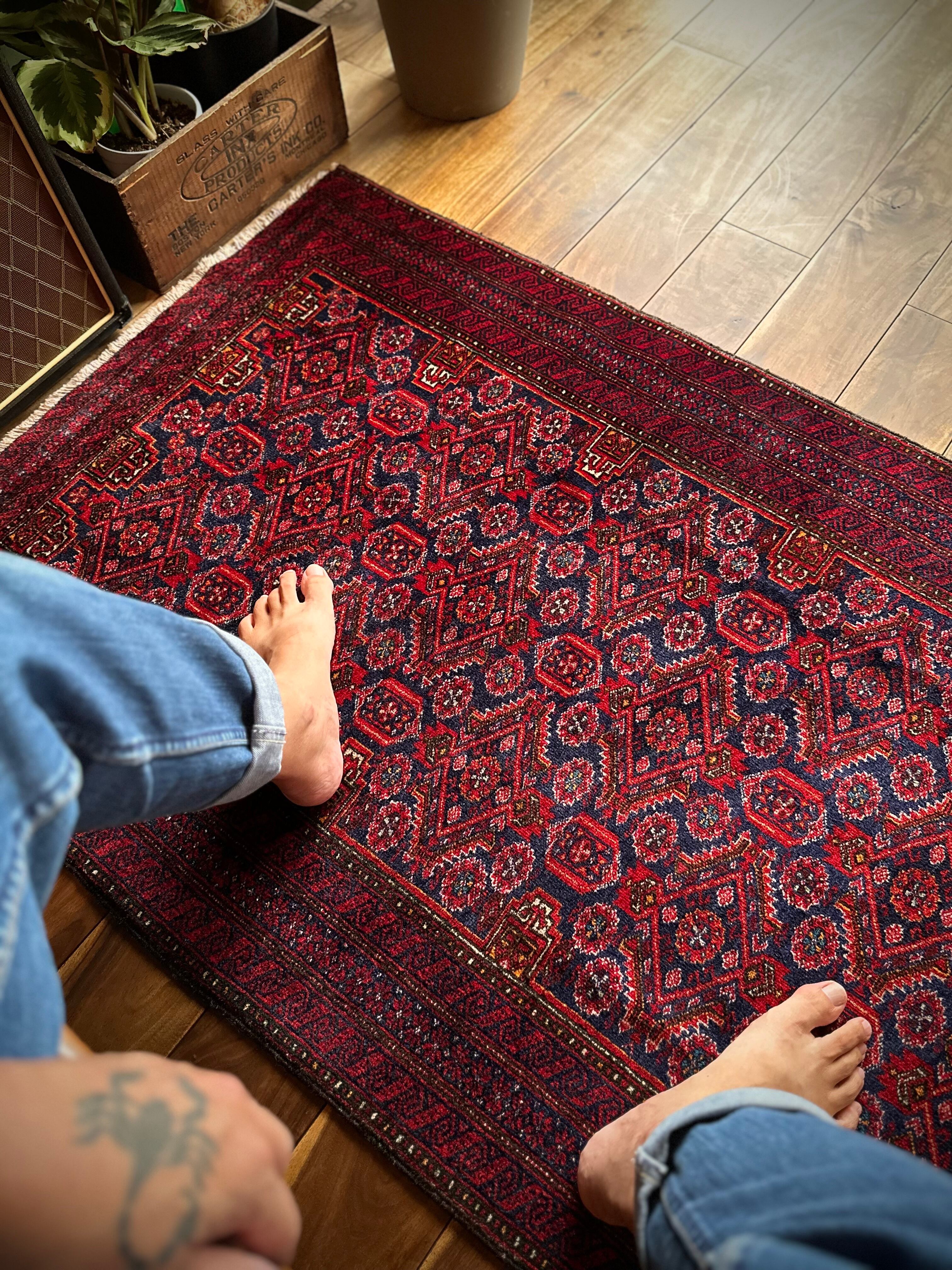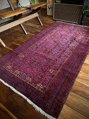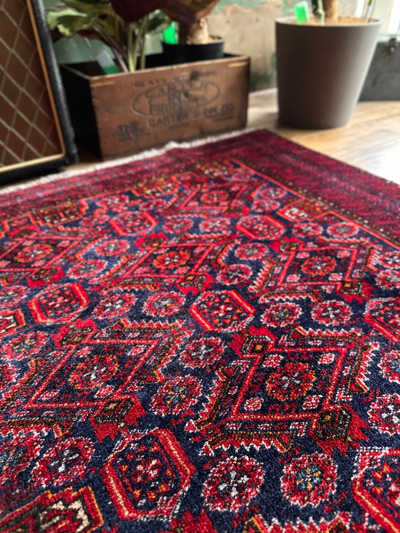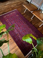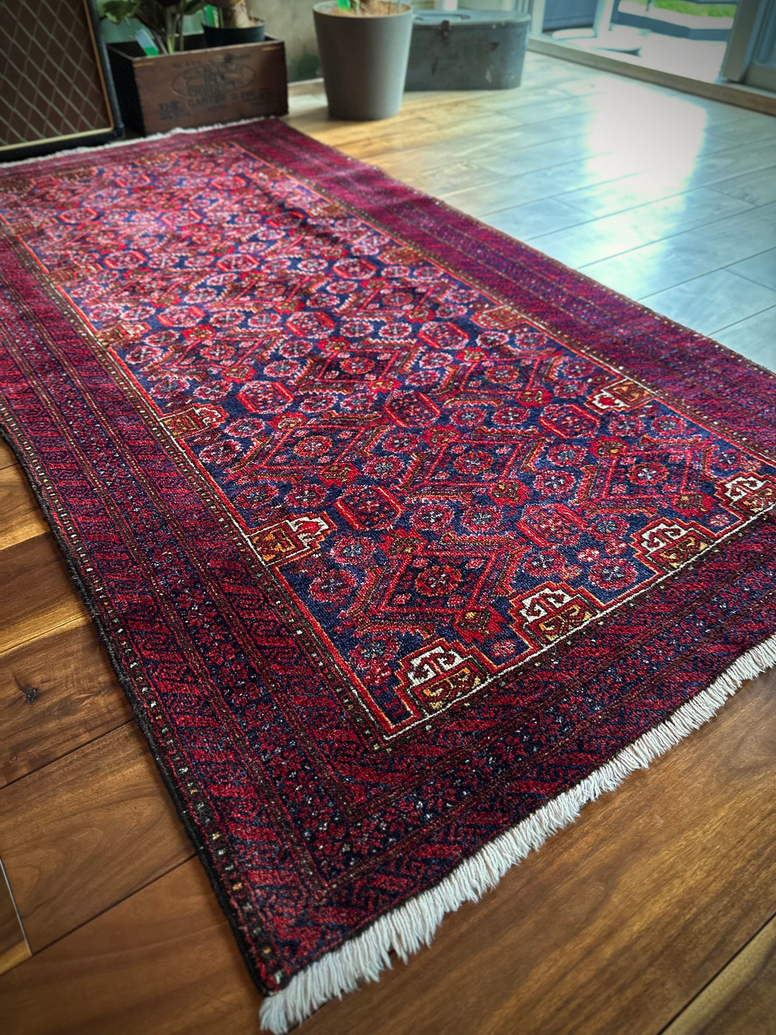 最後にラグそのものに関しては羊毛特有の匂いがあり、採寸は中央付近で計測していますが、手織りならではの歪みによる誤差や水洗いクリーニングによる縮み、また草木染めによる経年劣化の色ムラなどがありますが、それもまたヴィンテージラグの魅力かとご理解ください。