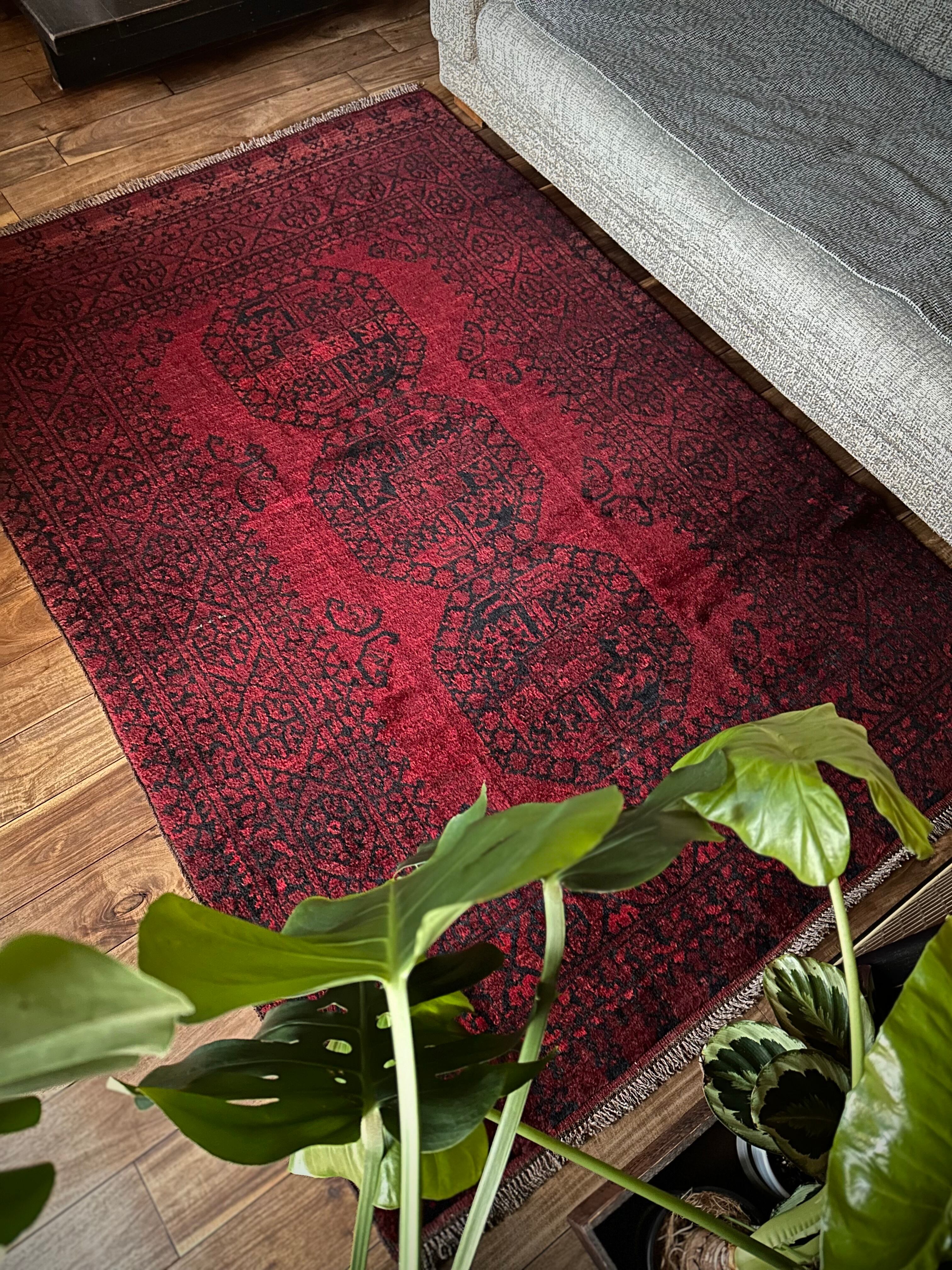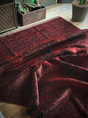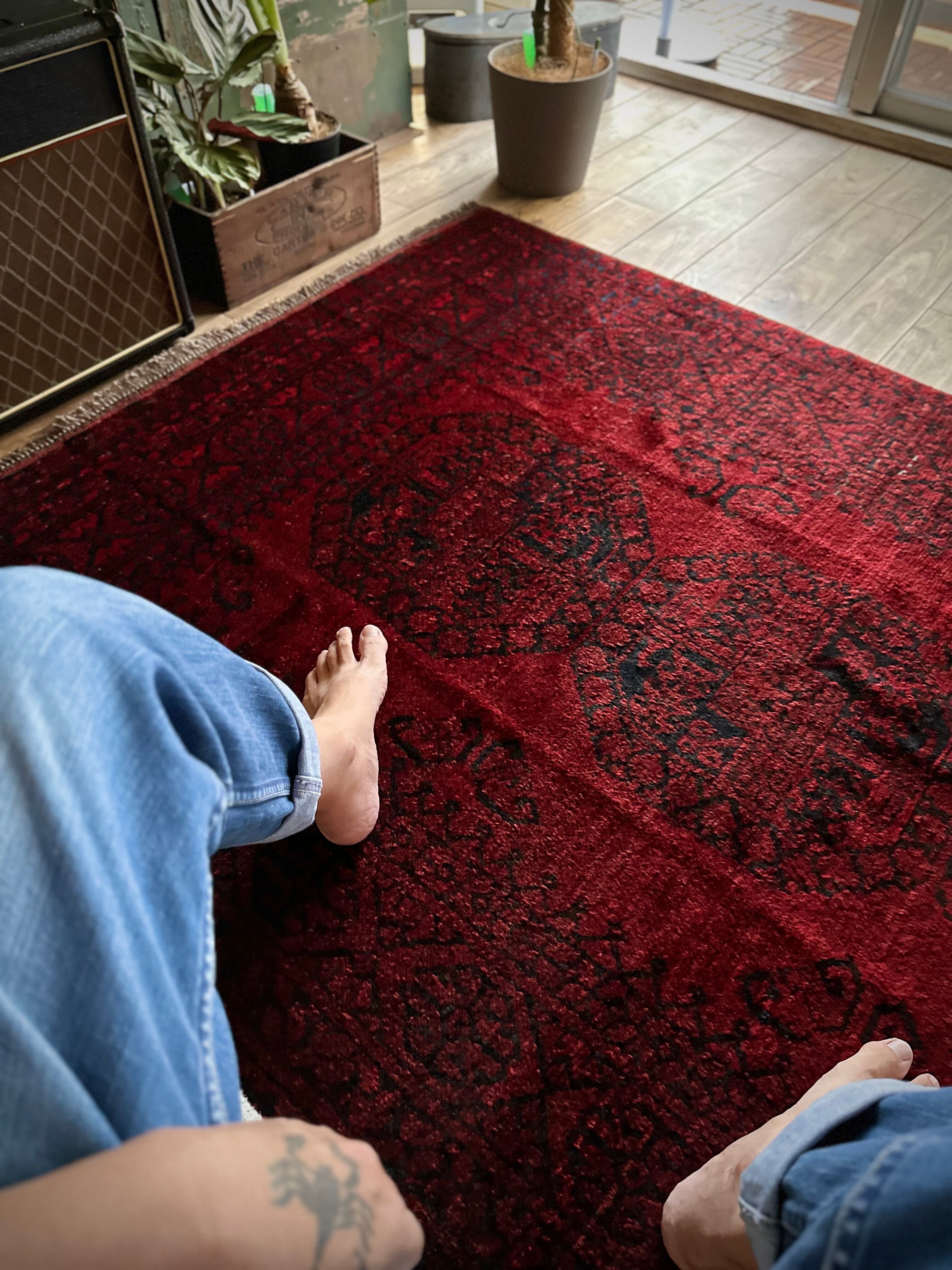 最後にラグそのものに関しては羊毛特有の匂いがあり、採寸は中央付近で計測していますが、手織りならではの歪みによる誤差や水洗いクリーニングによる縮み、また草木染めによる経年劣化の色ムラなどがありますが、それもまたヴィンテージラグの魅力かとご理解ください。