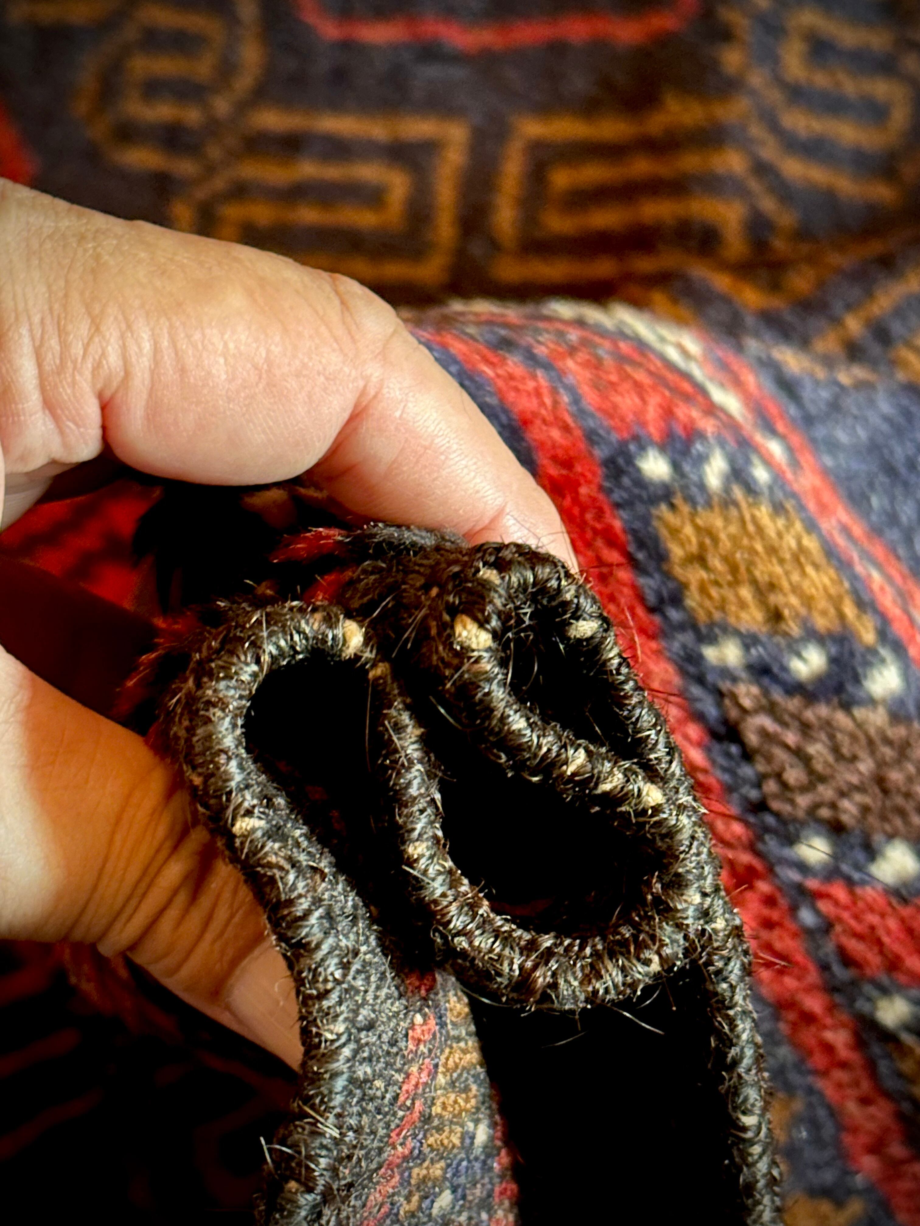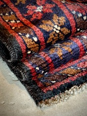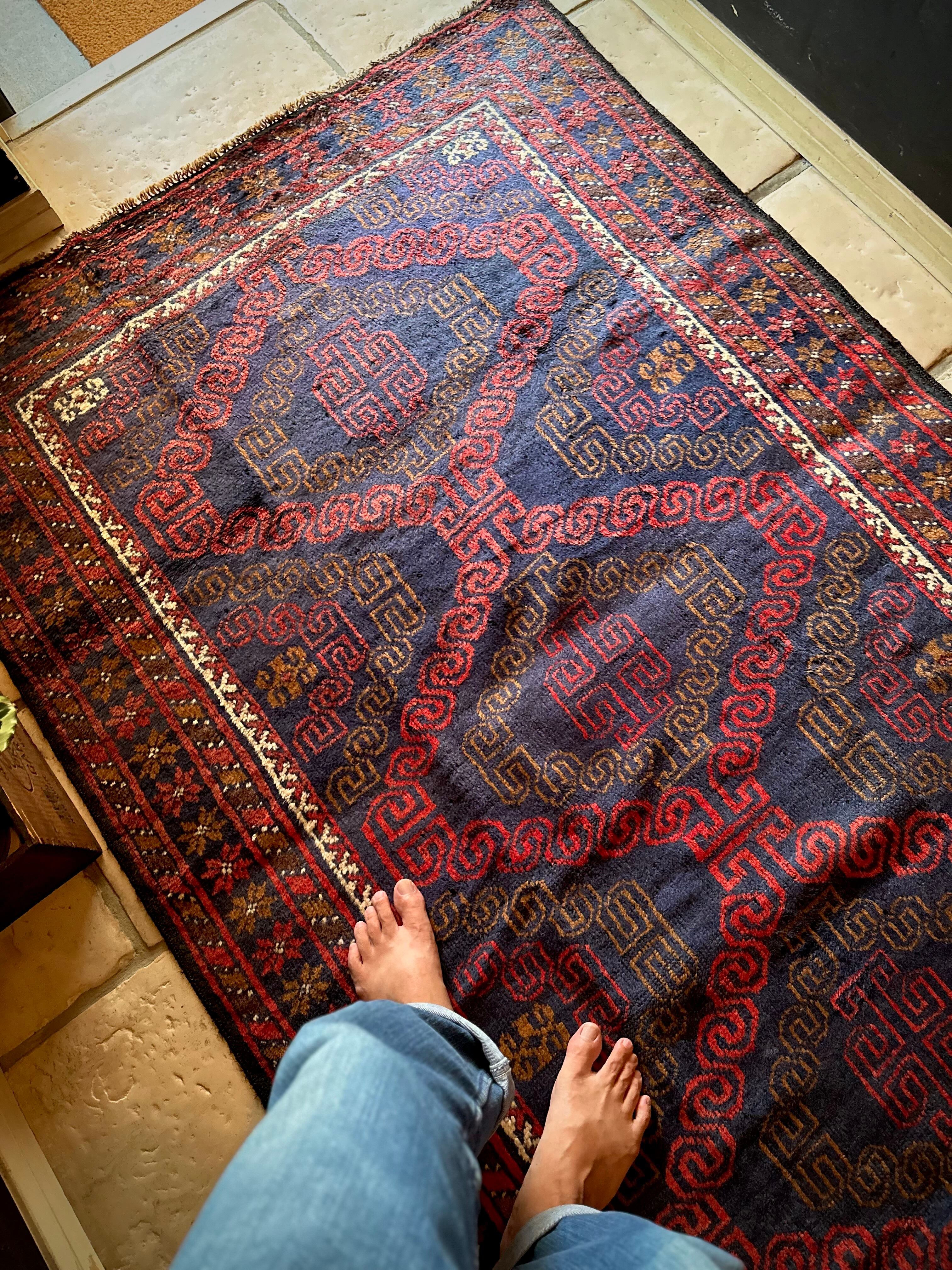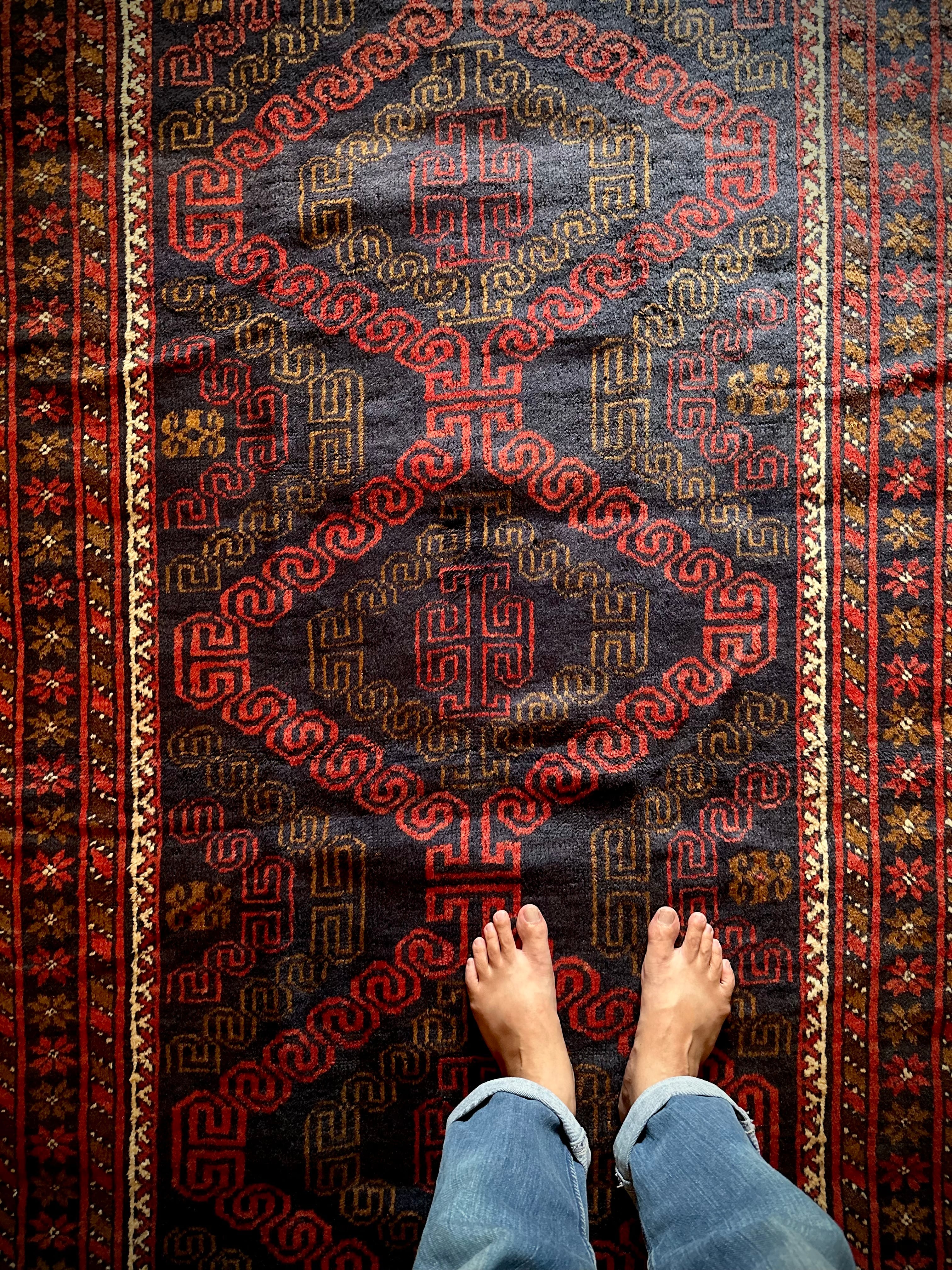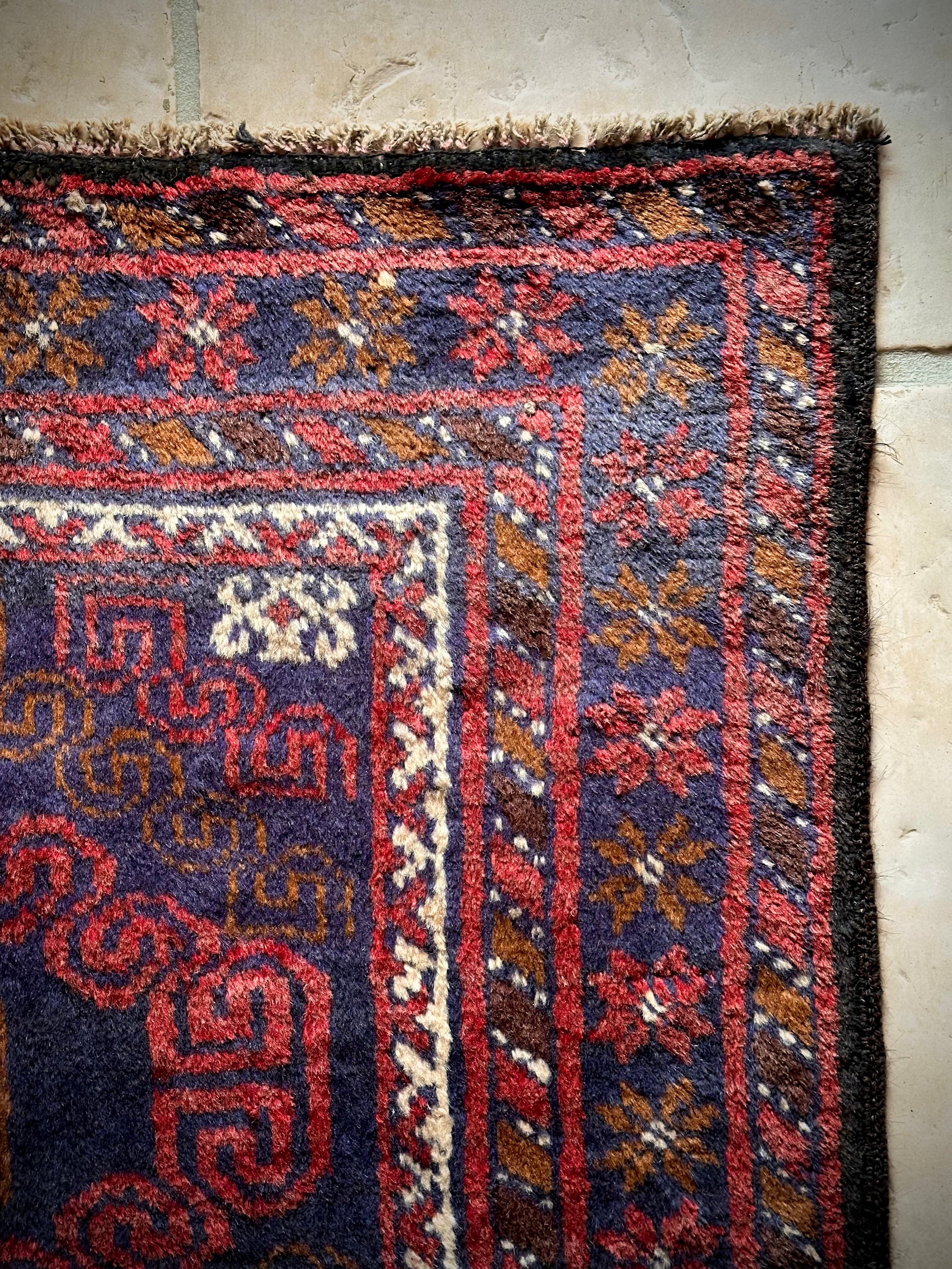室内の廊下を覆う3メートルを超える圧巻なサイズのこちらは、アフガニスタンはヘラート州に居住するバルーチ族のトライバルラグで、あまり見かける事がないですが水の流れを表したバルーチの伝統的な紋様になります。