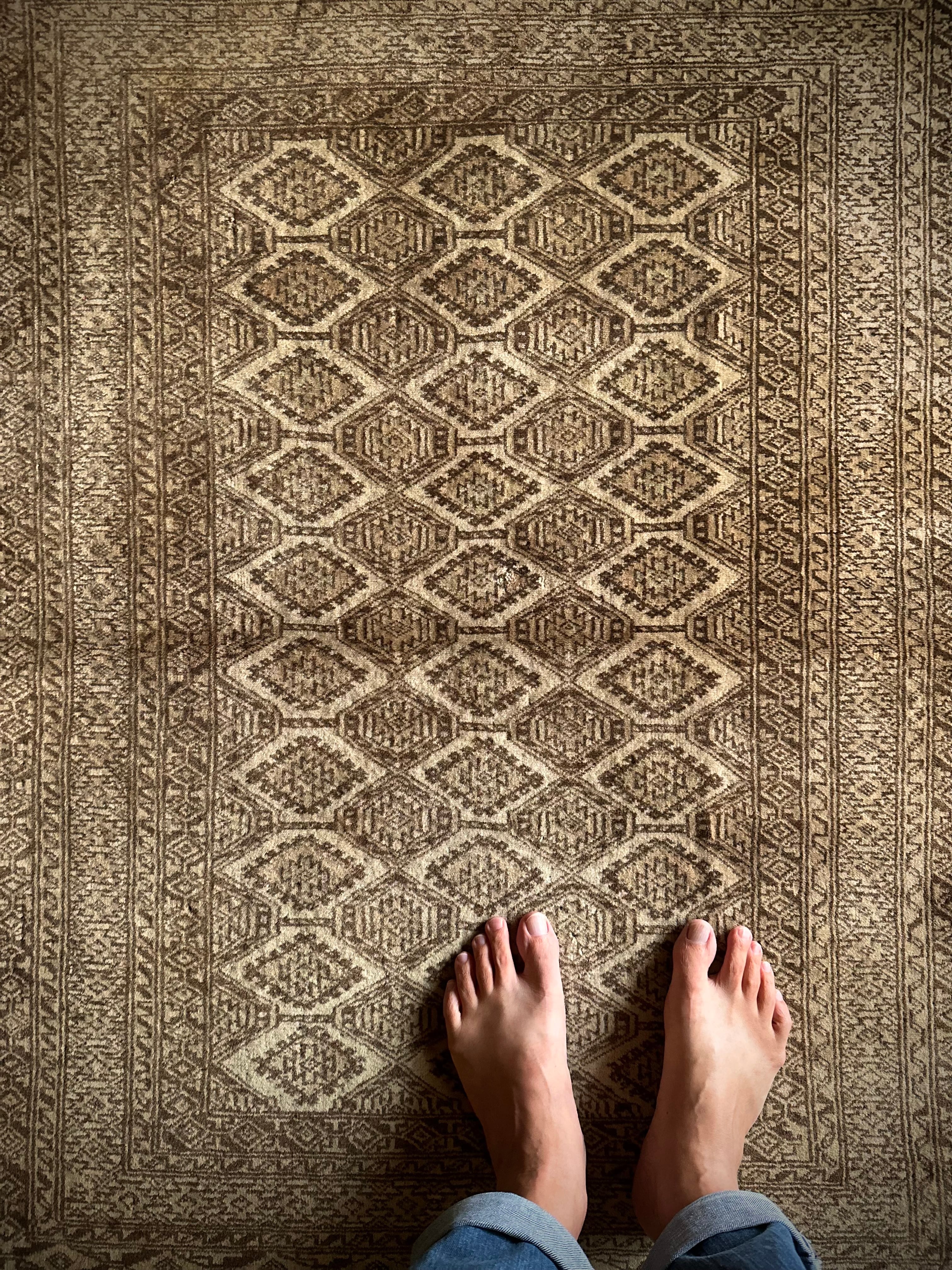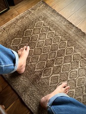 最後にラグそのものに関しては羊毛特有の匂いがあり、採寸は中央付近で計測していますが、手織りならではの歪みによる誤差や水洗いクリーニングによる縮み、また草木染めによる経年劣化の色ムラなどがありますが、それもまたヴィンテージラグの魅力かとご理解ください。