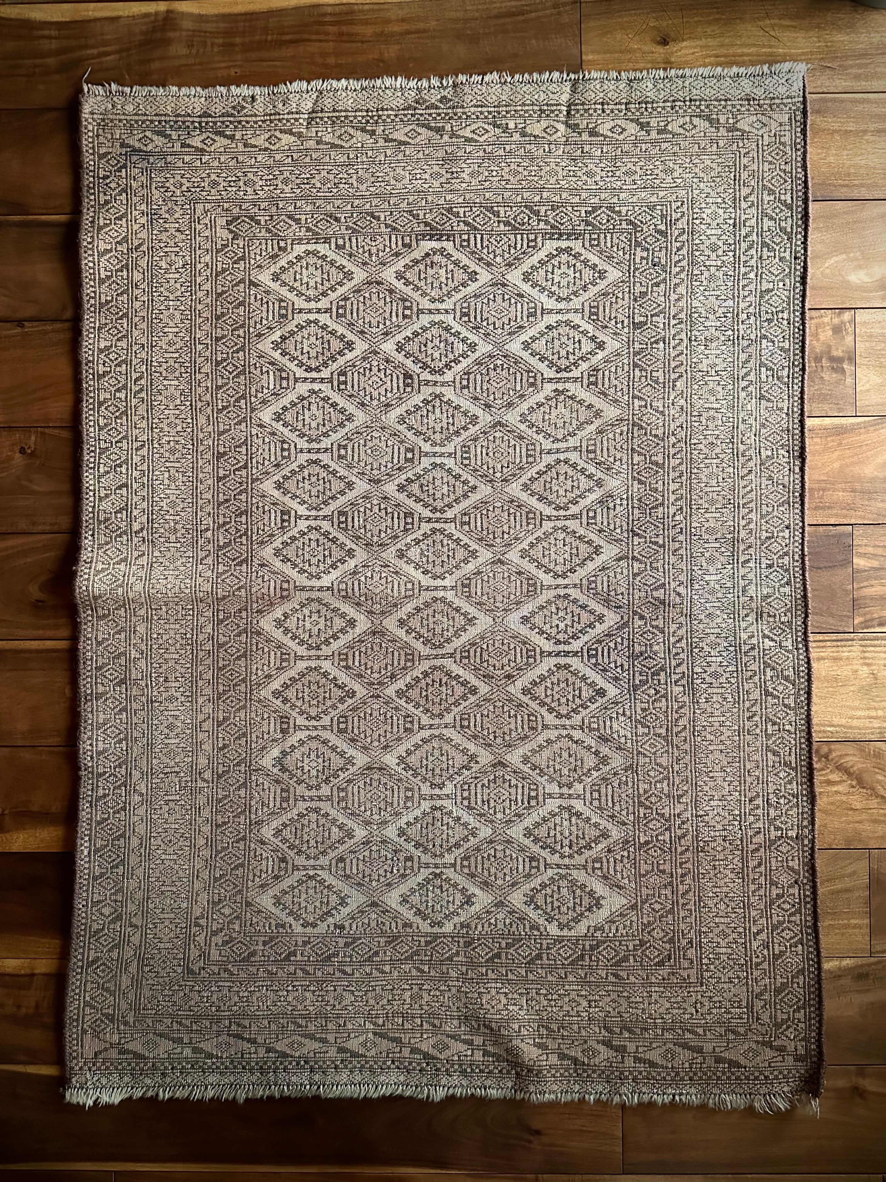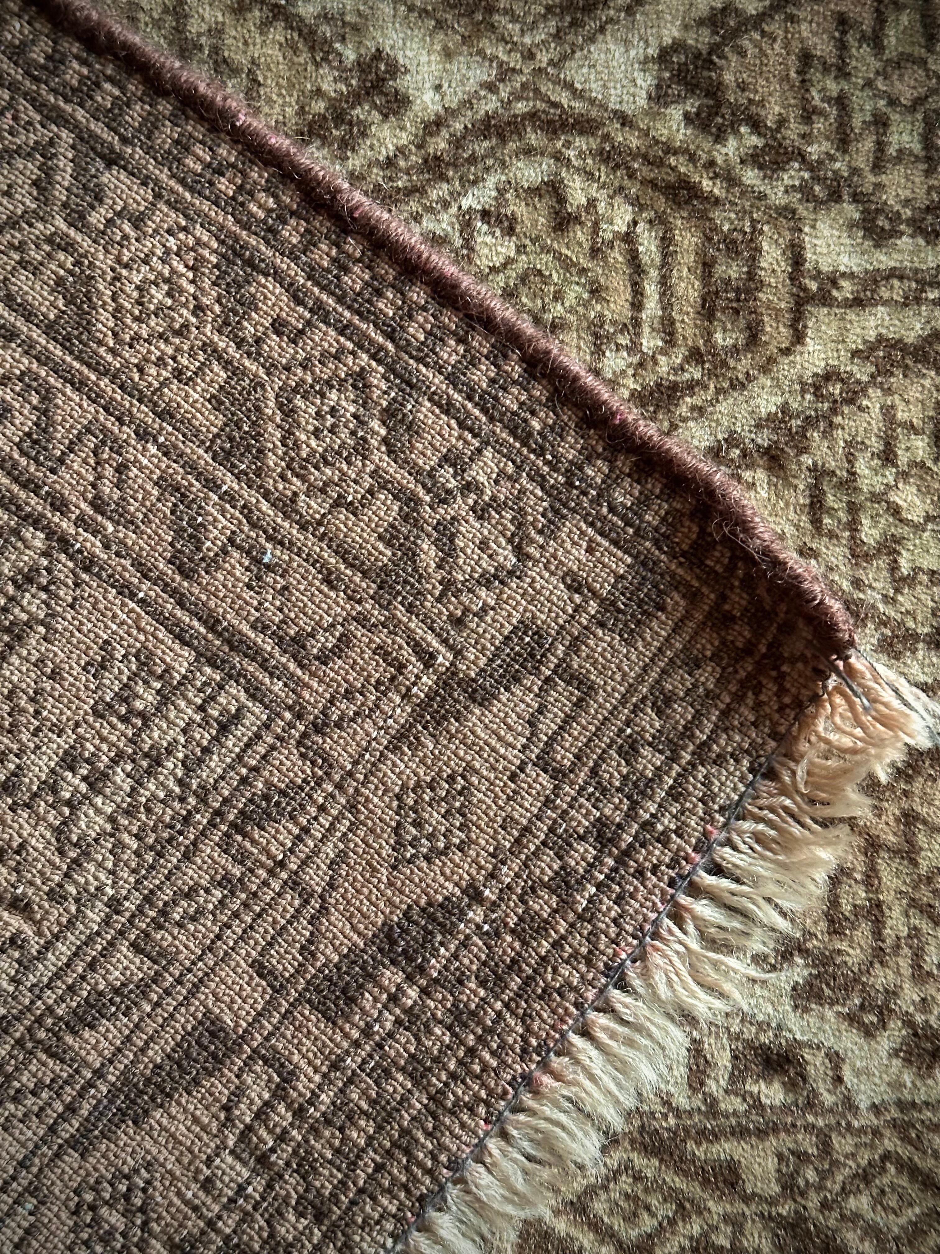 経年としてはかなり古い50年のヴィンテージラグとなり、全体的にはナイスなコンディションと言えますが、それなりの使用感に目立たないリペアが数ヶ所ありますので写真にてご確認ください。