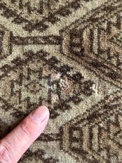 初めは現地のセラーからバルーチと指摘されていましたが、織りの細かさや特徴的なパイルの仕上げ、また紋様の柄などから独自にトルクメンと判断しましたが、この辺りは異部族間交流が盛んな地域としてどちらとも判断し難いのが事実です。