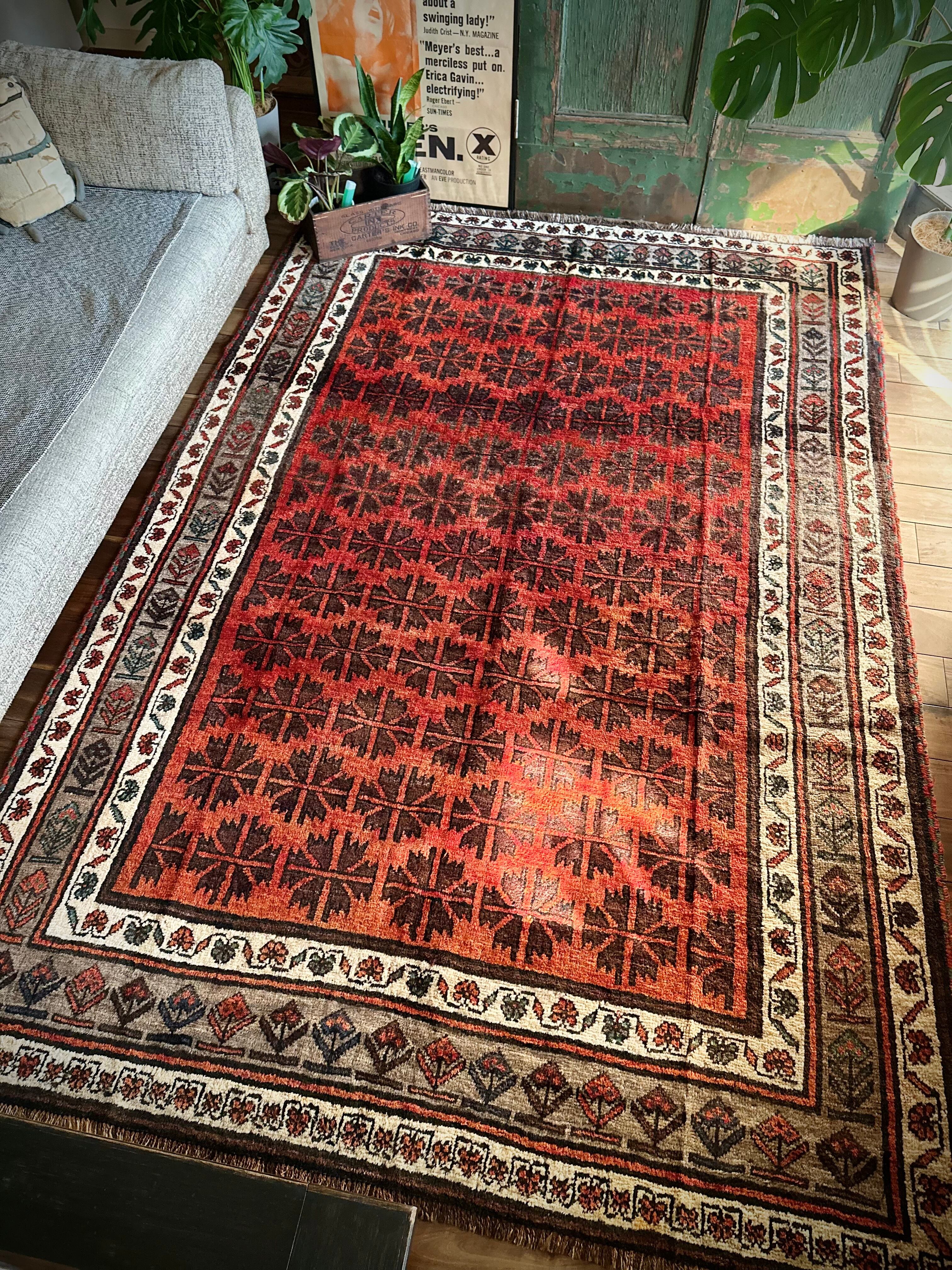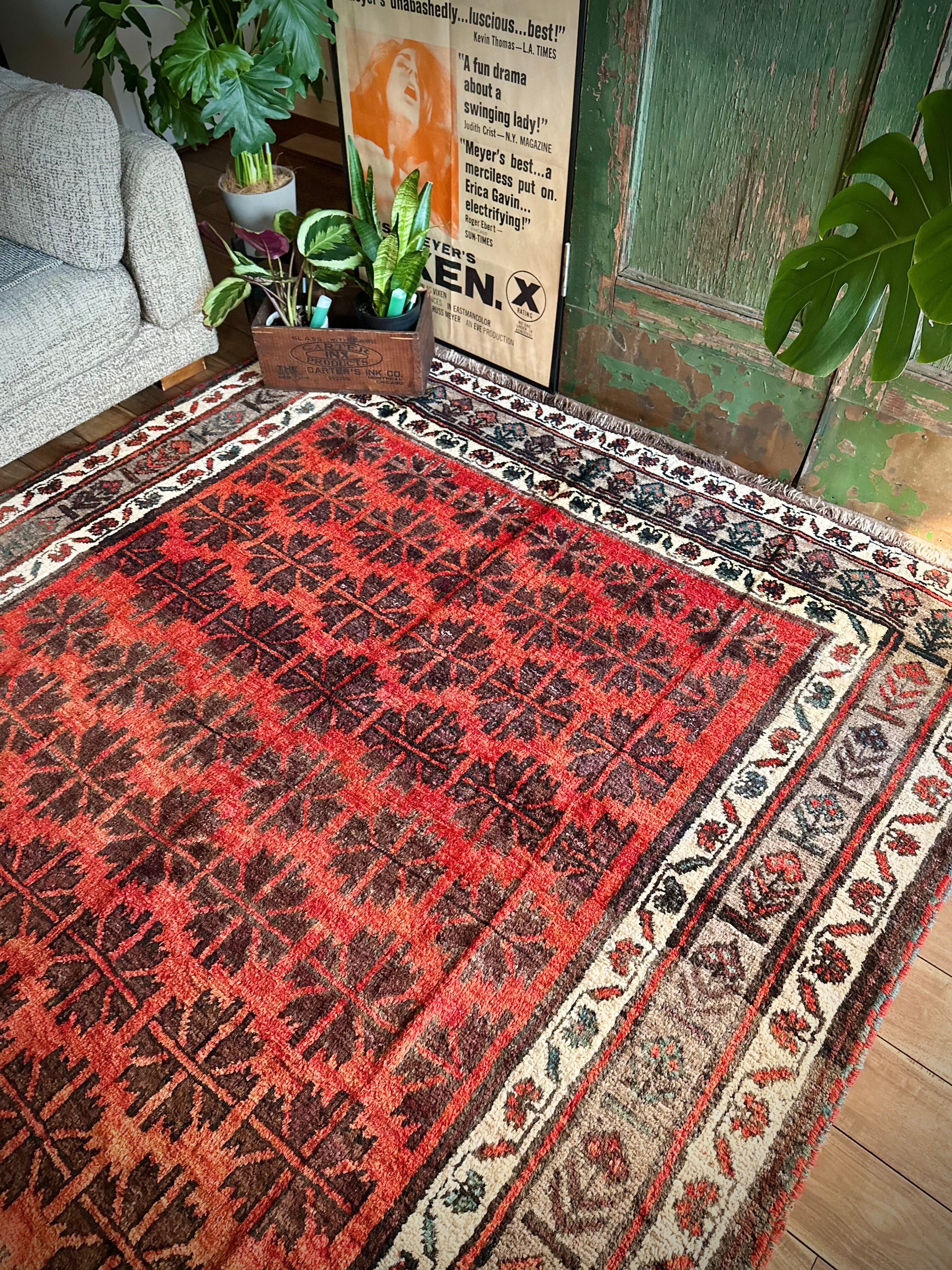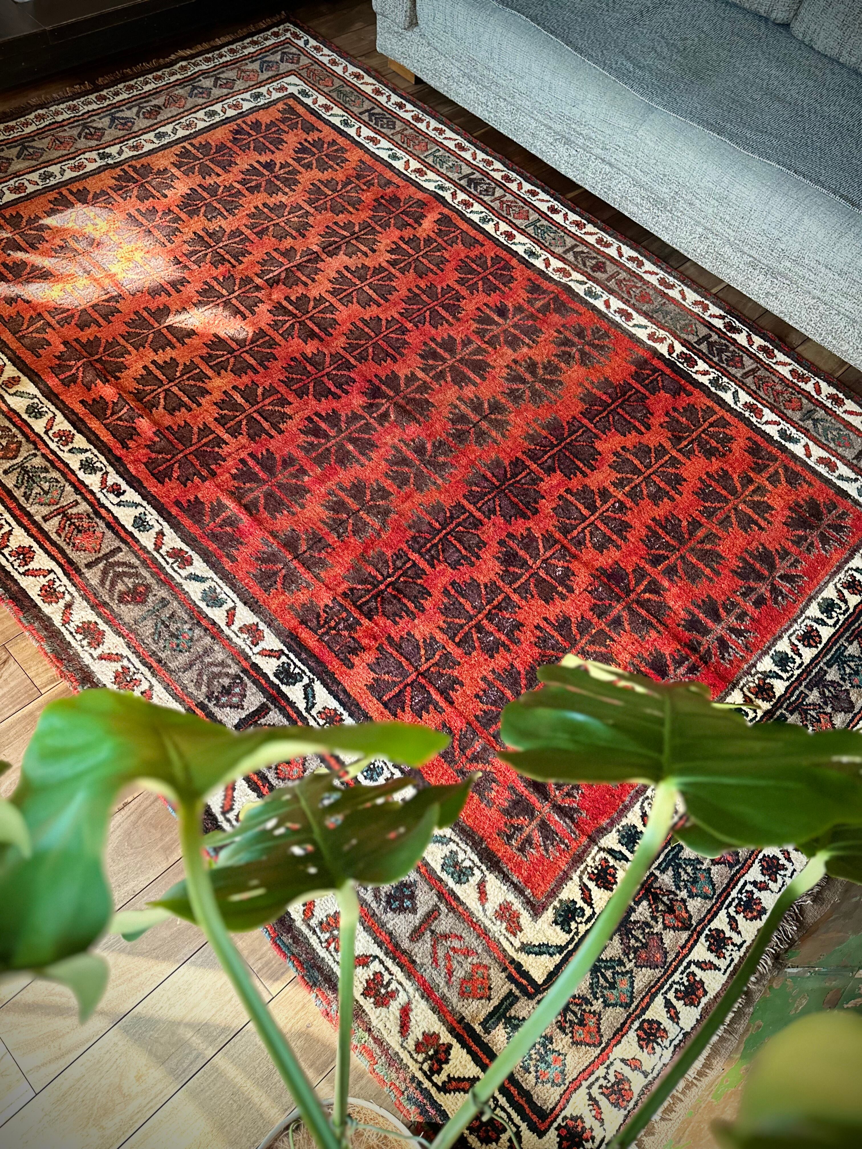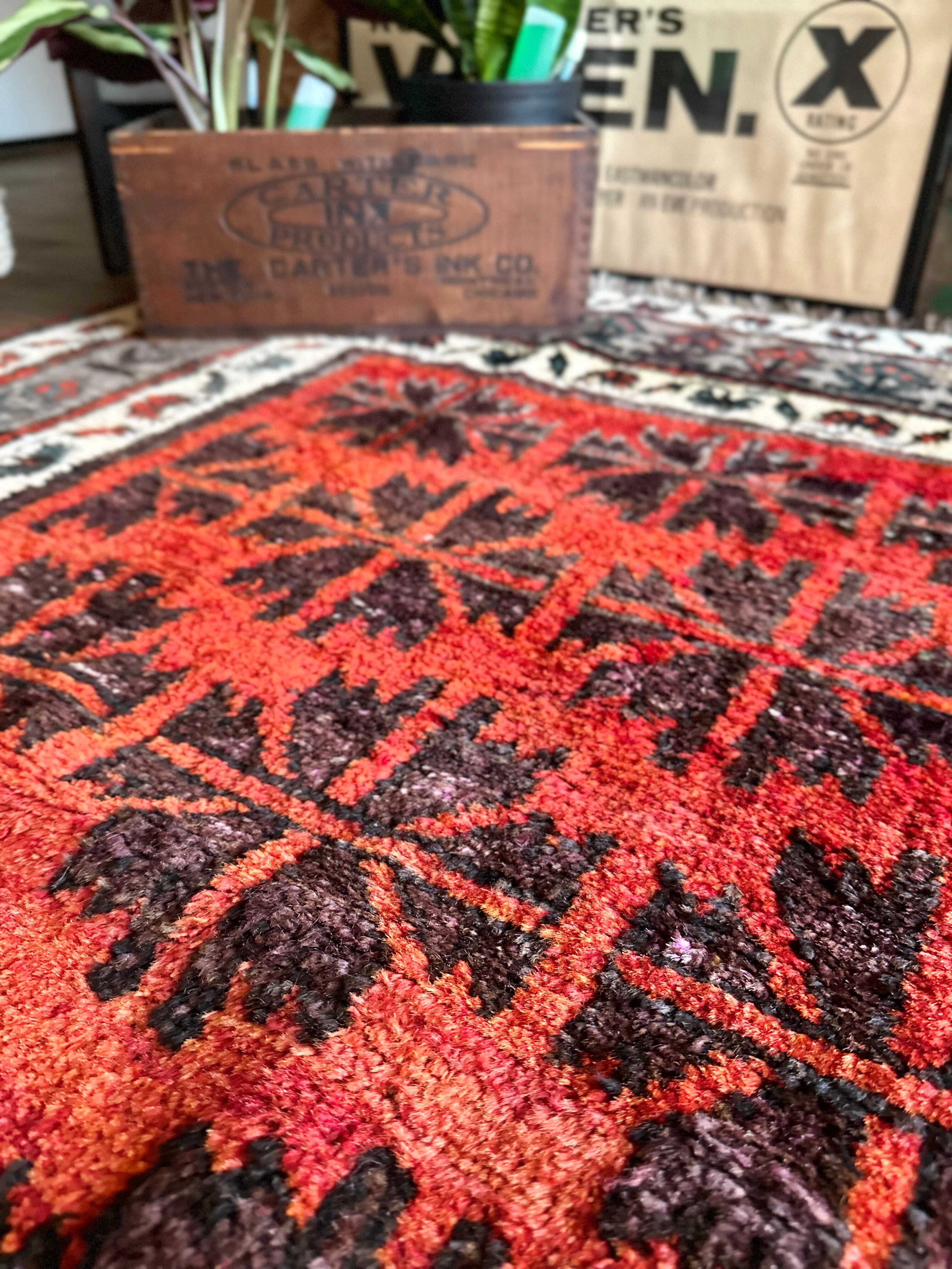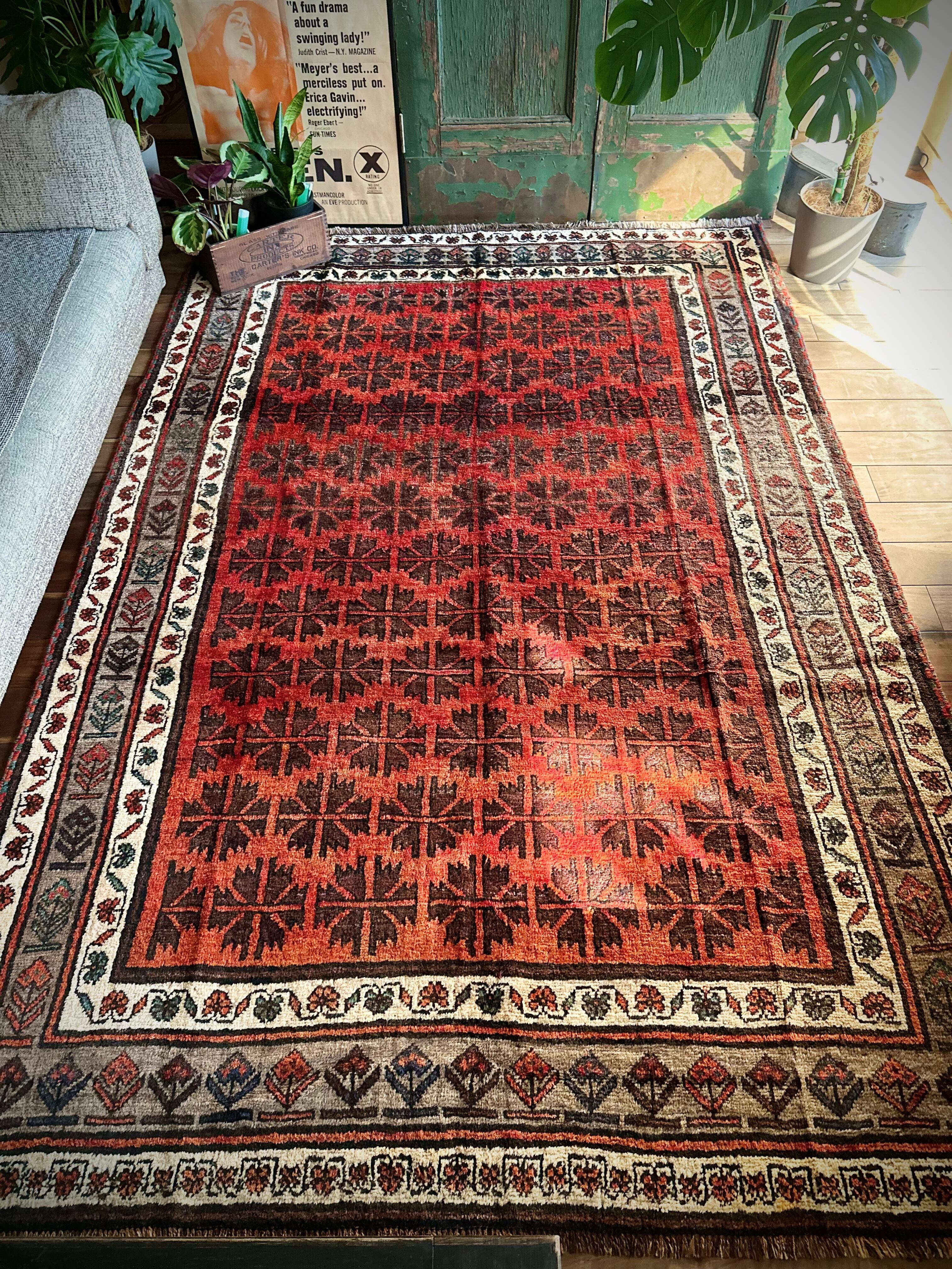 最後にラグそのものに関しては羊毛特有の匂いがあり、採寸は中央付近で計測していますが、手織りならではの歪みによる誤差や水洗いクリーニングによる縮み、また草木染めによる経年劣化の色ムラなどがありますが、それもまたヴィンテージラグの魅力かとご理解ください。