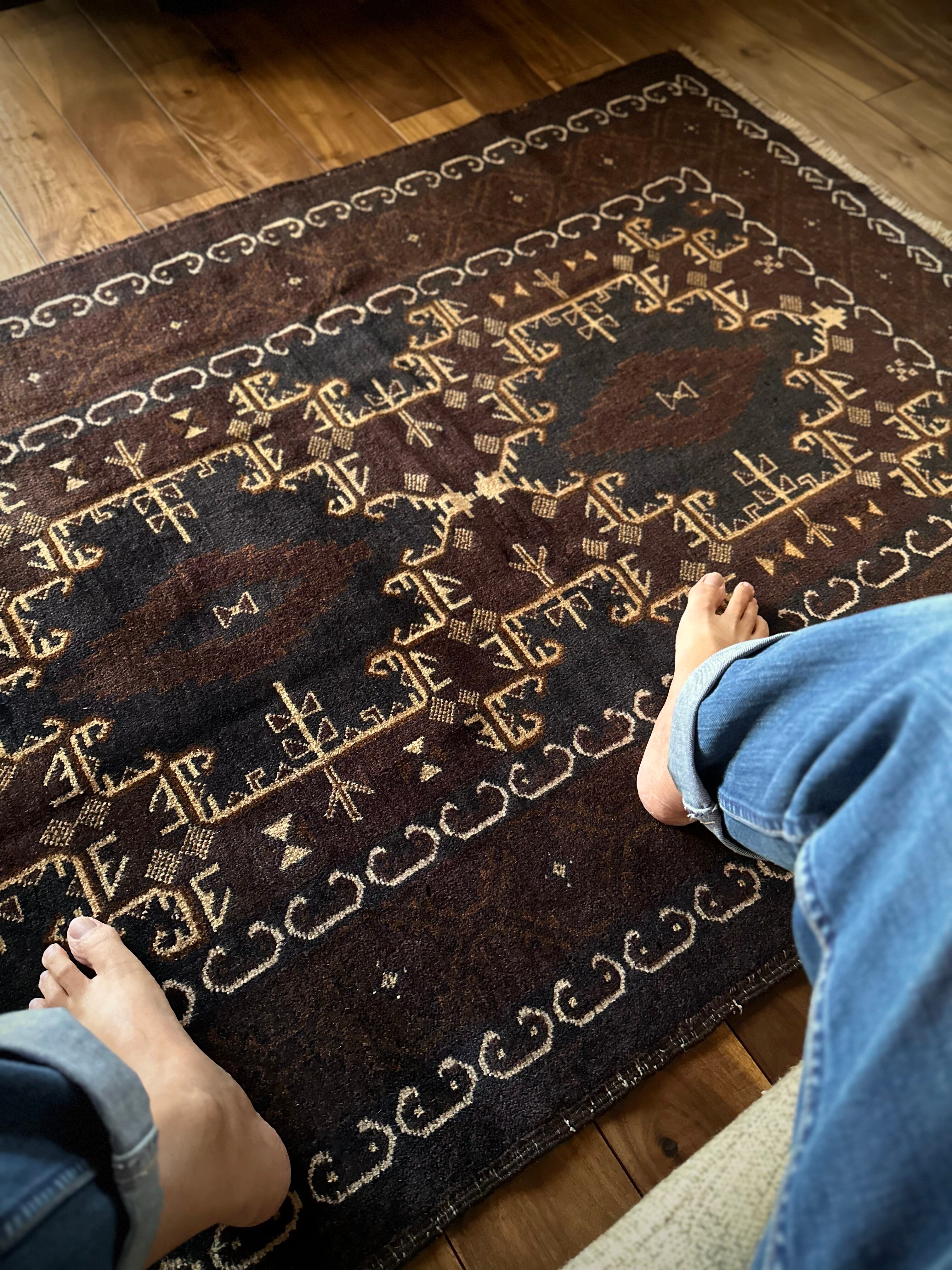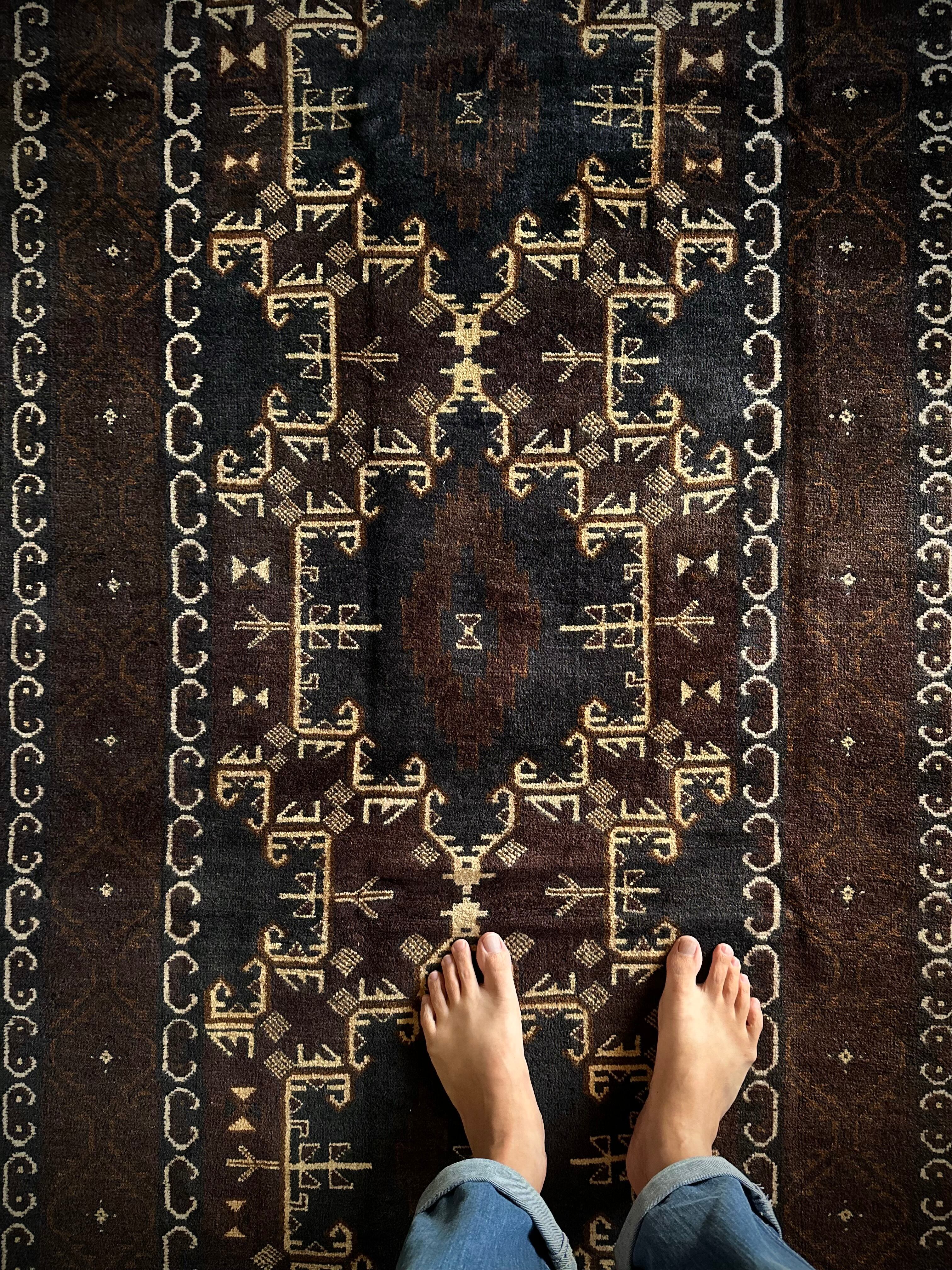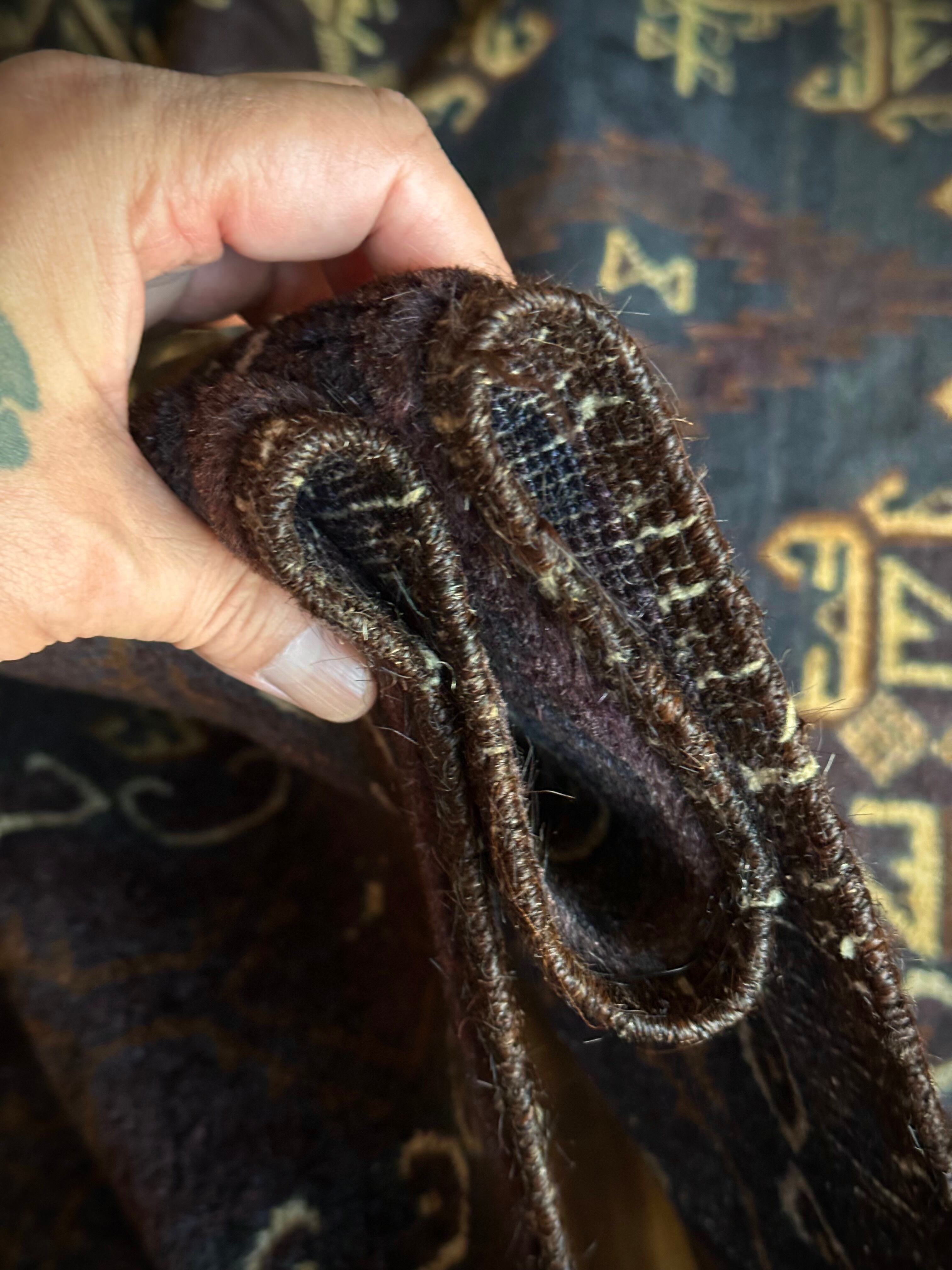 最後にラグそのものに関しては羊毛特有の匂いがあり、採寸は中央付近で計測していますが、手織りならではの歪みによる誤差や水洗いクリーニングによる縮み、また草木染めによる経年劣化の色ムラなどがありますが、それもまたヴィンテージラグの魅力かとご理解ください。