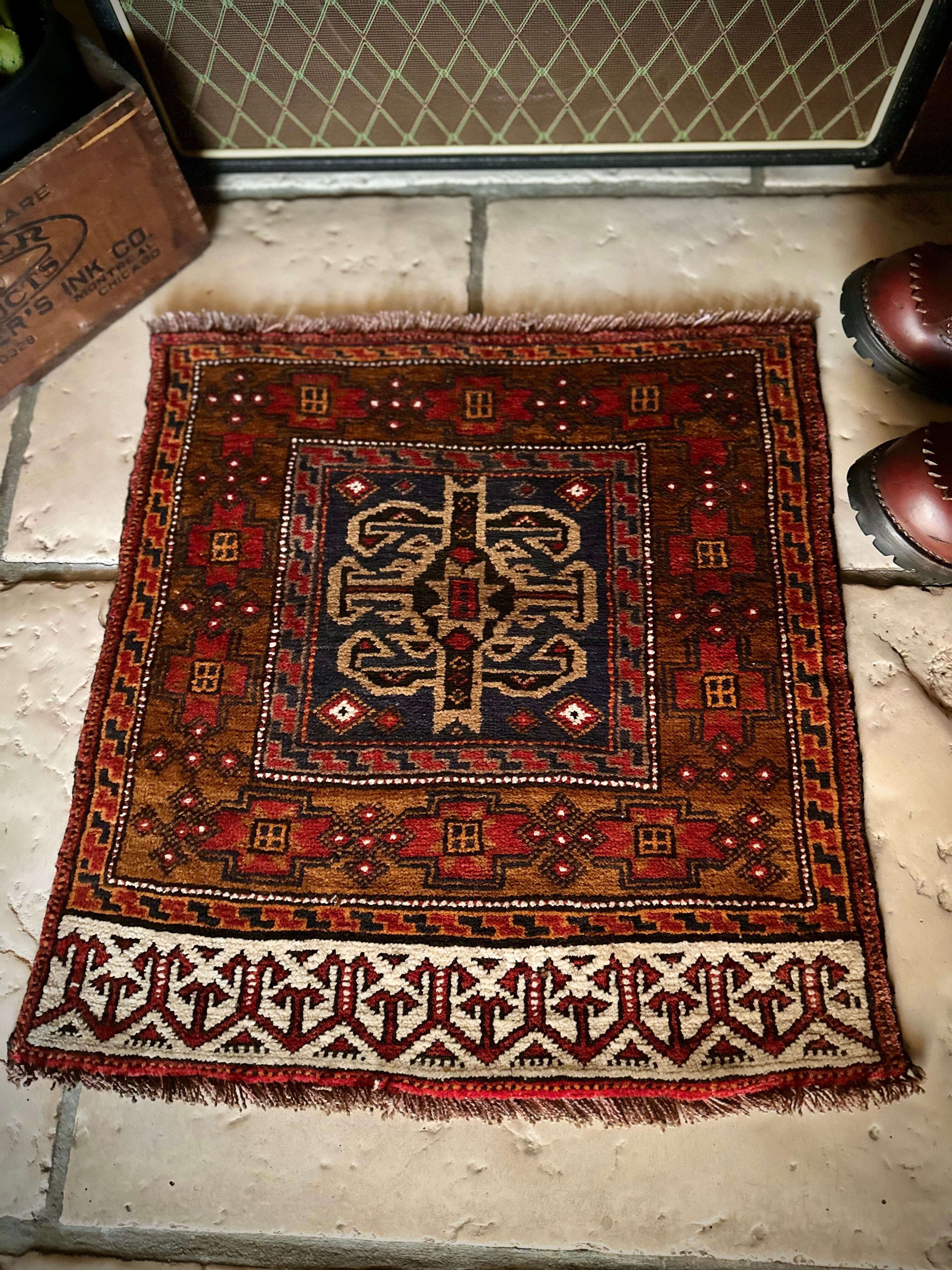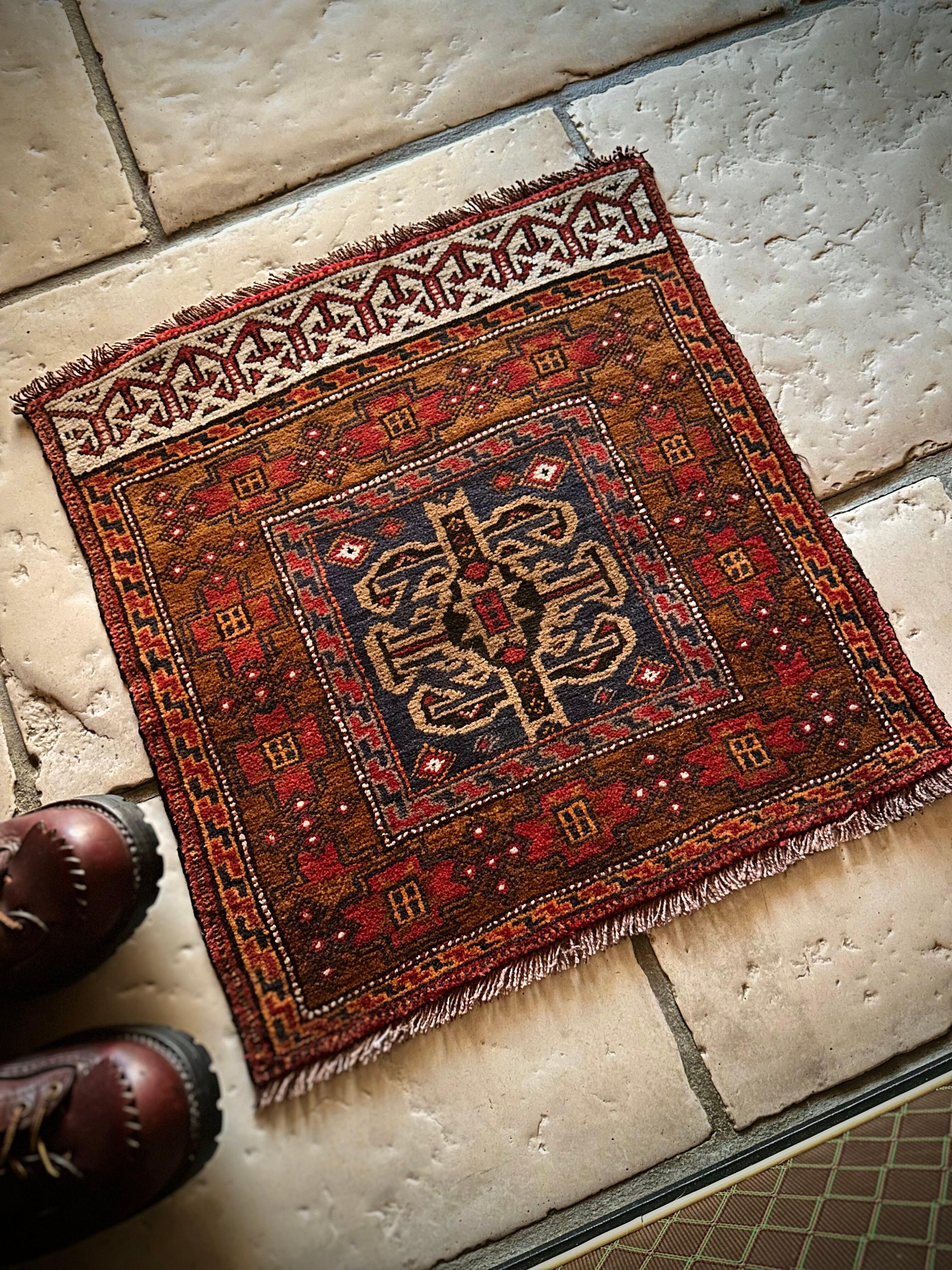 見た目にも使い勝手の良さそうなミニラグ仕立てで、ちょっとした足下はもちろんソファの座面やテーブルなんかにも多用出来るテキスタイルでしょうか。ここ最近では植物の鉢置き敷きとしてもより良い雰囲気が楽しめる1枚になります。